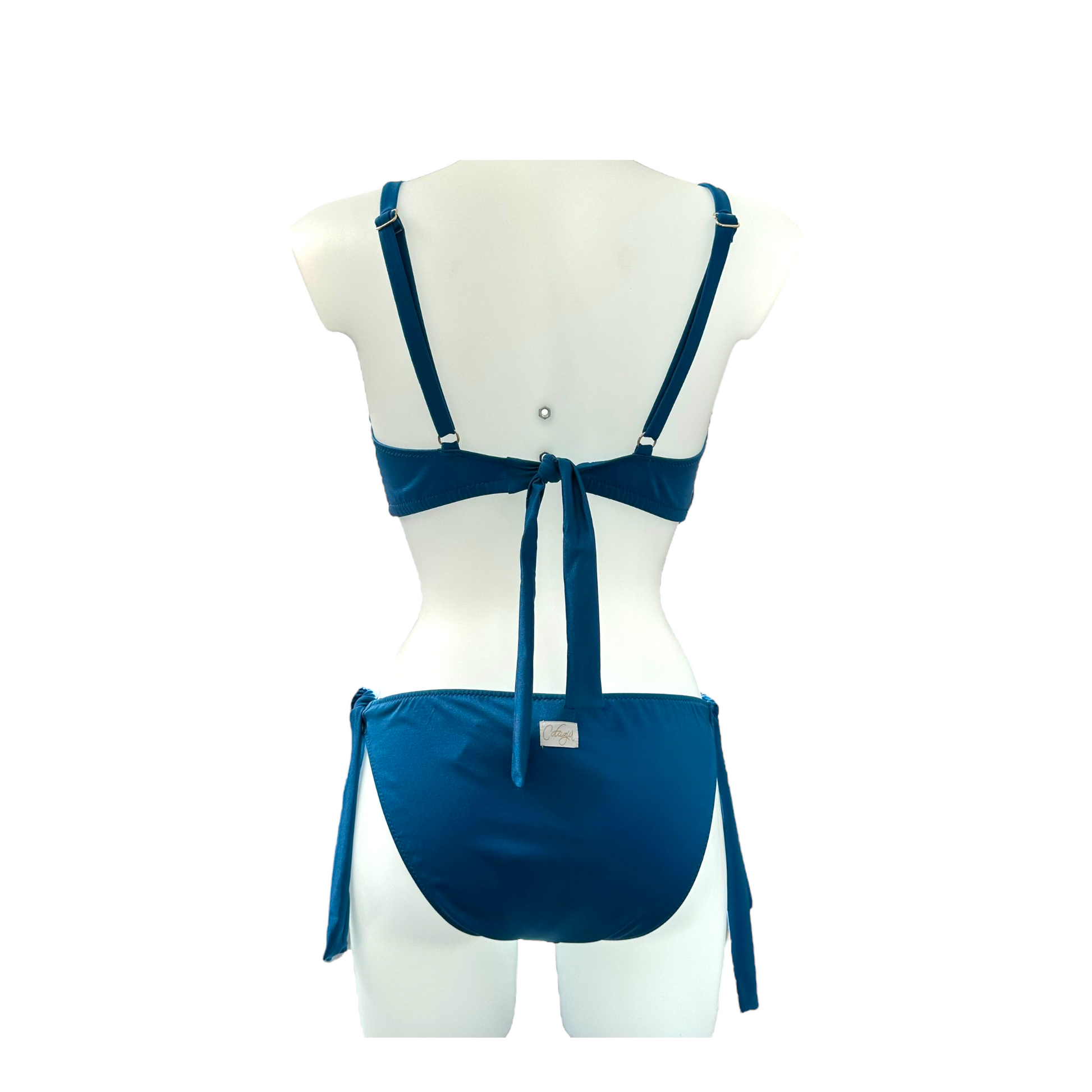 Bikini corpetto con coppe rimovibili. Bretelle regolabili. Slip regolabile con laccetti. Ideale per donne con forme generose.