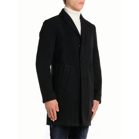 Cappotto monopetto con chiusura a 3 bottoni. Tasche frontali a filo e taschino interno.