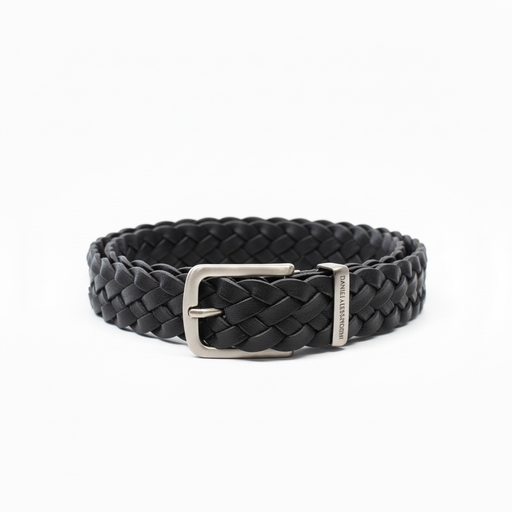Cintura da uomo in colore nero caratterizzata da un elegante design intrecciato, che unisce raffinatezza e funzionalità. La lavorazione intrecciata dona al capo un aspetto ricercato e una maggiore flessibilità nella regolazione della vestibilità.