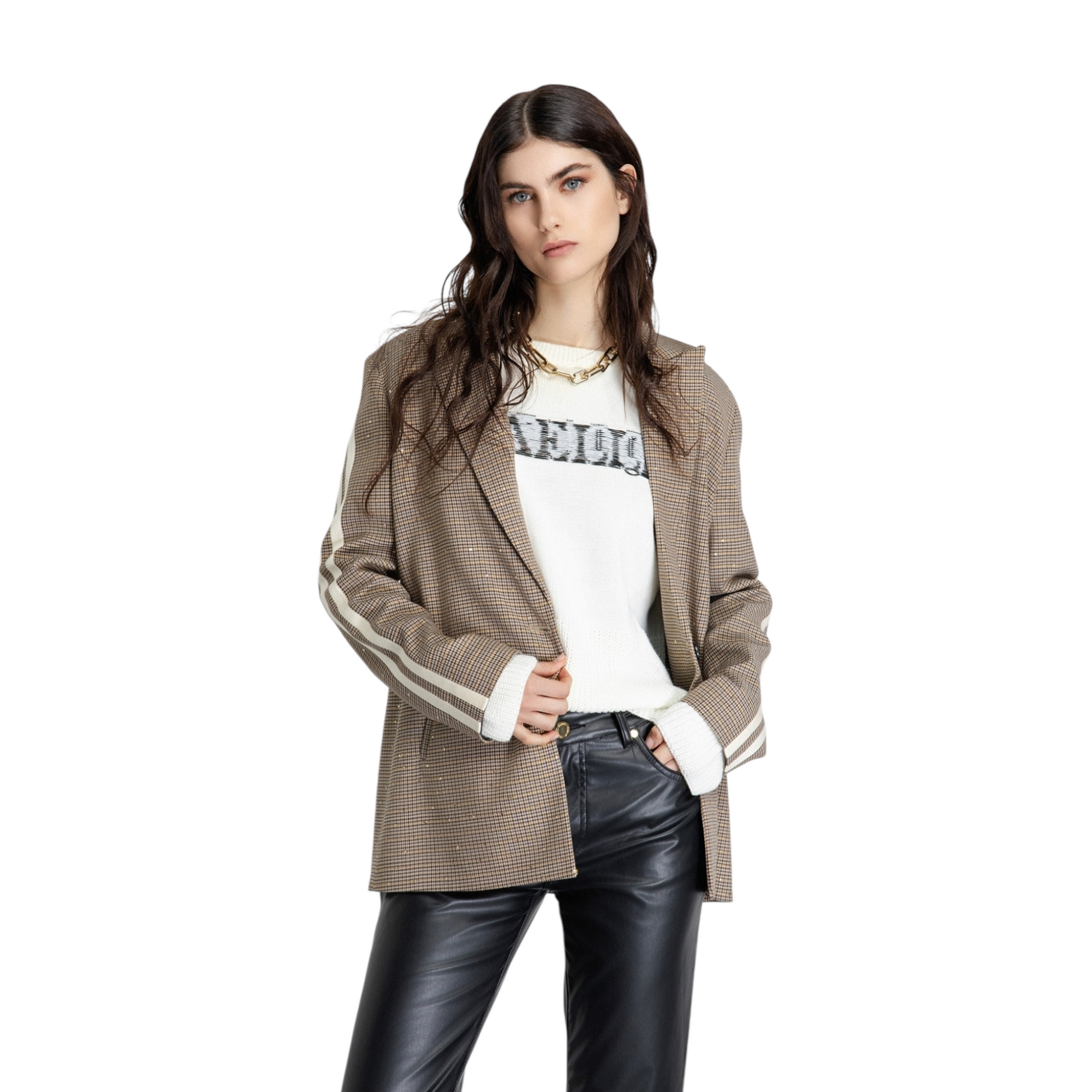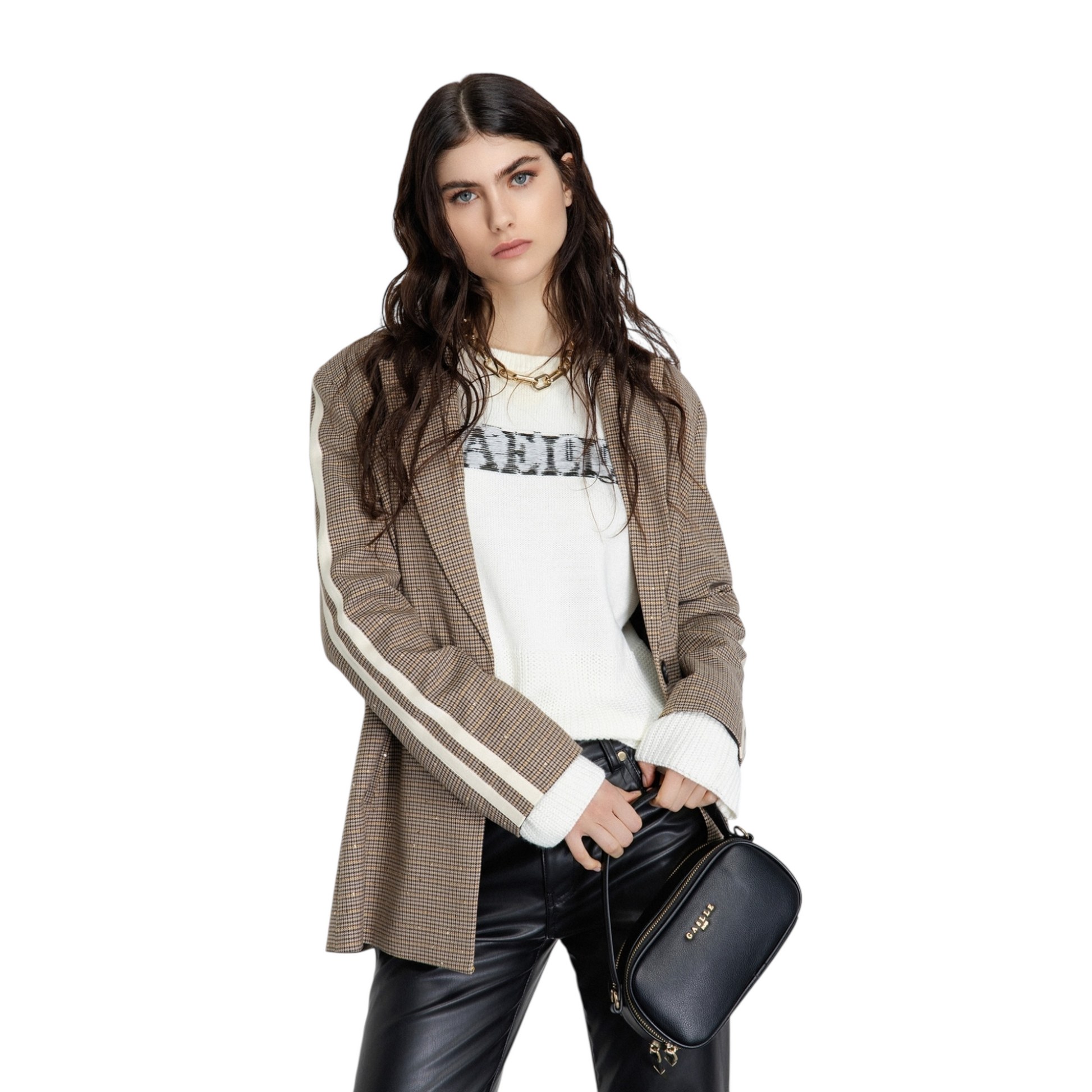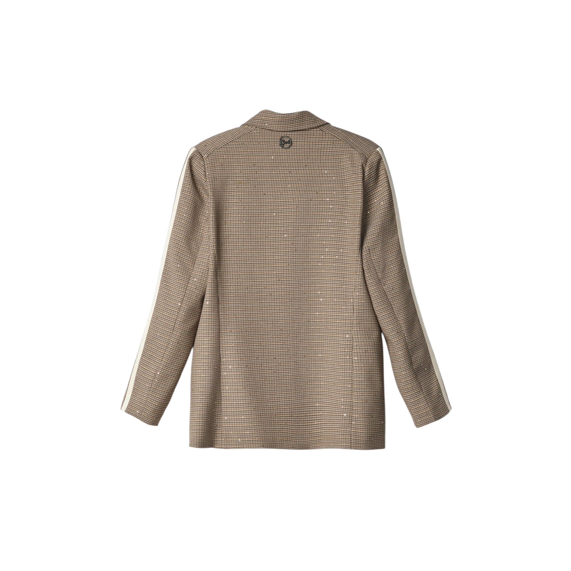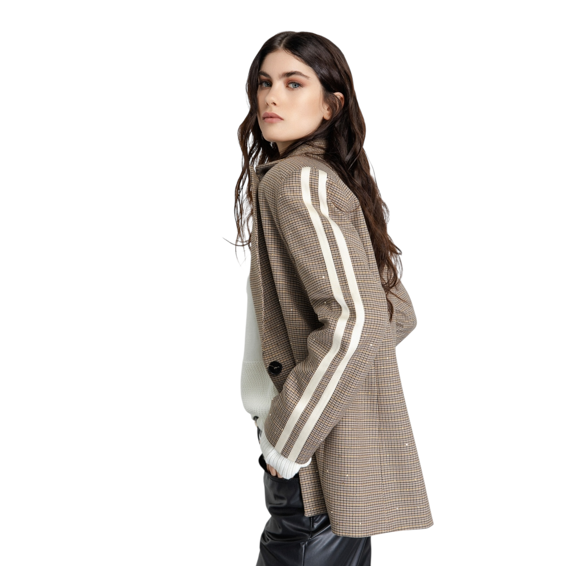 Giacca monopetto dalla silhouette moderna e raffinata, caratterizzata da tasche a filetto che garantiscono pulizia estetica e praticità. Le bande laterali contrastanti definiscono la figura, creando un effetto snellente e contemporaneo. Realizzata con attenzione ai dettagli costruttivi, questa giacca si distingue per la qualità della confezione e la versatilità di abbinamento. Perfetta per chi ricerca un capo che unisca eleganza strutturata e comfort, adatto sia a contesti formali che a look più casual ricercati. Perfetta con il Pantalone Strass.