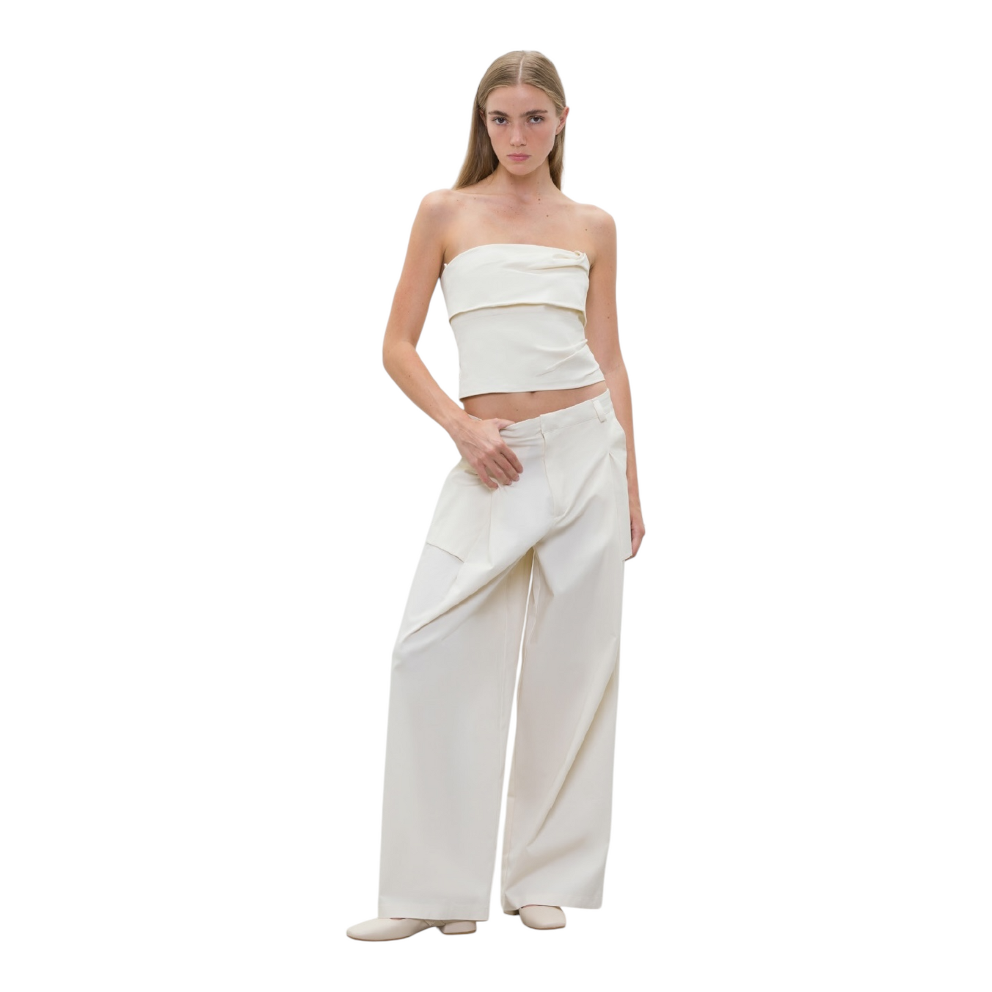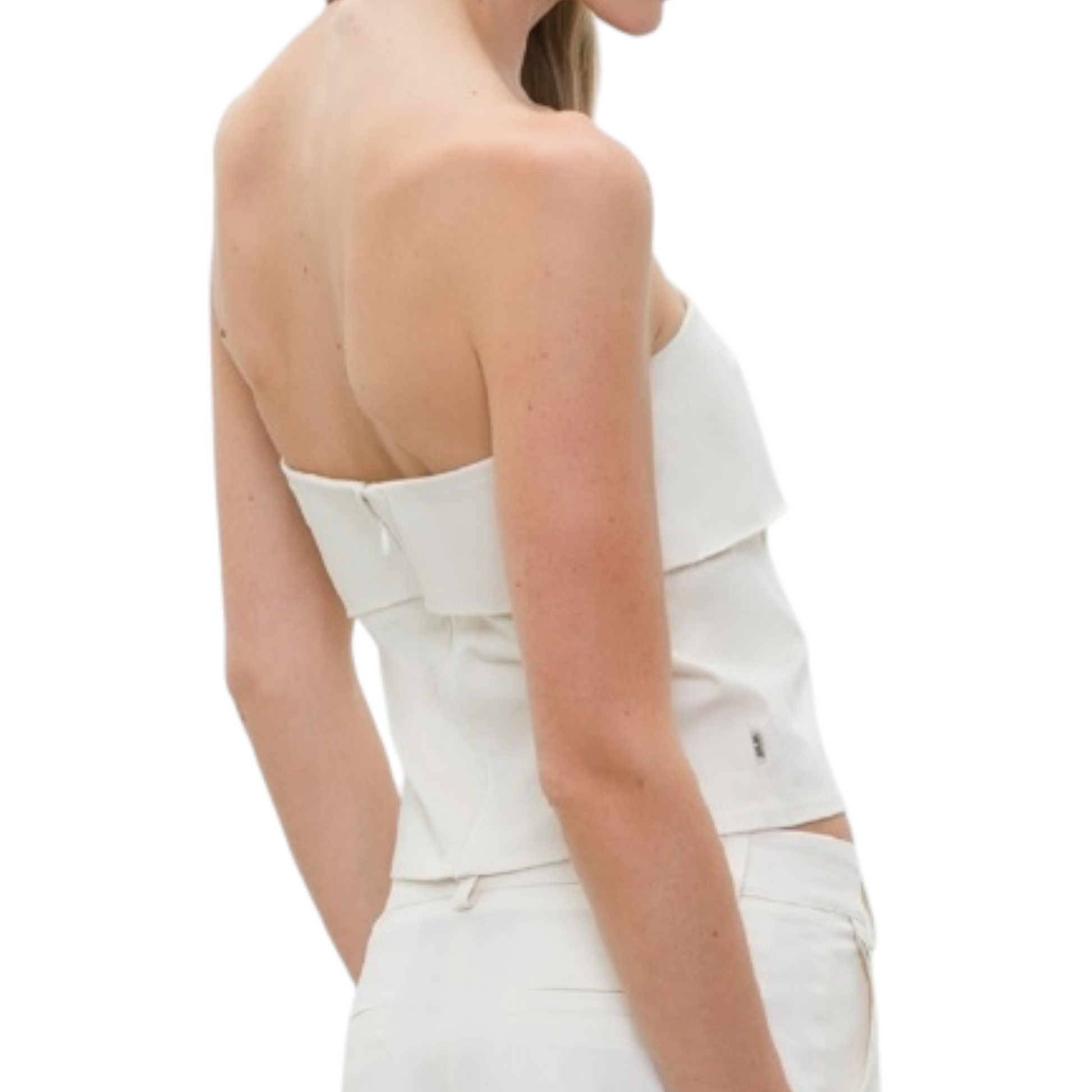 Scopri la versatilità e l'eleganza di Jijil - Top Risvolto. Realizzato con una fascia con risvolto nella parte alta, plissettato sul fianco sinistro e una chiusura con zip nascosta sul retro, questo top offre uno stile unico e moderno. Perfetto per un look sofisticato e impeccabile.