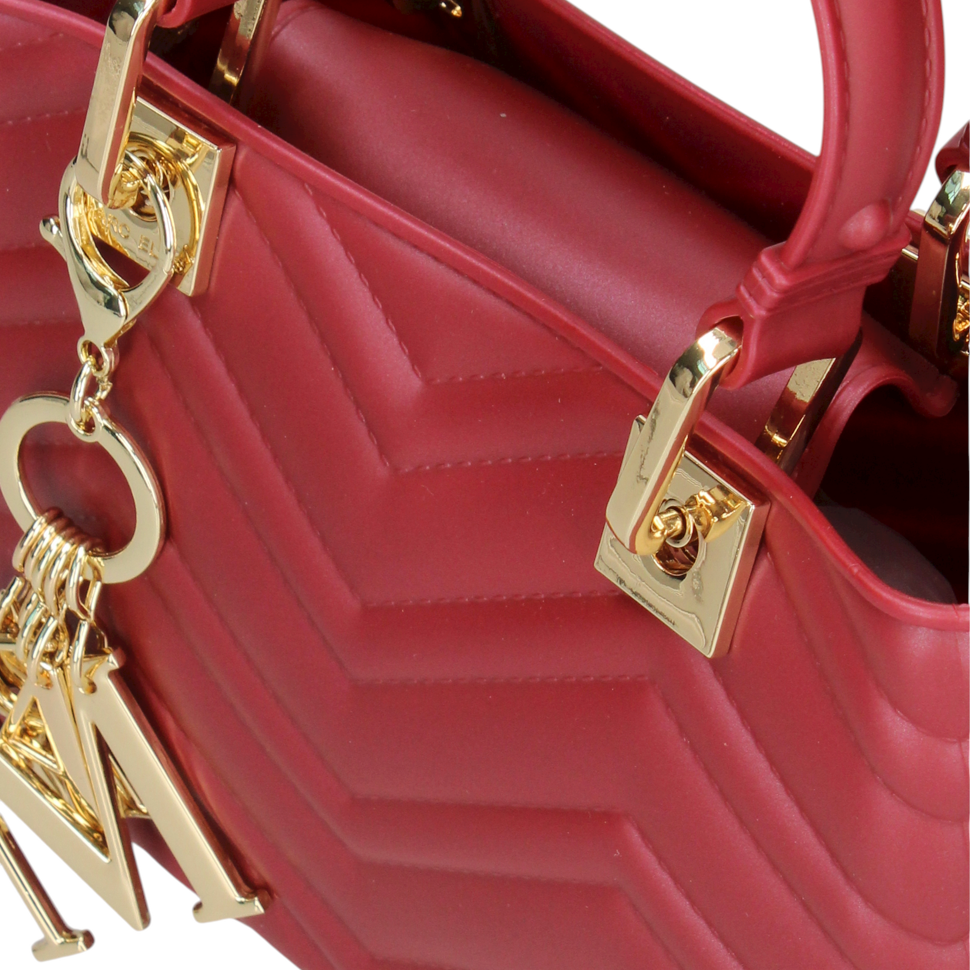 Questa borsa Marc Ellis è perfetta per il tuo stile elegante e moderno. Realizzata in gomma, la borsa con manici corti e dettagli in oro. Presenta una tracolla regolabile logata in nastro per un look più casual. La borsa si apre con pattina interna e bottone magnetico. La finitura trapuntata con un motivo a zig-zag rende questa borsa bella ed elegante. È caratterizzata da manici rigidi e da un dettaglio distintivo: il charm con le lettere del brand dorate. Aggiungi un tocco di classe al tuo outfit con la borsa Marc Ellis.