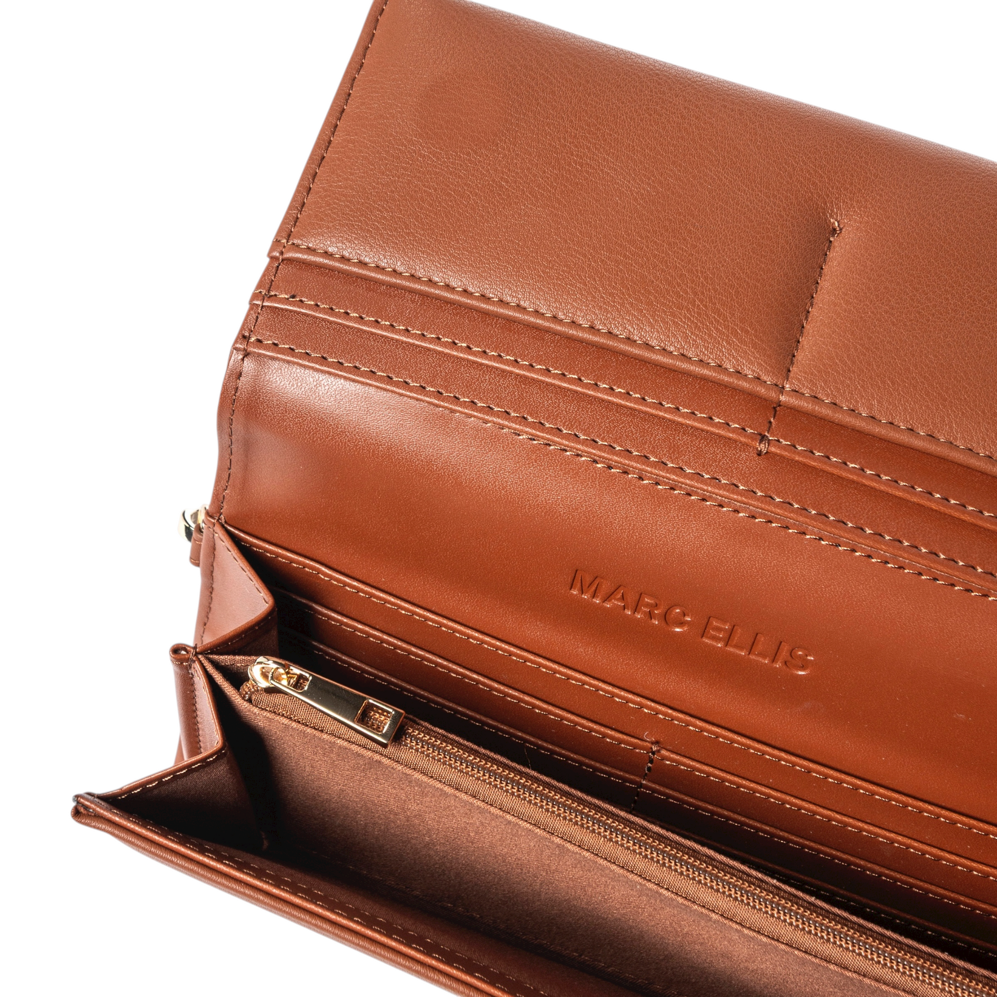 Portafoglio Marc Ellis progettato con attenzione ai dettagli e alla funzionalità. La chiusura magnetica assicura sicurezza e praticità d'uso quotidiano, mentre il logo in metallo frontale sottolinea l'identità del brand con eleganza. La manetta ne facilita l'utilizzo anche come pochette. L'interno è intelligentemente organizzato con ampi spazi dedicati a banconote, carte di credito e documenti, garantendo ordine e accessibilità. La tasca portamonete centrale consente di separare facilmente le monete dagli altri effetti personali. Un accessorio versatile e sofisticato, ideale per chi ricerca qualità costruttiva e design essenziale.