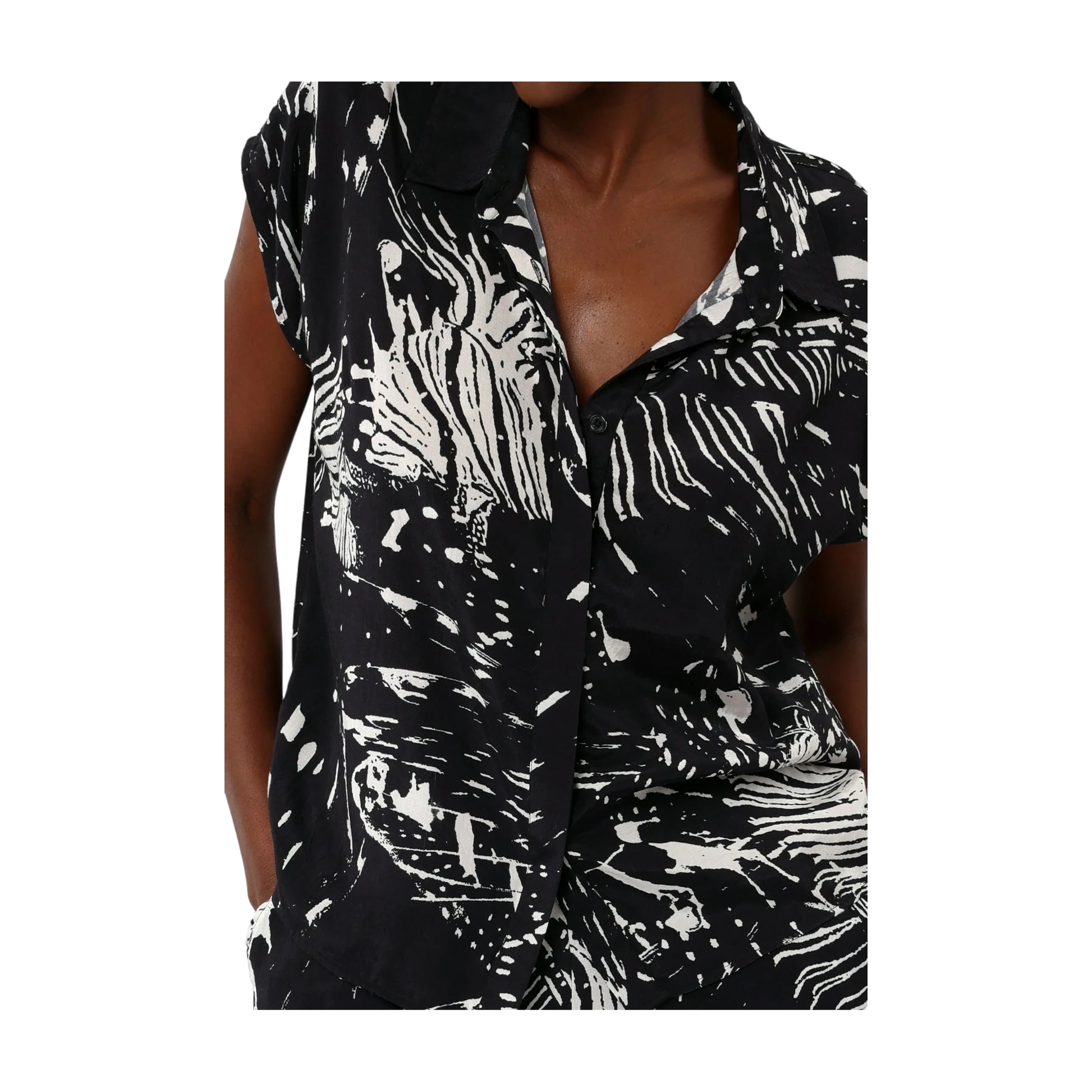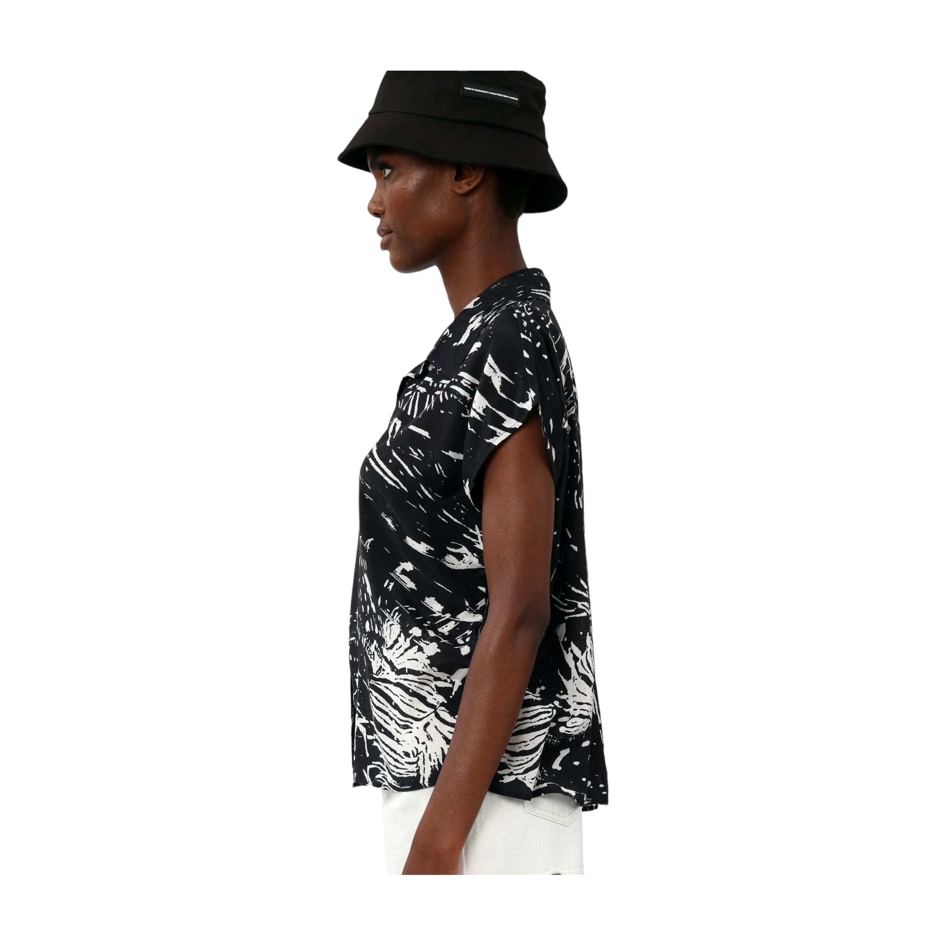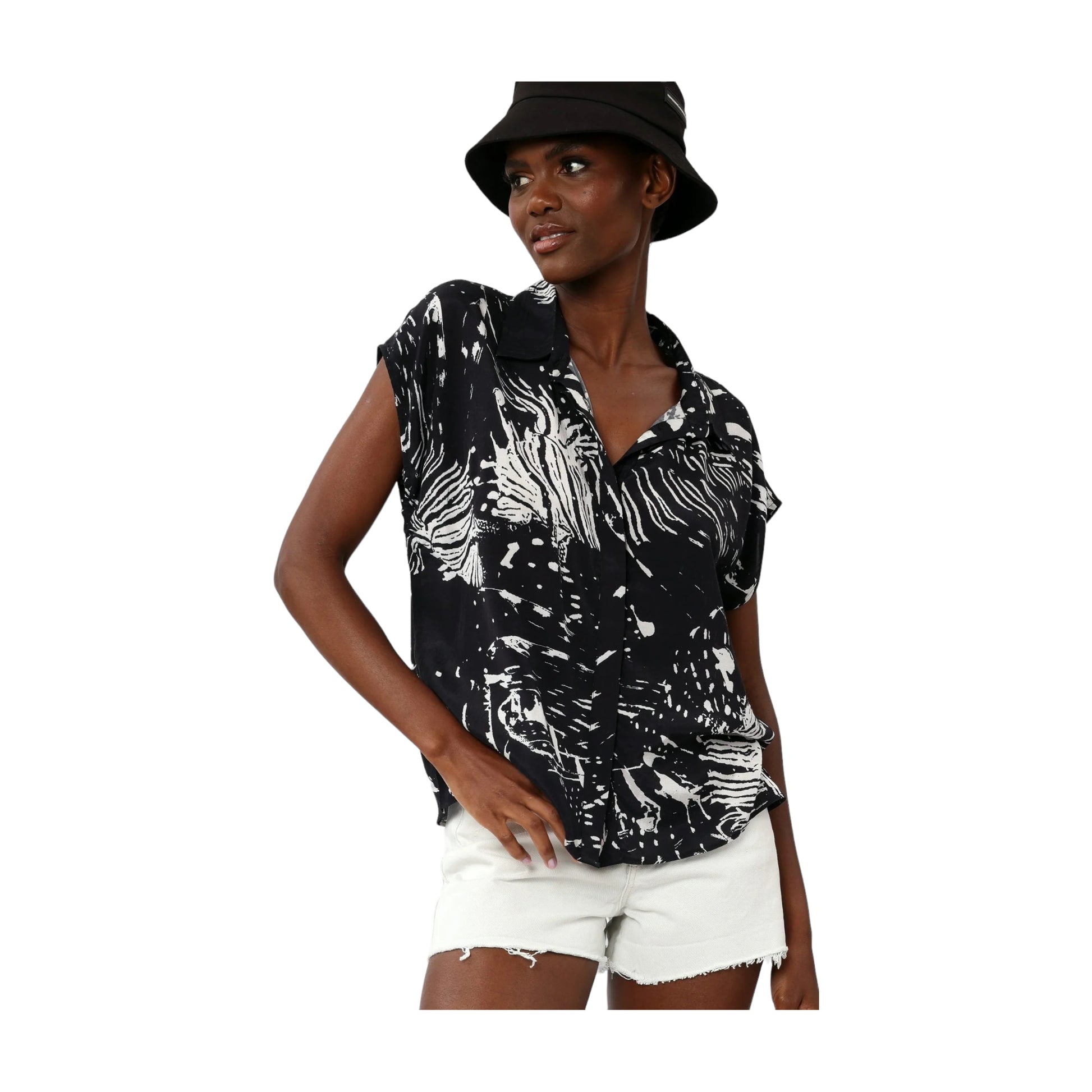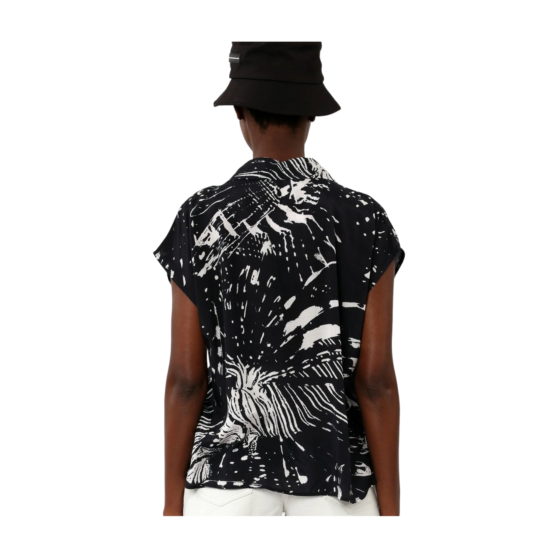 Camicia in viscosa con maniche a pipistrello, abbottonatura frontale nascosta e colletto.
