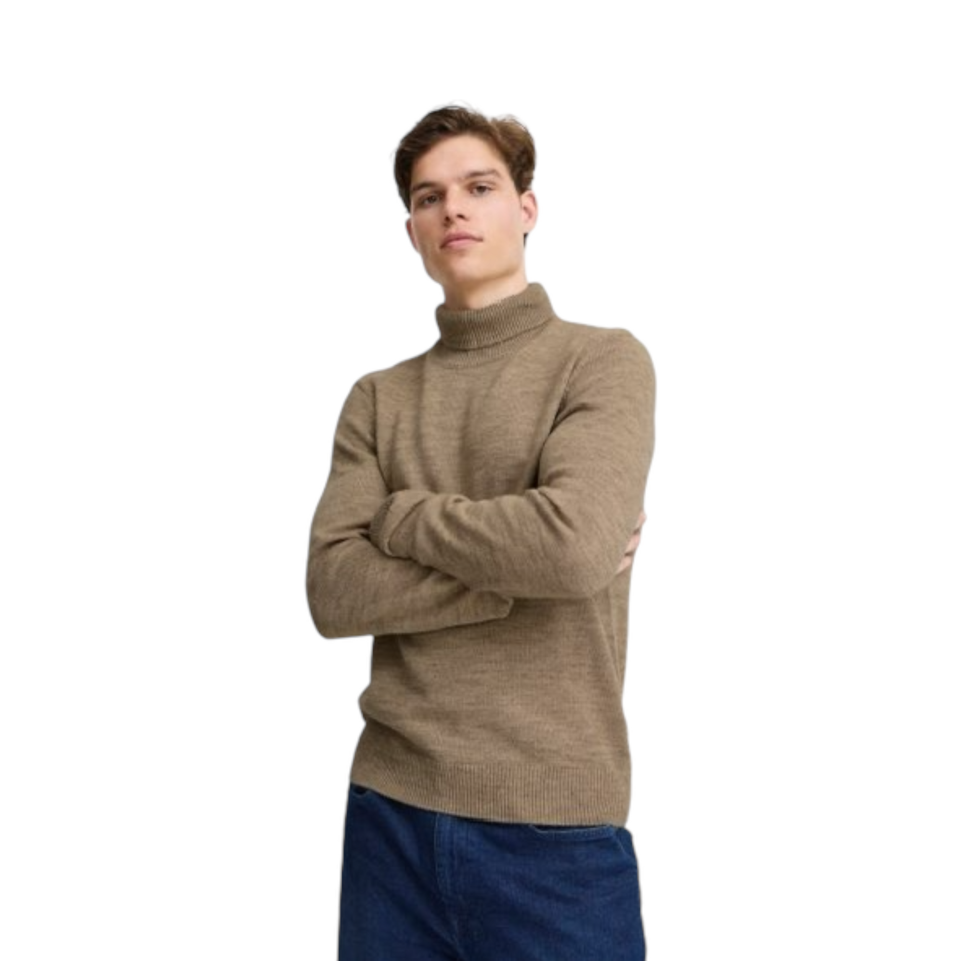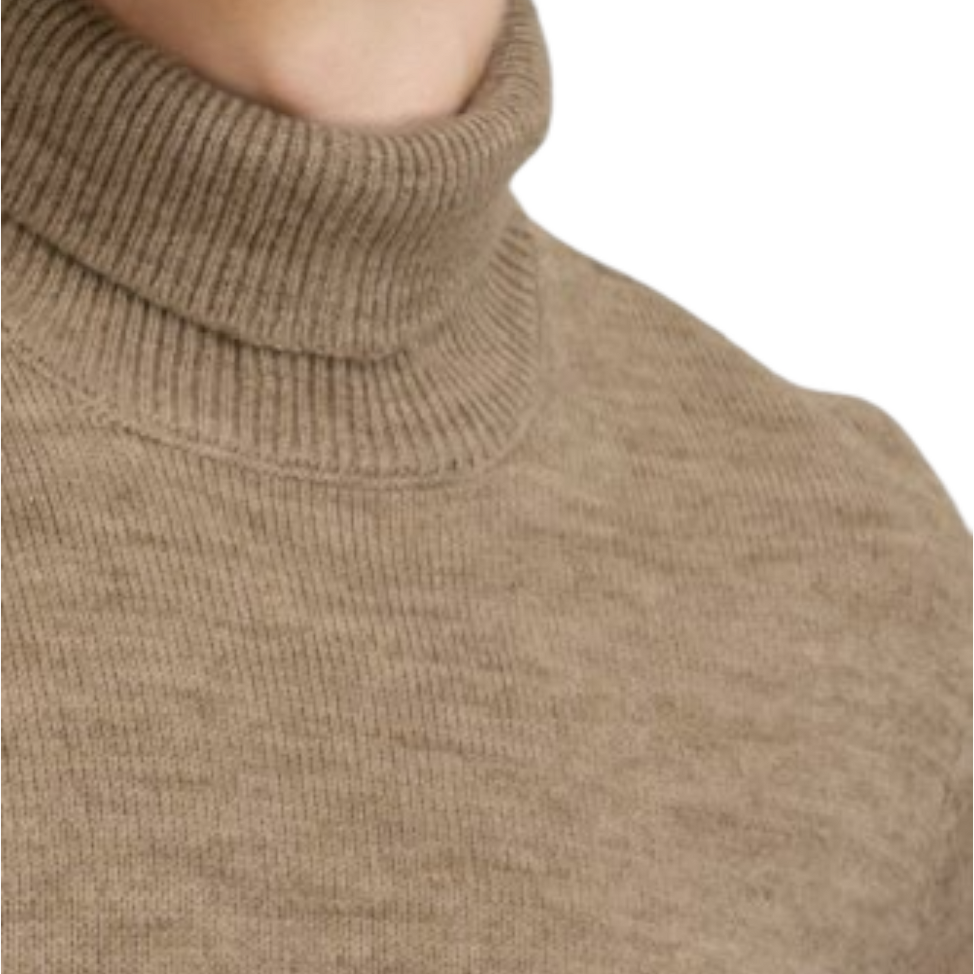 Maglia dolcevita, manica lunga. Fondo, collo e polsini a costine.