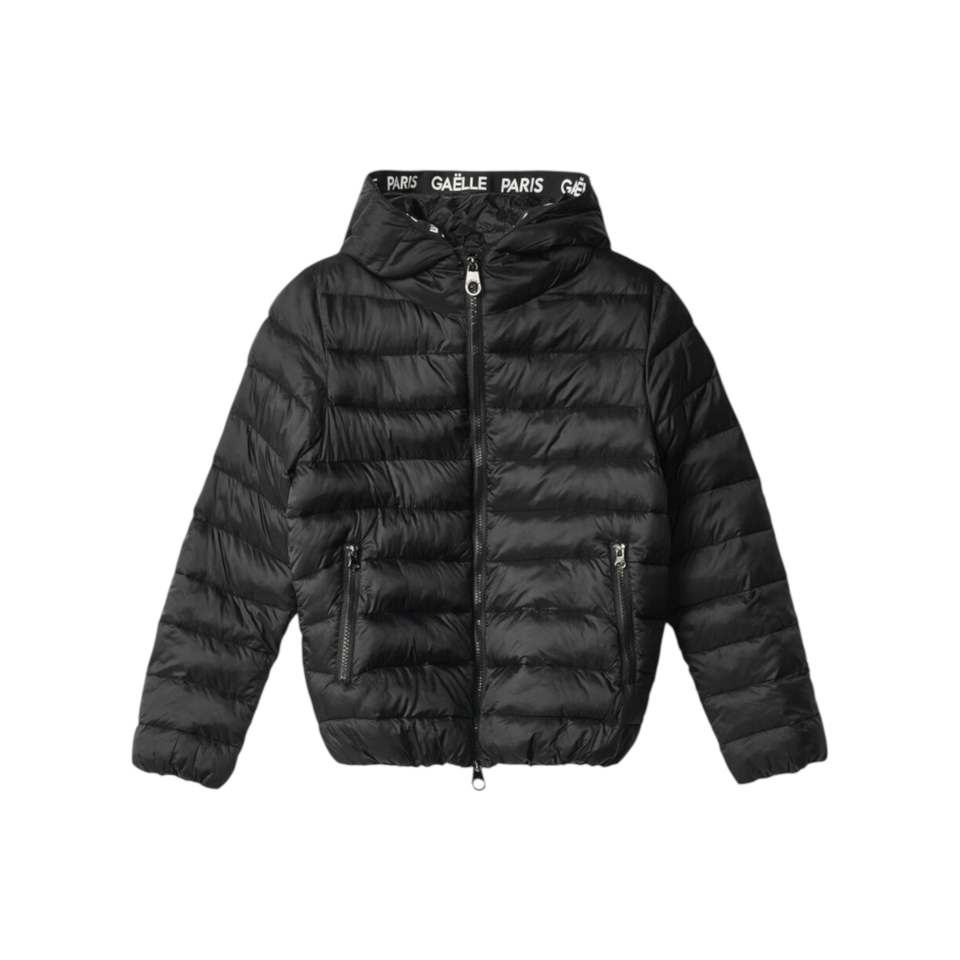 Il piumino Gaelle Paris a manica lunga è caratterizzato da un cappuccio con rifinitura logata interna, che aggiunge un tocco distintivo al design. La chiusura frontale con zip doppio cursore offre praticità e facilità d’uso, mentre le tasche a filo chiuse con zip garantiscono sicurezza e un’estetica pulita. Un capo funzionale e raffinato, ideale per affrontare le giornate più fredde con eleganza.