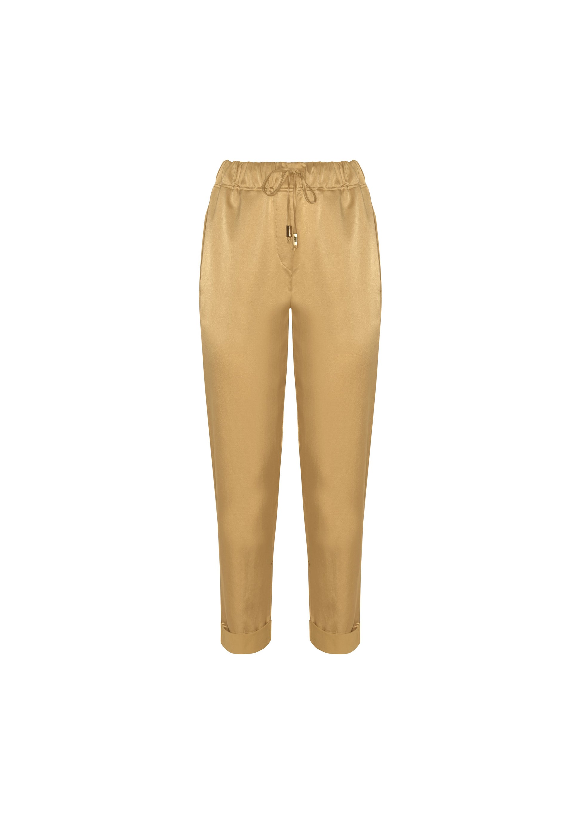 Trousers with elastic waist and drawstring, welt pockets and turn-up at the ankle
