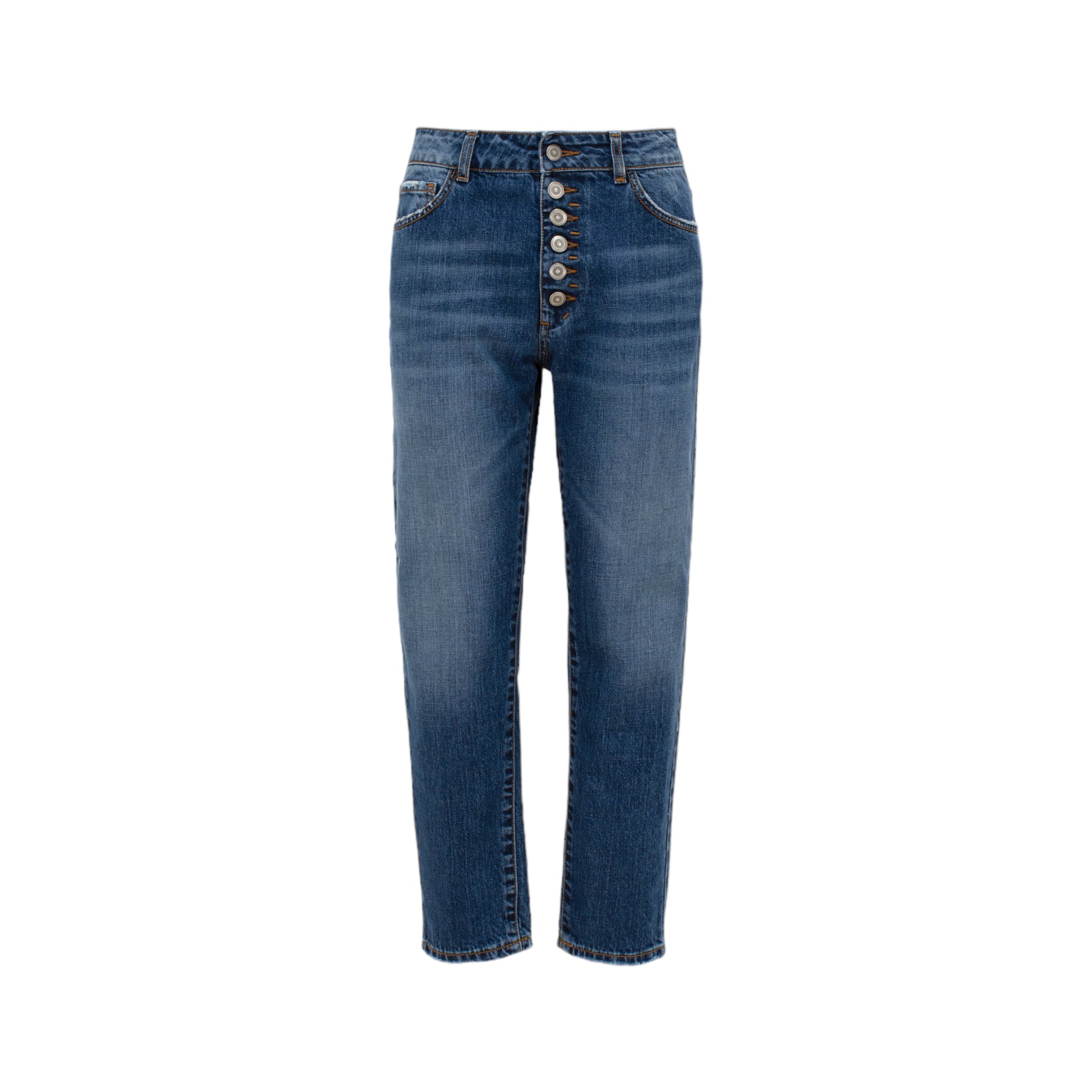 Carrot style jeans with visible buttons. Slim relaxation fit.