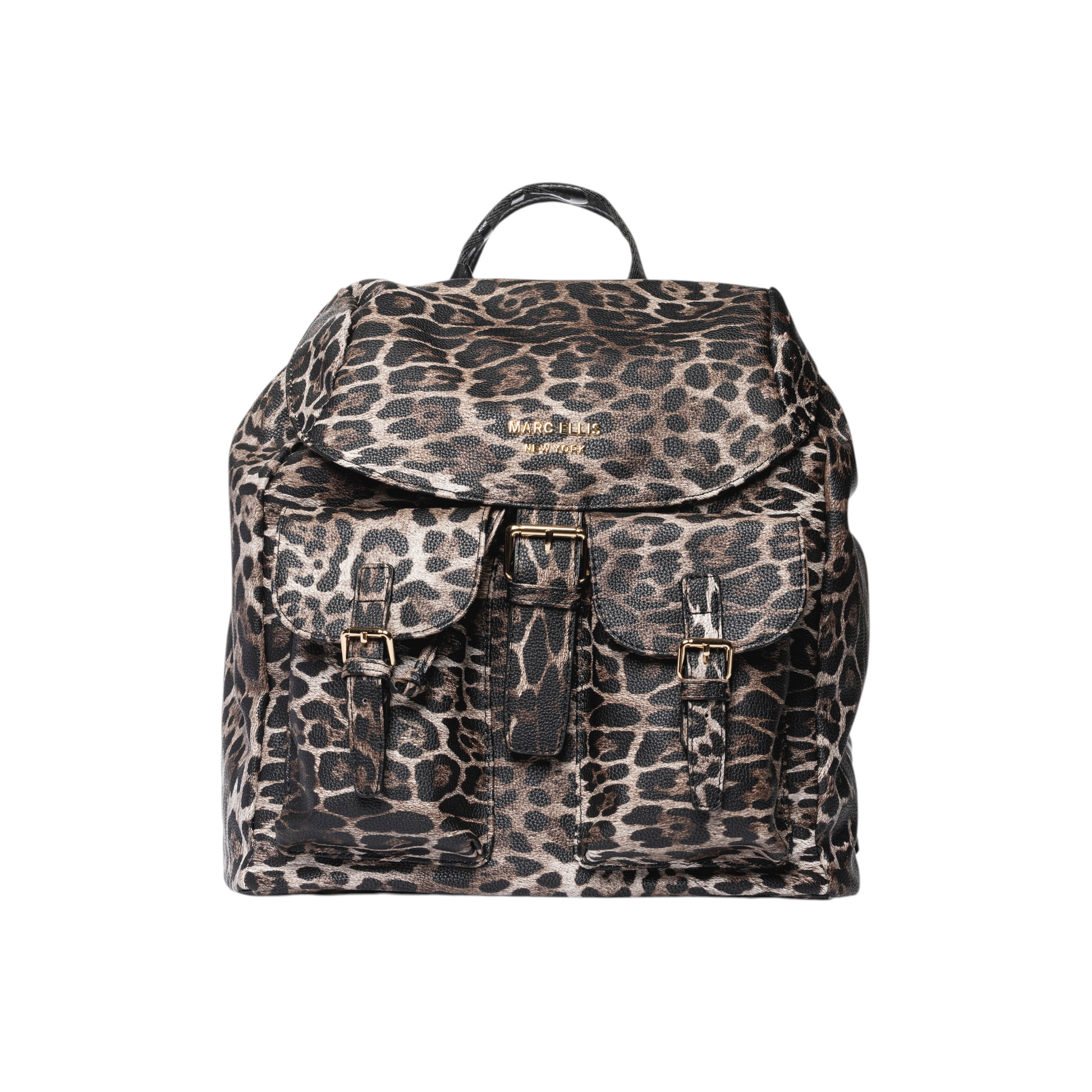 Questo zaino Marc Ellis unisce stile ed eleganza con la sua ecopelle martellata e la raffinata finitura maculata. La chiusura con laccetto e pattina assicura comodità e sicurezza, mentre le due tasche anteriori con pattina e bottone calamitato offrono praticità nella gestione degli oggetti. La maniglia e gli spallacci in nastro con logo completano un design funzionale e distintivo, perfetto per chi cerca un accessorio di qualità con un tocco fashion.