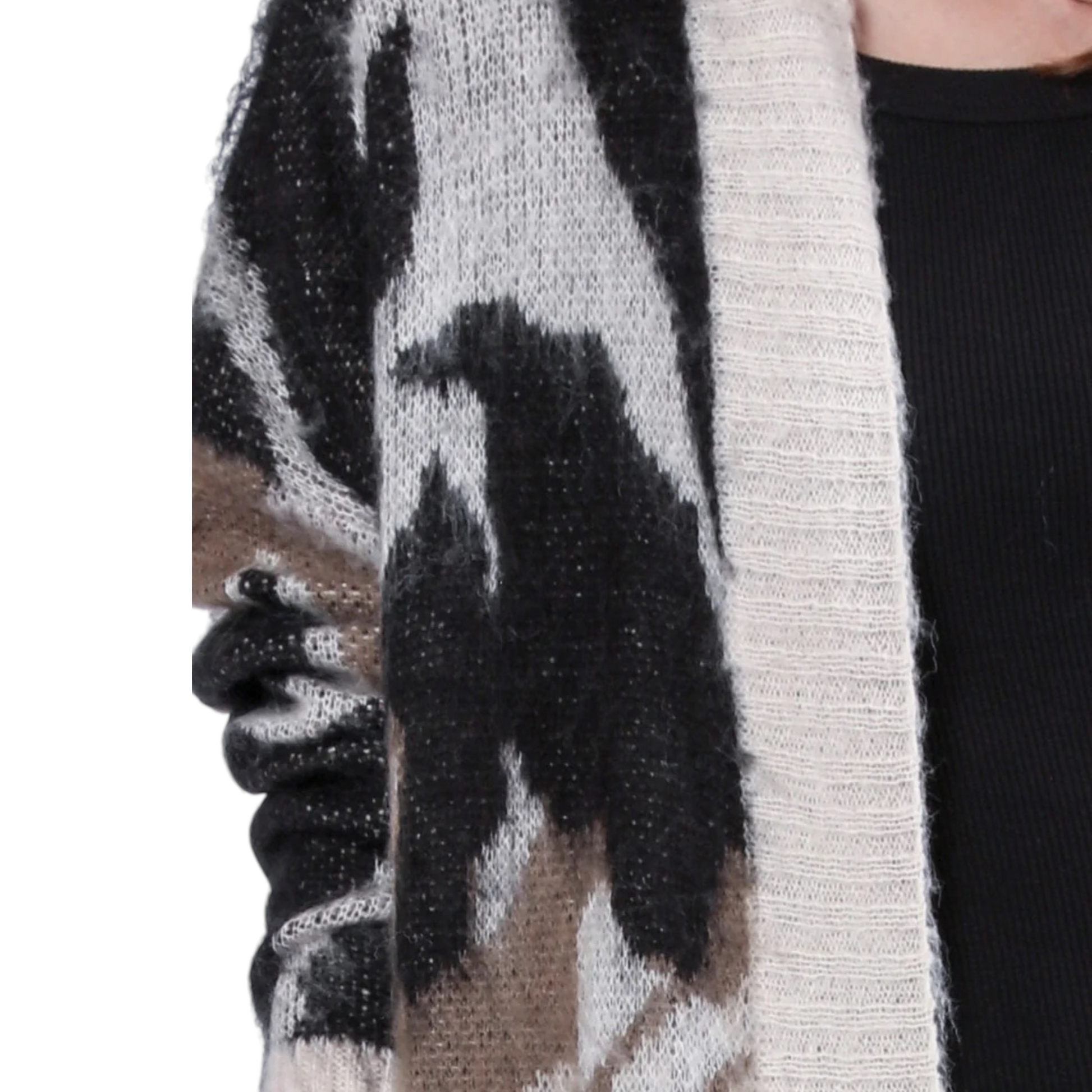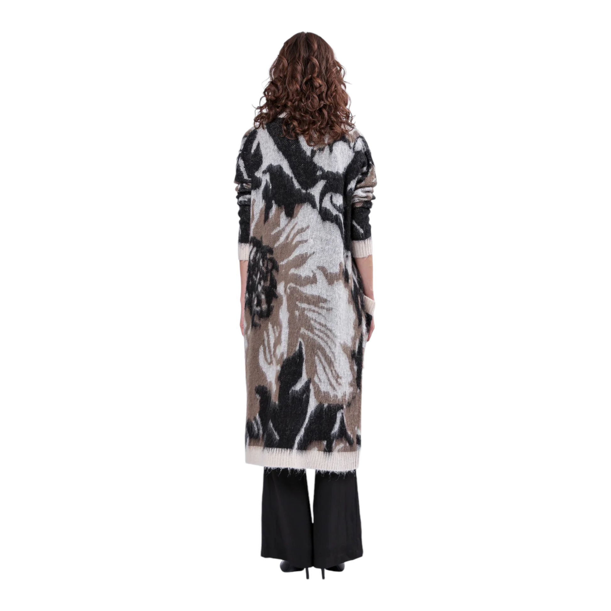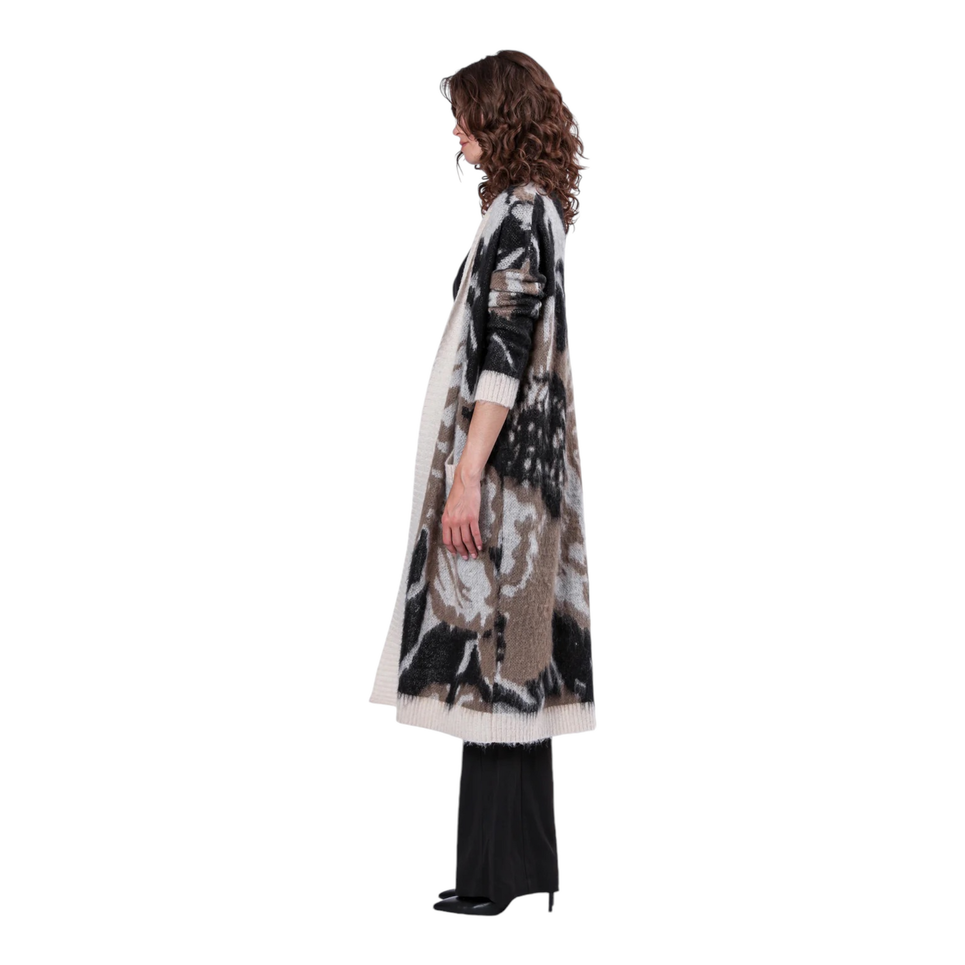 Elevate il vostro stile invernale con l'Eccentric Cardigan nei toni della pietra, un cardigan midaxi in misto lana confortevole e raffinato che esprime un tocco di eccentricità. Il suo esclusivo disegno floreale astratto in filato spazzolato non solo aggiunge calore, ma lo rende anche un pezzo forte della vostra collezione. Questo cardigan è pratico grazie alla chiusura con bottoni e alle comode tasche applicate. Sia che vogliate vestirvi per un'occasione speciale o che vogliate semplicemente farvi notare in una giornata informale, il cardigan Eccentric è la scelta ideale per tenersi caldi e alla moda. La modella indossa una taglia S. Lunghezza: 108 cm