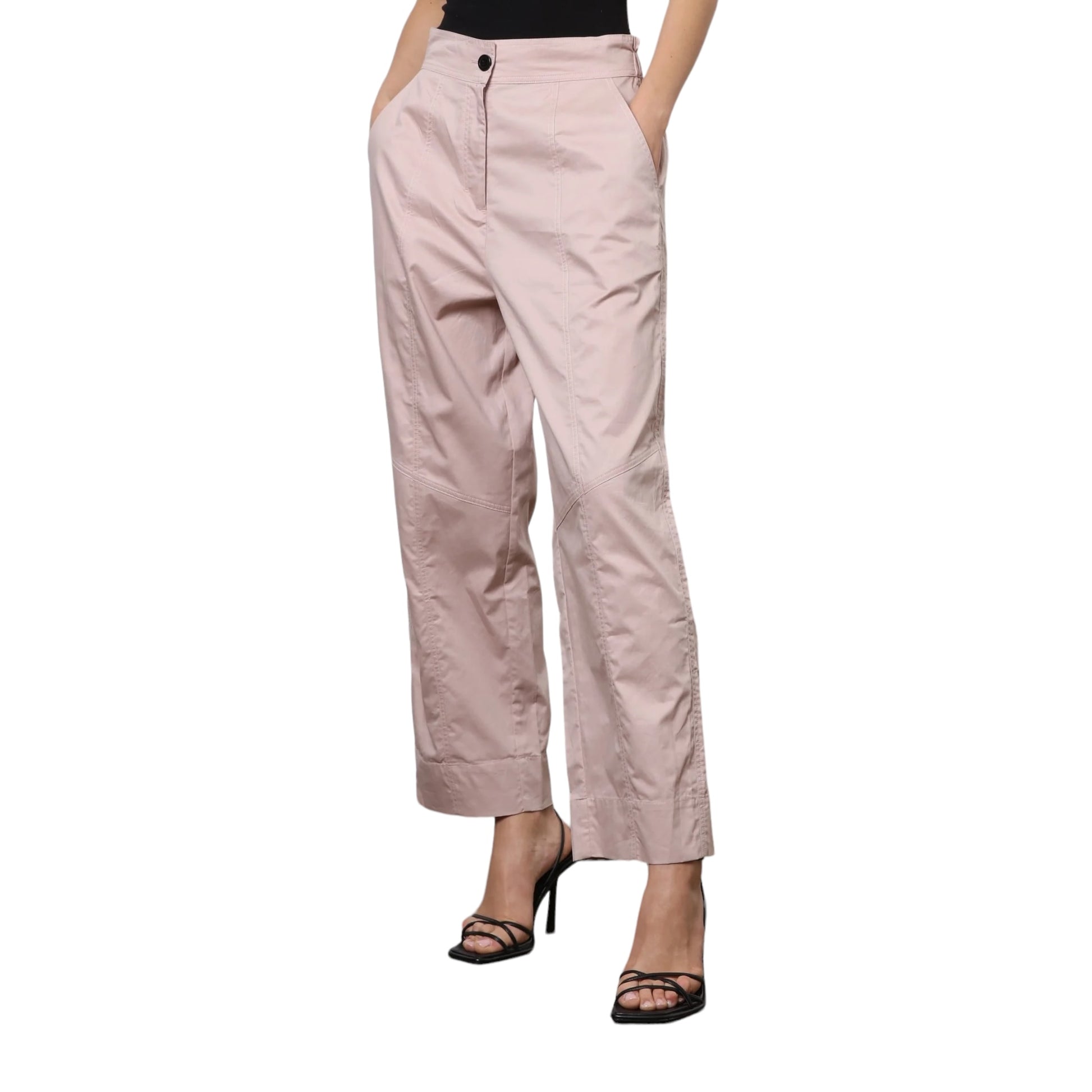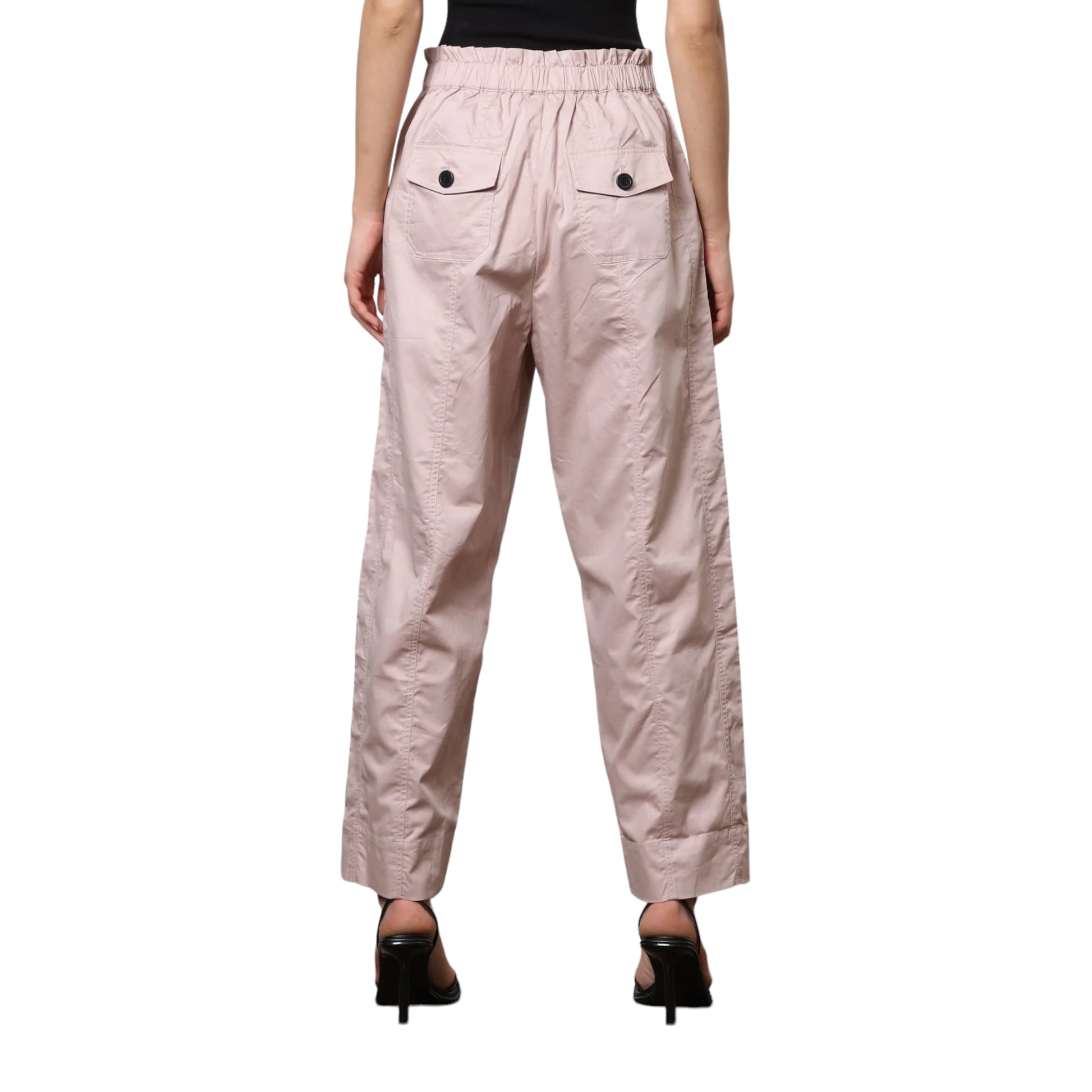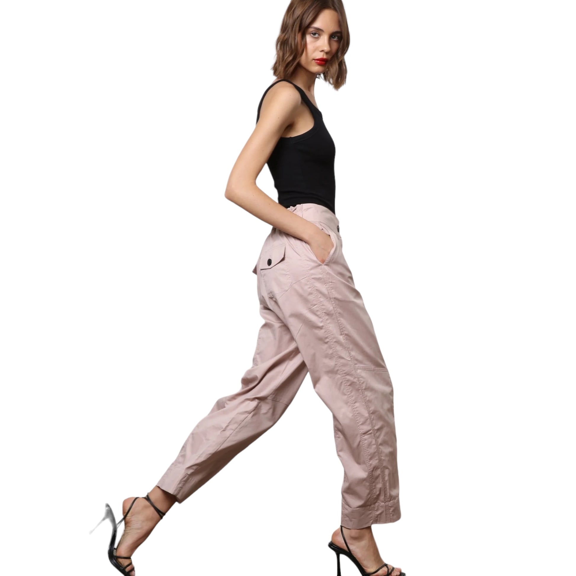 Make a statement in the Vivid trousers, crafted from a lightweight pink cotton fabric. With a relaxed fit and a fashionable mid-waist, these cargo trousers boast a fly zip and button closure that seamlessly combine style and convenience. The elasticated back waistband ensures a comfortable fit, while the patch pockets at the back add a touch of functionality. The turned-up cuffs and ankle-length design give them a contemporary twist. Model wears size S, inside leg: 65.5 cm, length with unfolded cuff: 70.5 cm