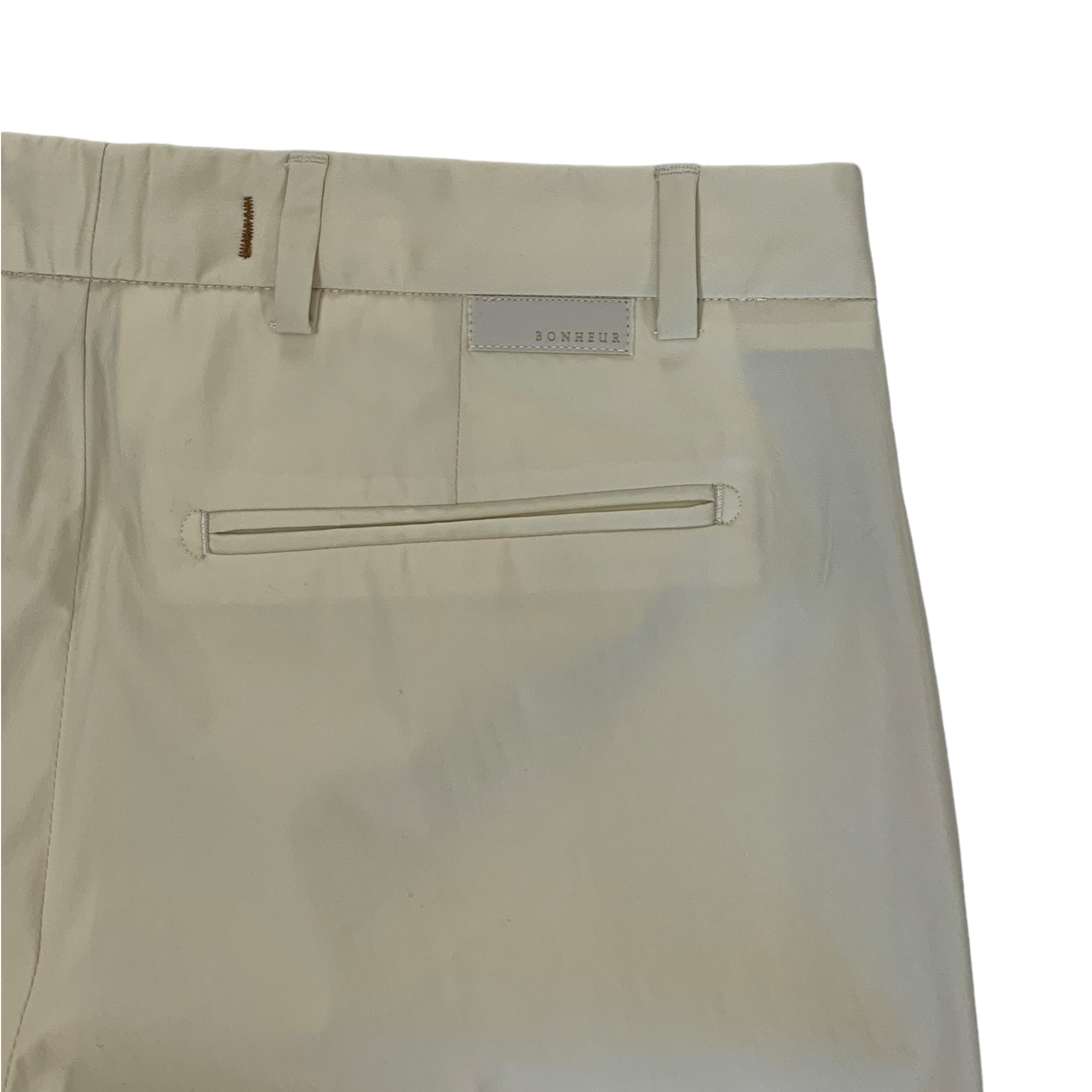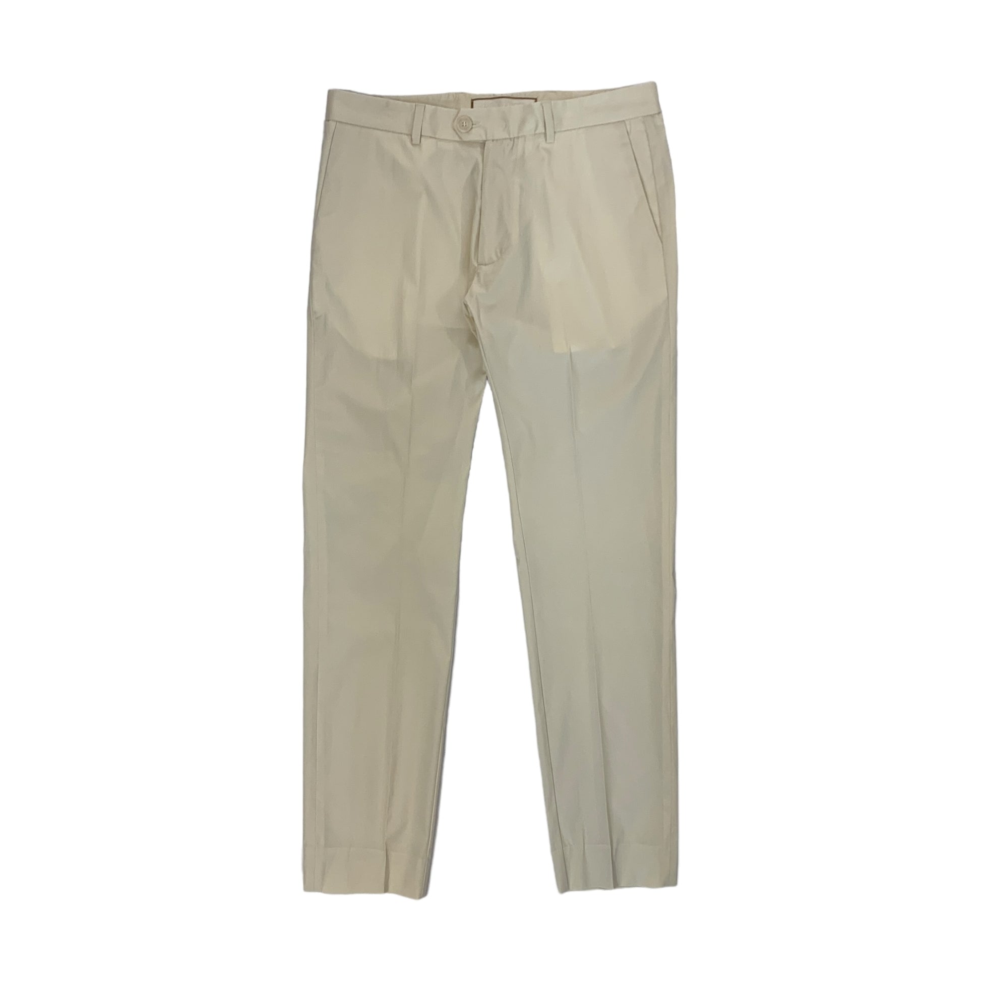 Pantalón estilo chino confeccionado en tejido extra ligero con bolsillos de vivo. Cierre con cremallera y botón.