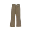 La struttura aderente sulla gamba valorizza la silhouette, mentre il fondo leggermente svasato dona movimento e un tocco moderno al capo. Il design è completato da tasche frontali e posteriori che aggiungono funzionalità e uno stile essenziale.