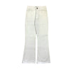 Jeans dal design contemporaneo, caratterizzato da una linea a trombetta che si apre delicatamente sul fondo, creando un effetto slanciato e femminile. Il modello presenta una vita media con chiusura frontale e passanti in vita, per una vestibilità stabile e confortevole.