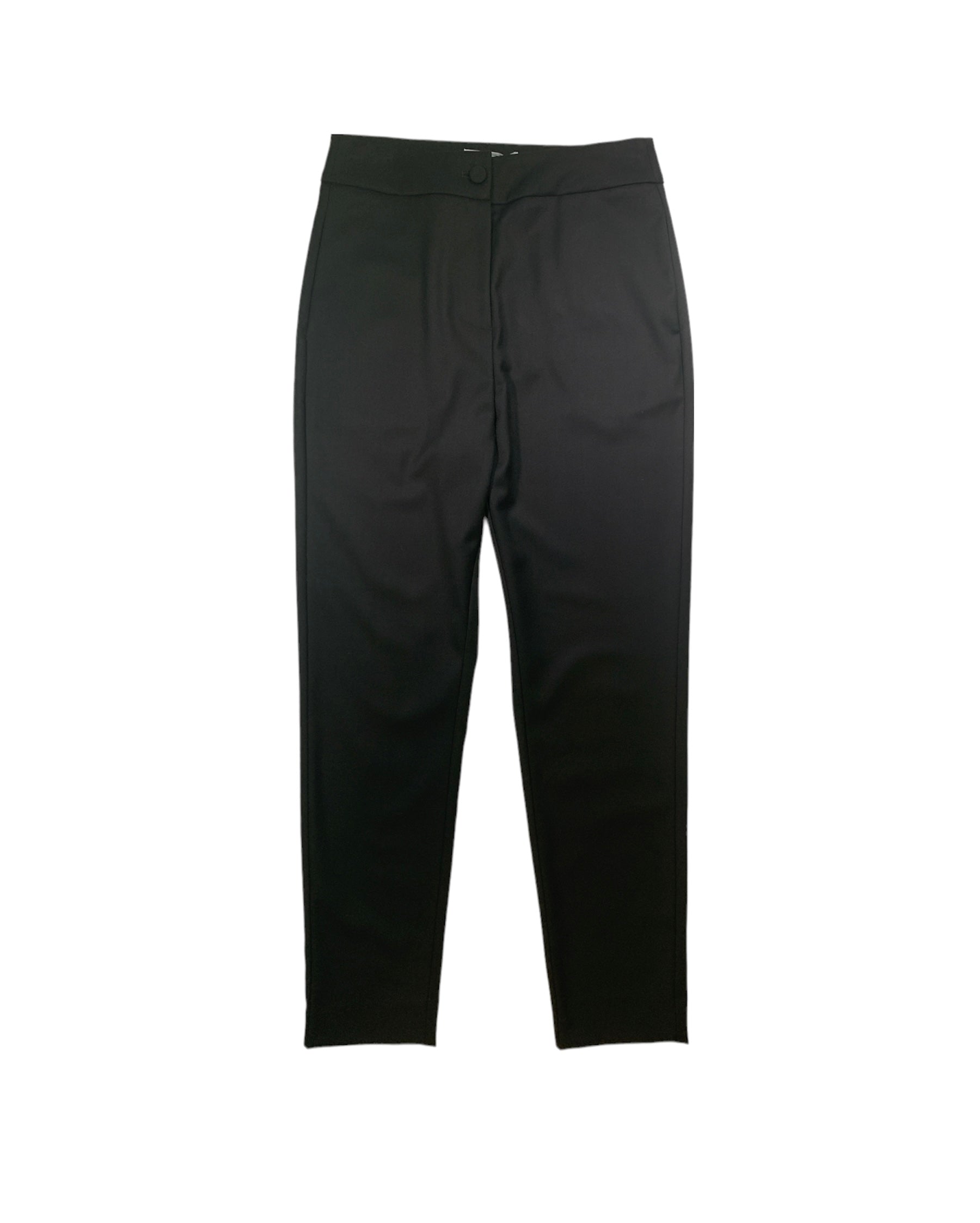 Pantalón pitillo de corte clásico y bolsillos ribeteados. Botón cubierto.