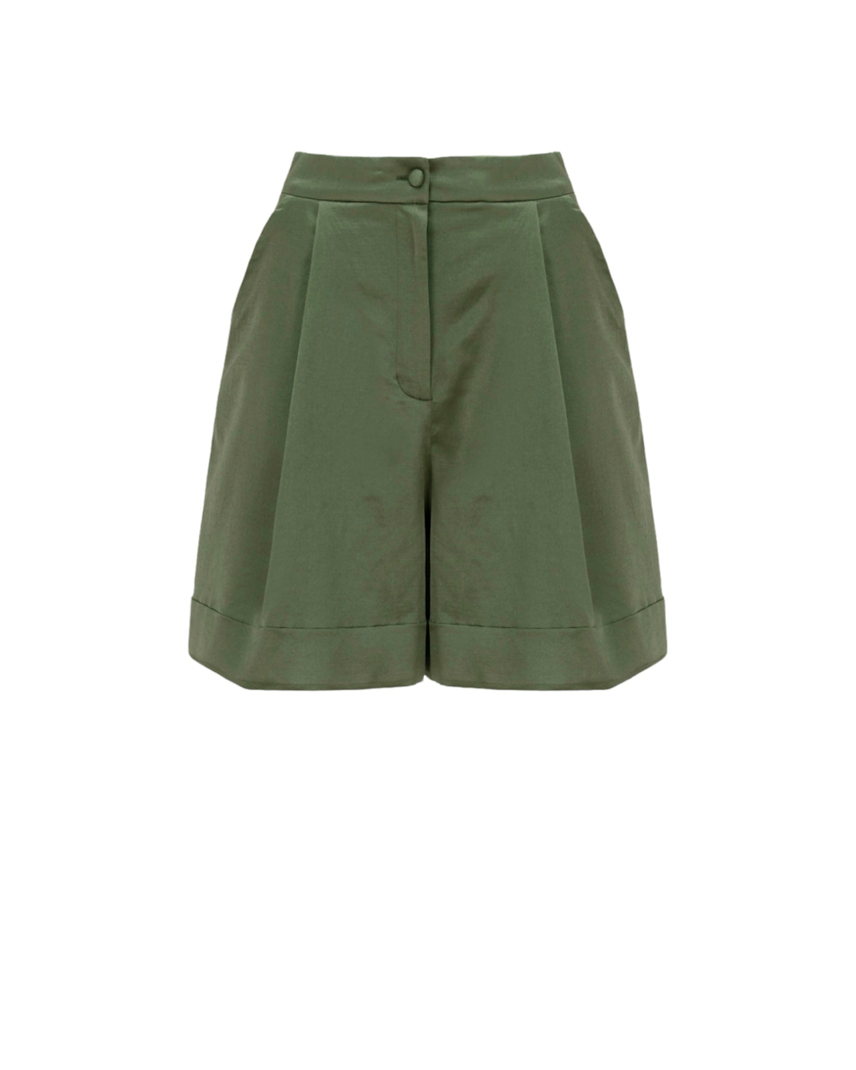 Short de talle alto con pliegues en la parte delantera y bolsillos de ribete.