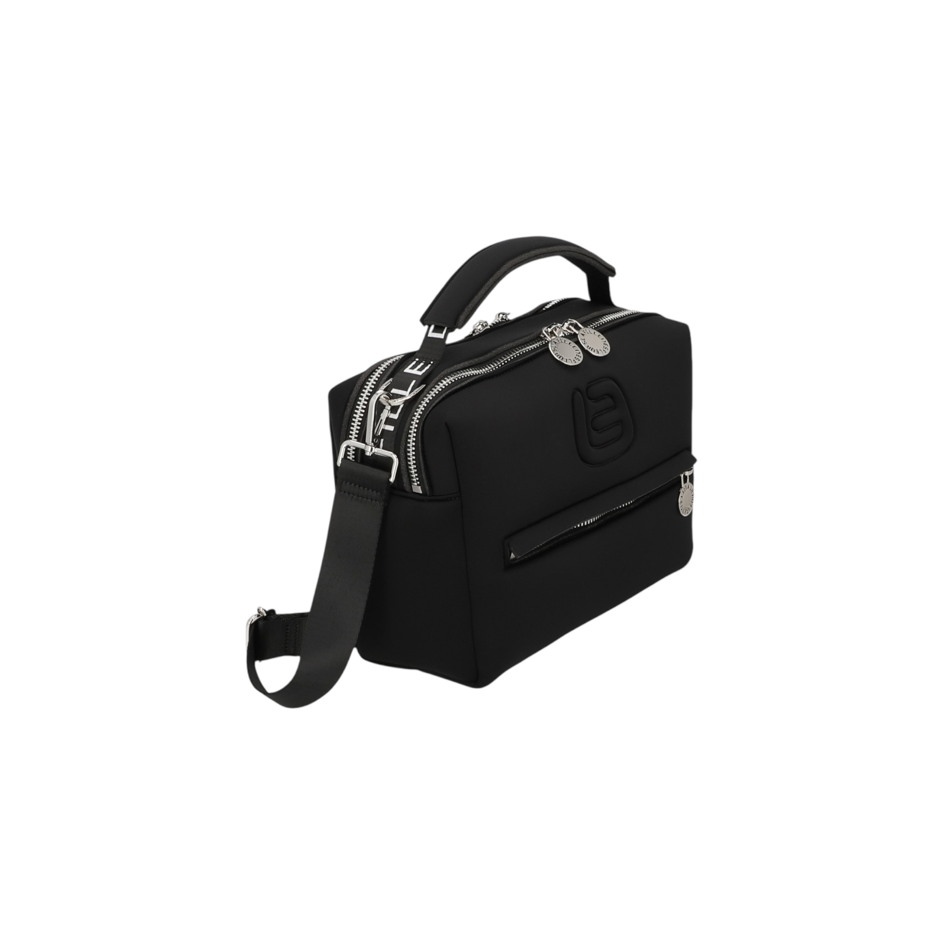 Dotata di manico superiore e tracolla regolabile, è perfetta da indossare a mano o crossbody. Il logo in rilievo e la tasca frontale con zip e charm metallico aggiungono un tocco distintivo ed elegante.