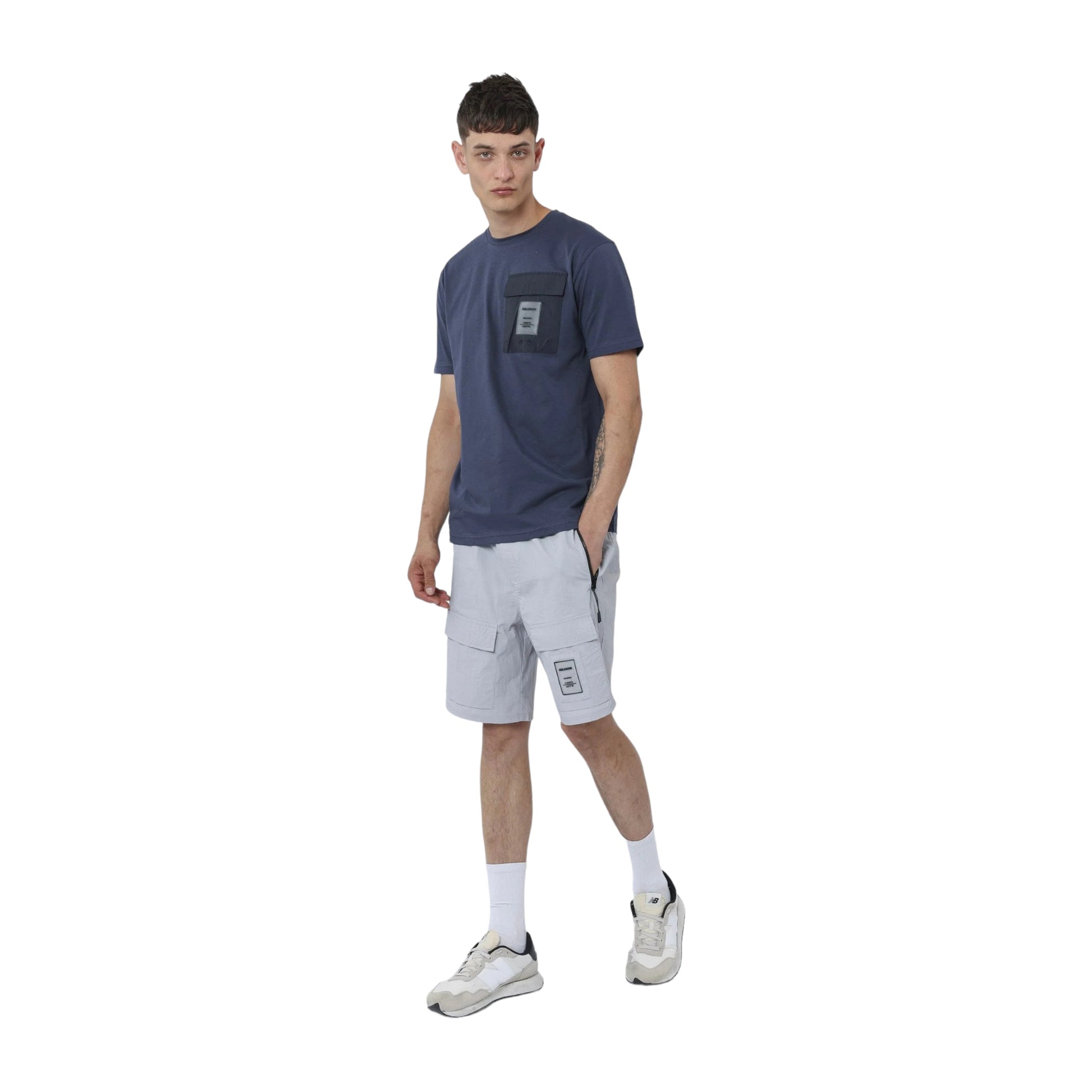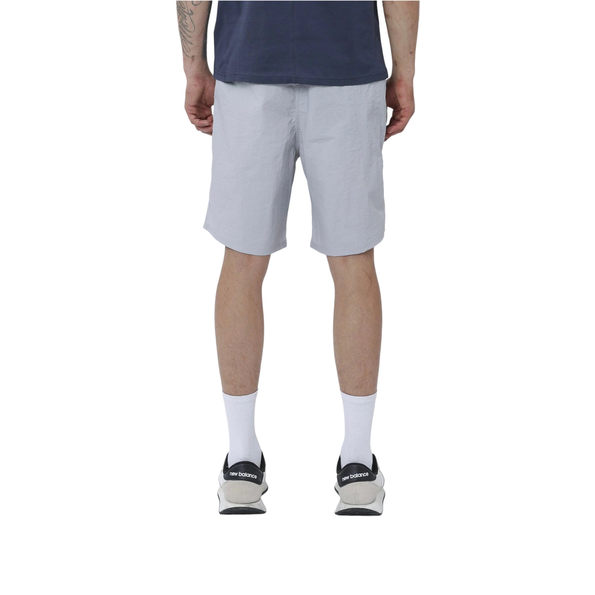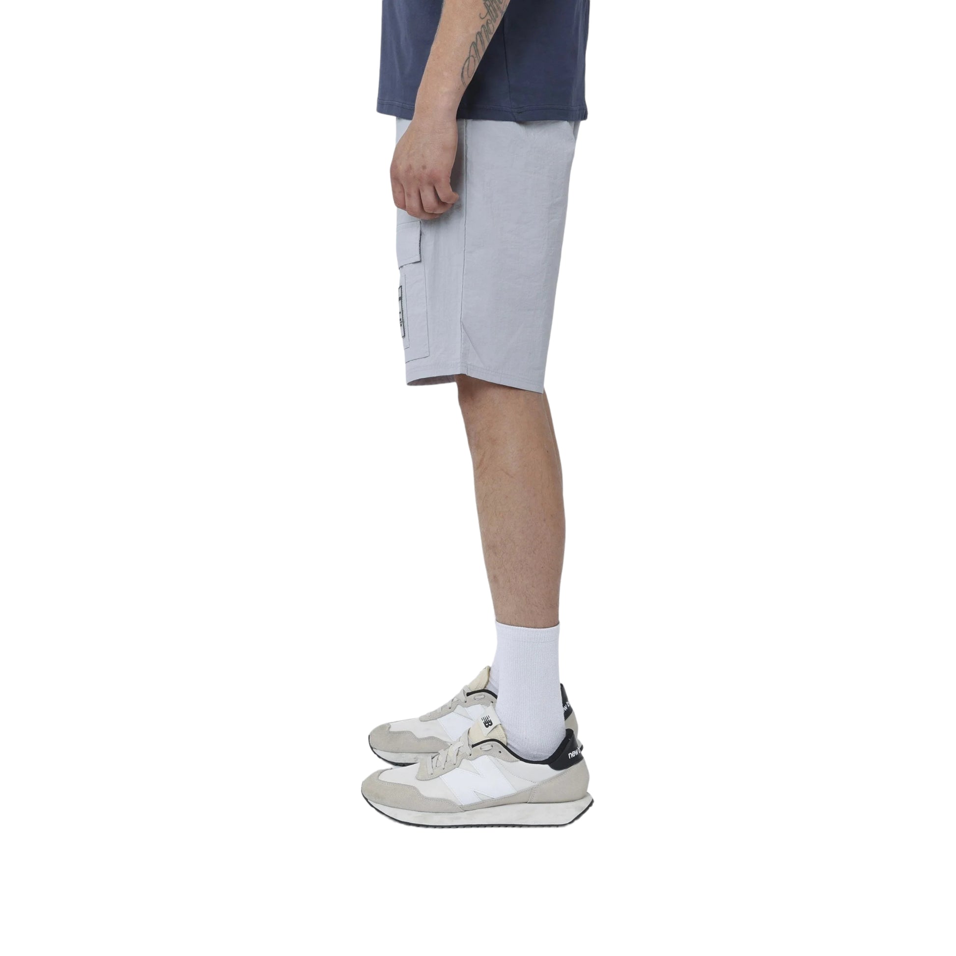 Pantalón corto con cintura elástica con cordón ajustable. Bolsillos laterales con cremallera y botones aplicados.