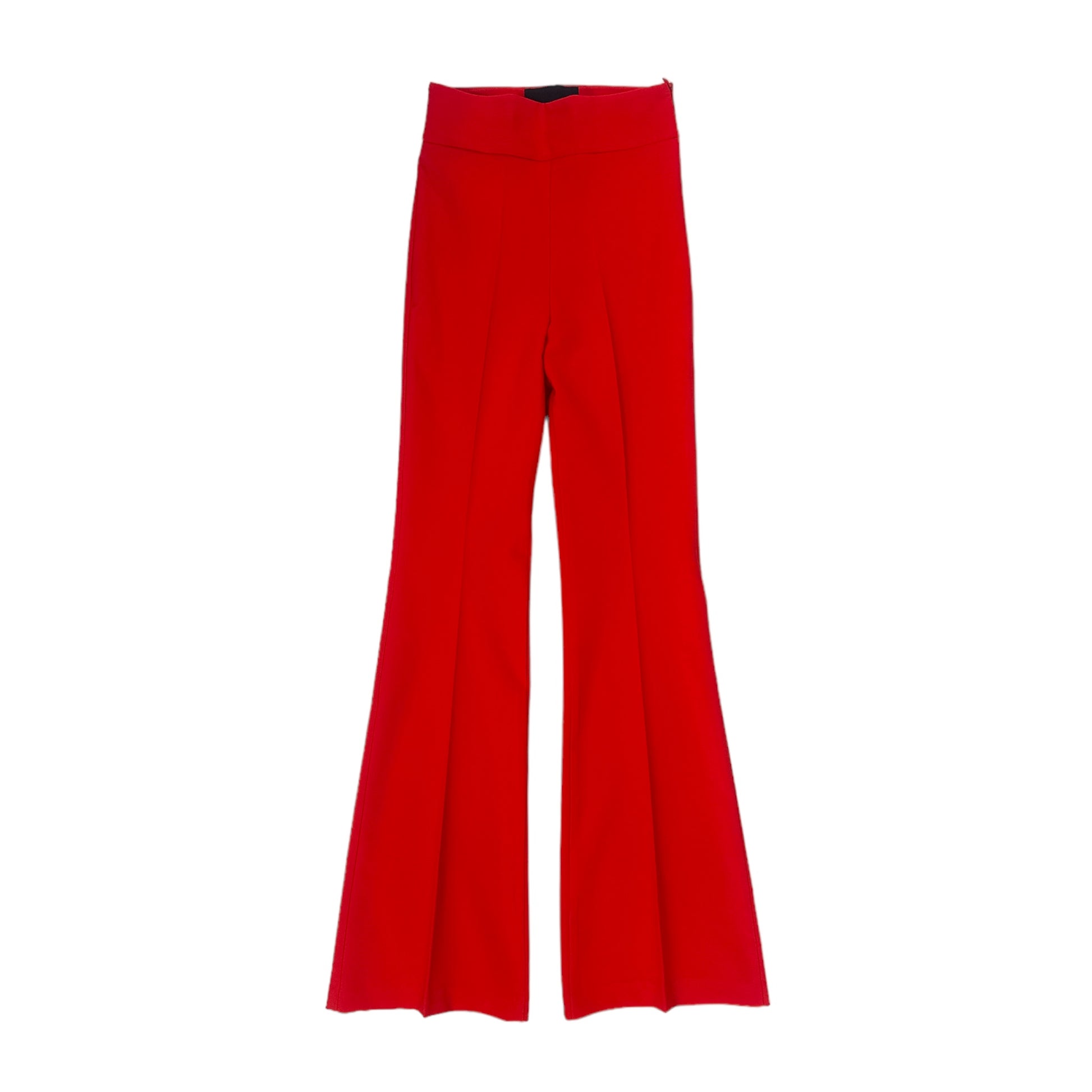 Pantalón de campana con corsé en cintura y cremallera lateral.