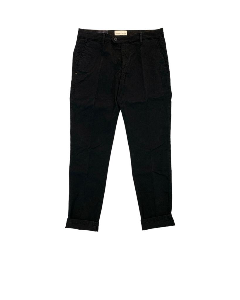 Pantalón estilo chino con bolsillos americanos laterales y bolsillos traseros de vivo. Cierre con puente nasal con bloque de botones y bragueta con cremallera. Ajuste relajado y delgado.