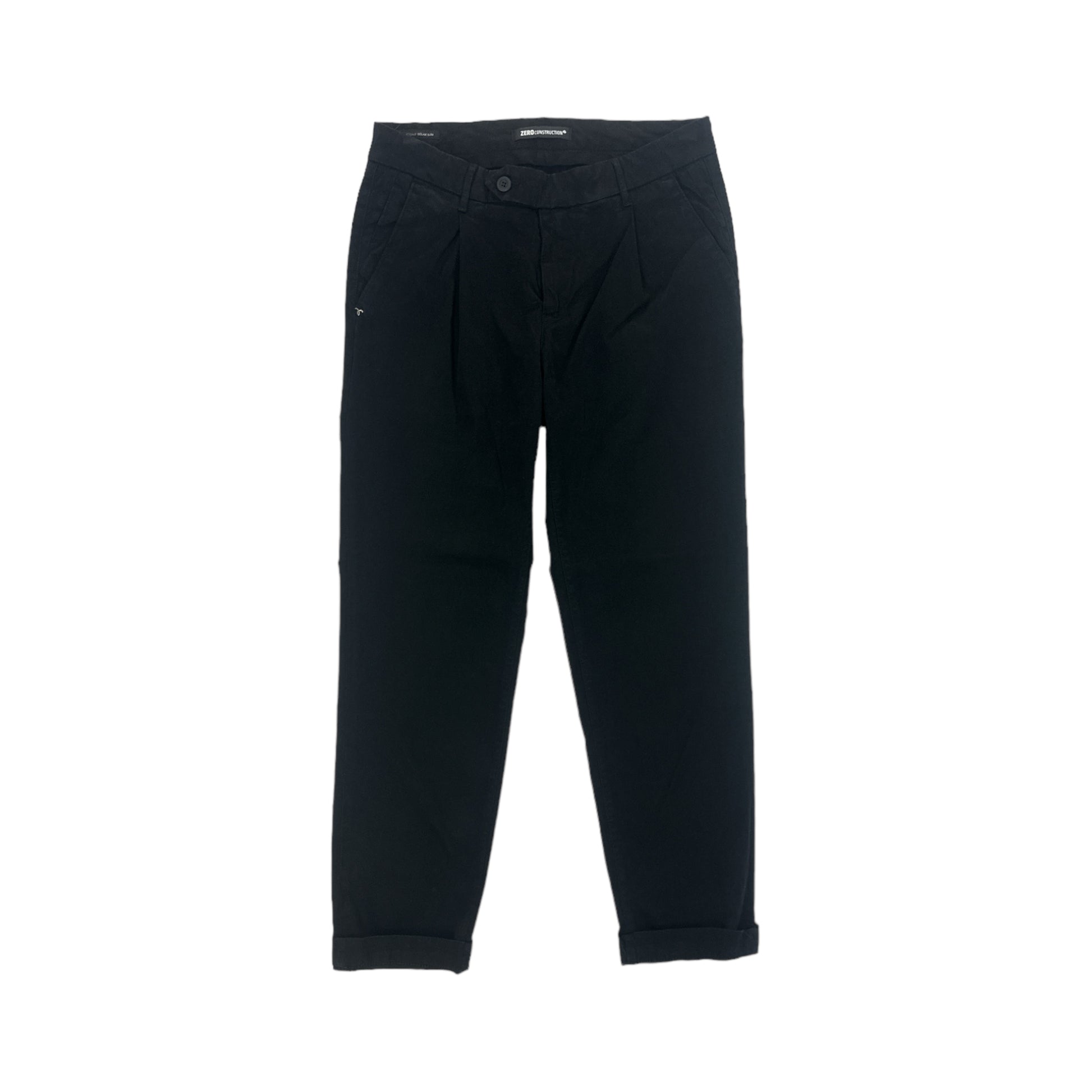 Pantalón estilo chino con pinzas y cierre de cremallera y botón. Ajuste relajado y delgado.