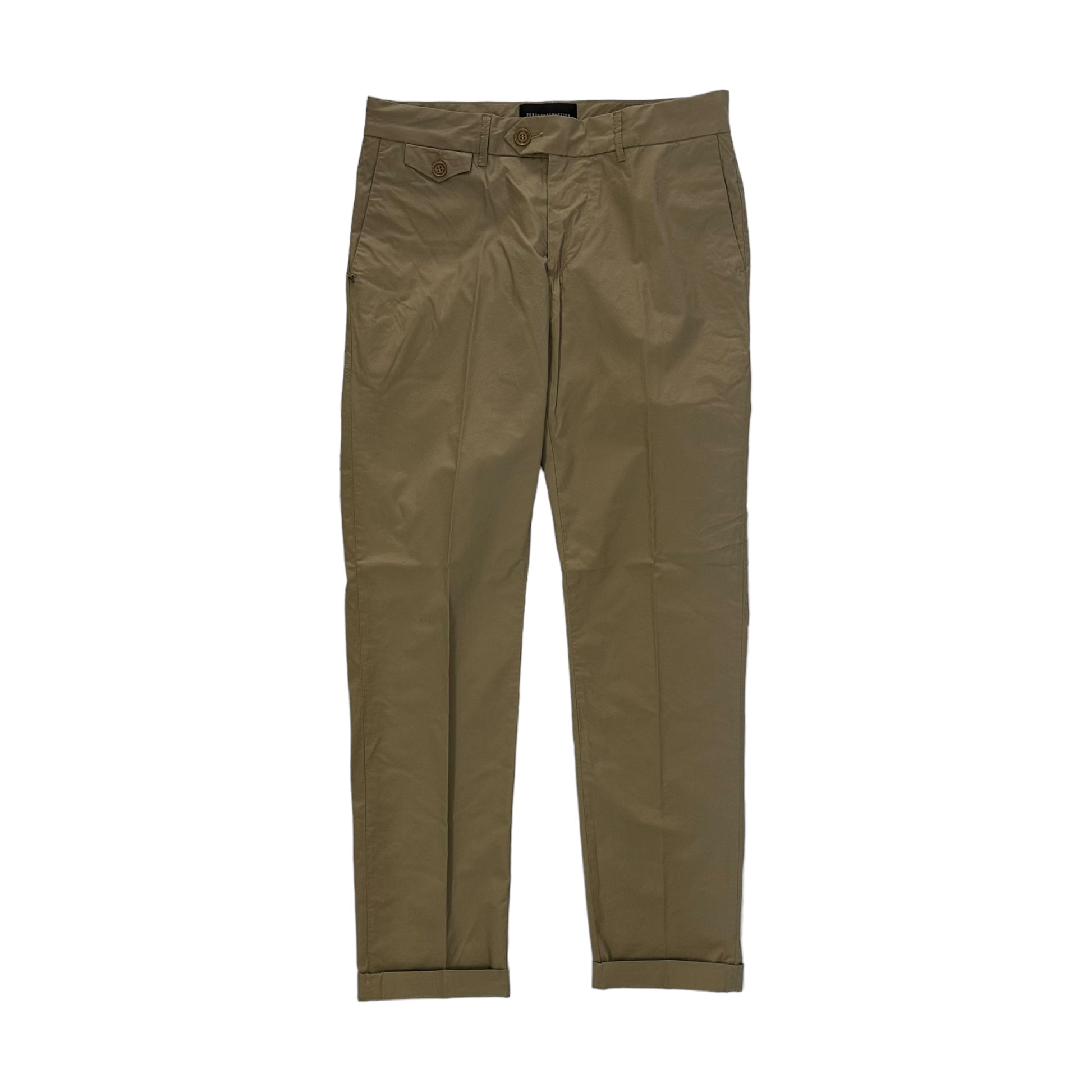 Pantalón estilo chino con bolsillos de vivo y bolsillo delantero. Cierre con cremallera y botón. Ajuste relajado y delgado.