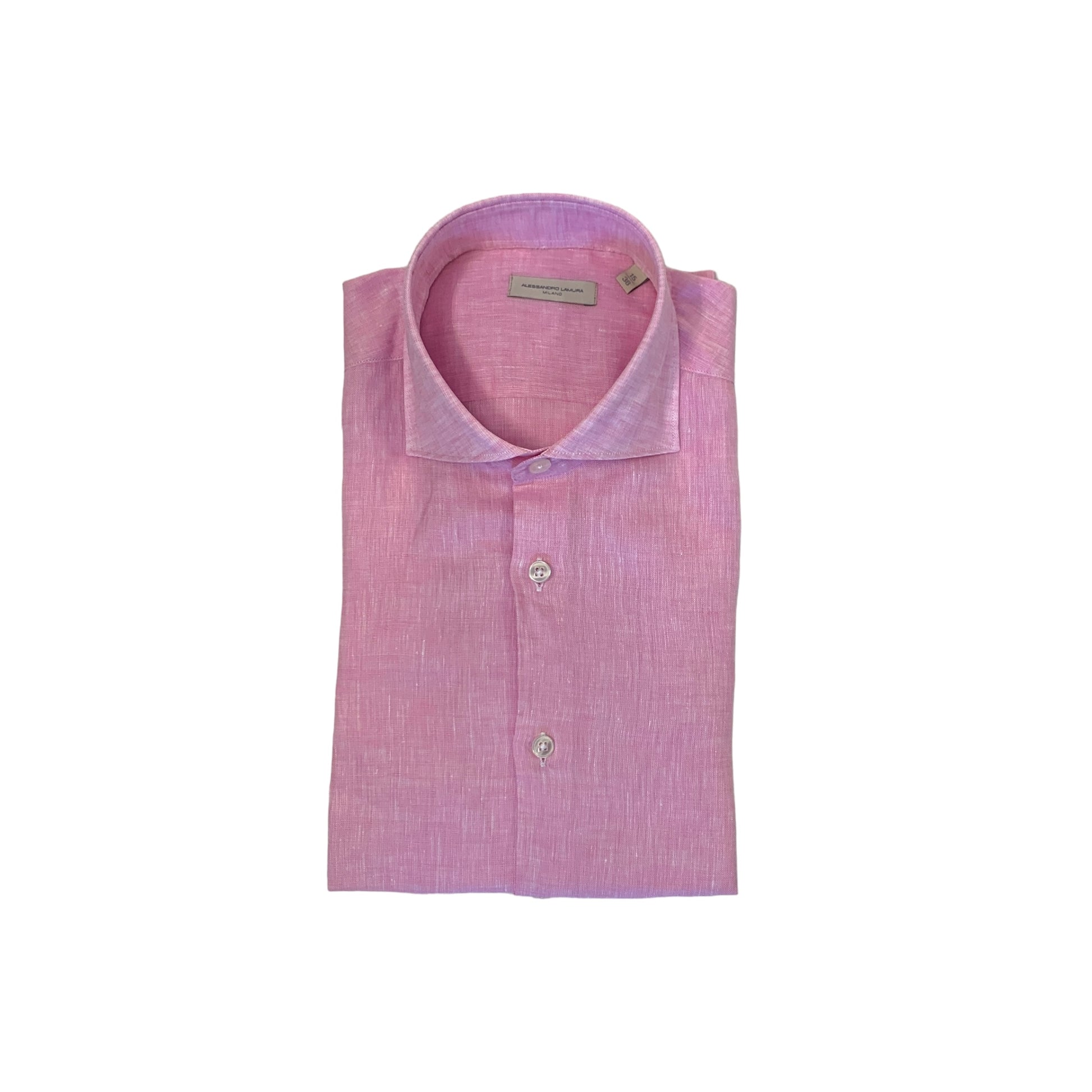 Camicia realizzata in tessuto di lino con maniche lunghe. Colletto francese. Chiusura frontale con abbottonatura. Vestibilità slim.