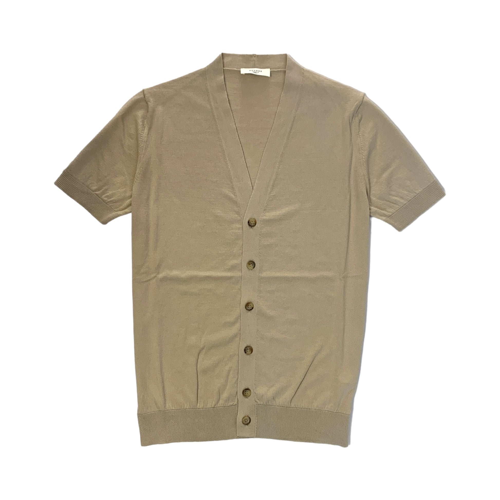 Cardigan mezza manica realizzato in filato di cotone. Scollo a punta. Chiusura formale con bottoni in madreperla. Orli a coste. Vestibilità regular.