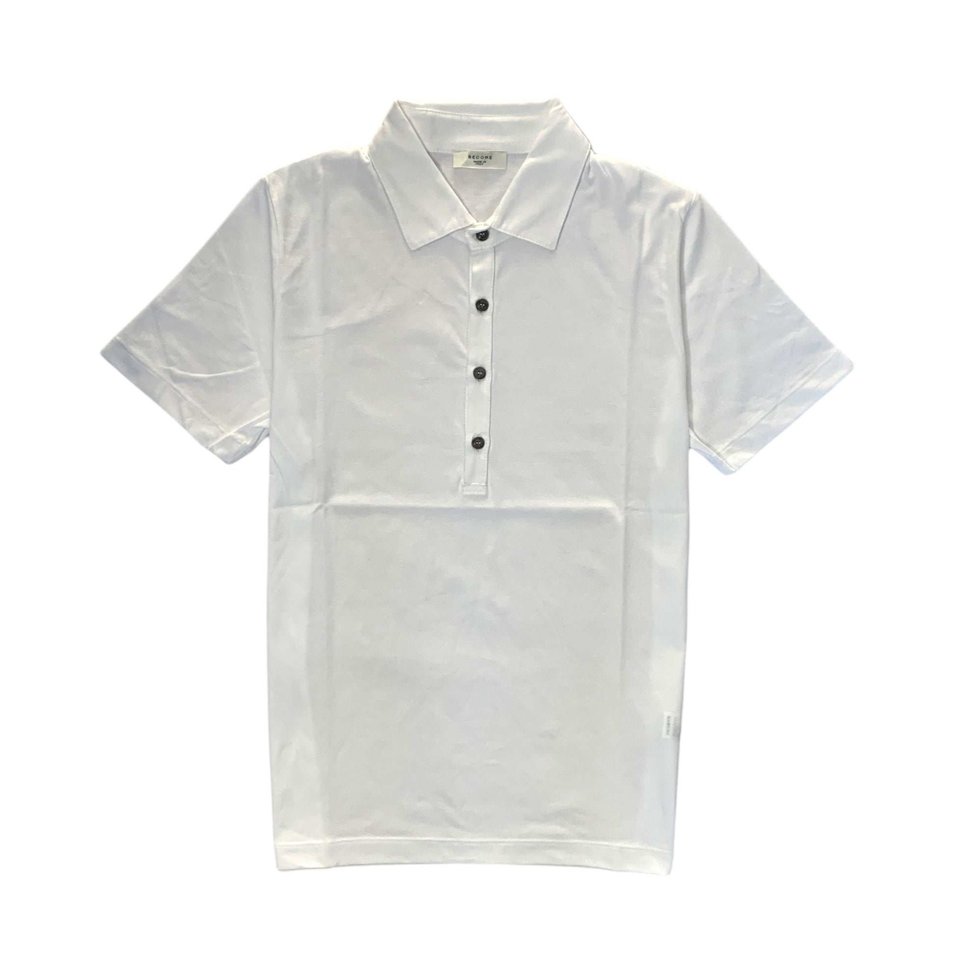 Polo mezza manica realizzata in jersey. Chiusura con 4 bottoni in madreperla.