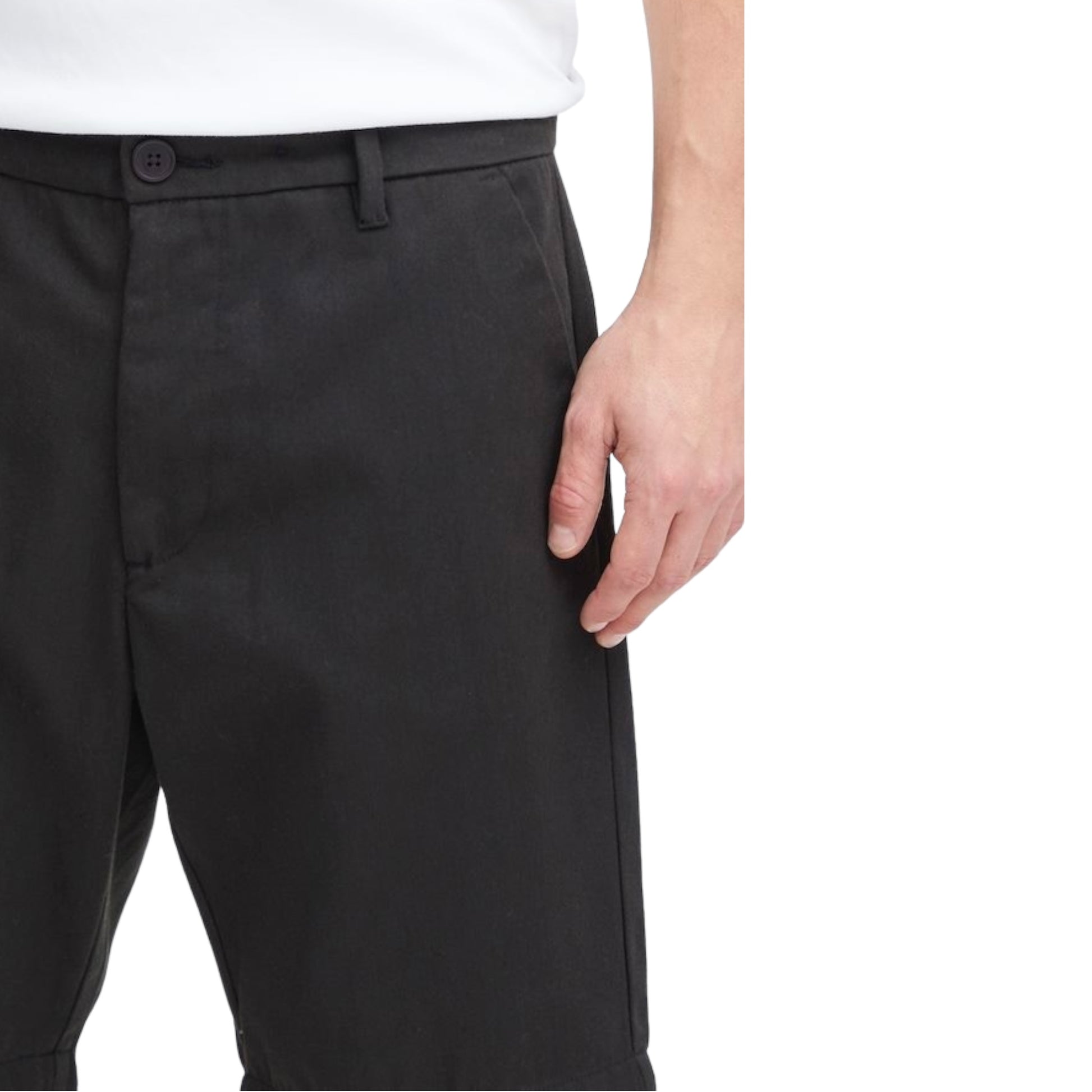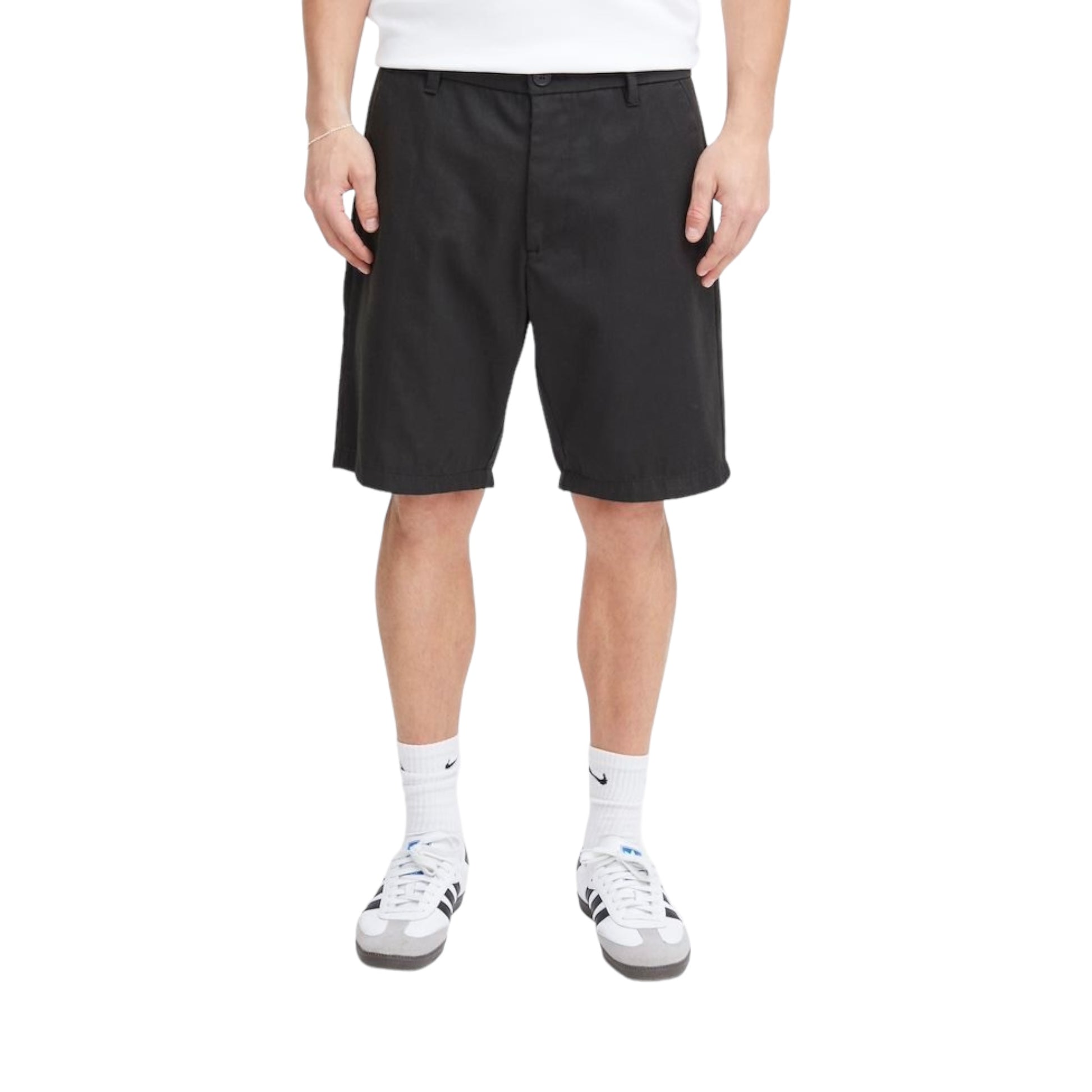 Bermuda con tasche a filo. Chiusura con zip e bottoni. Vestibilità regular.