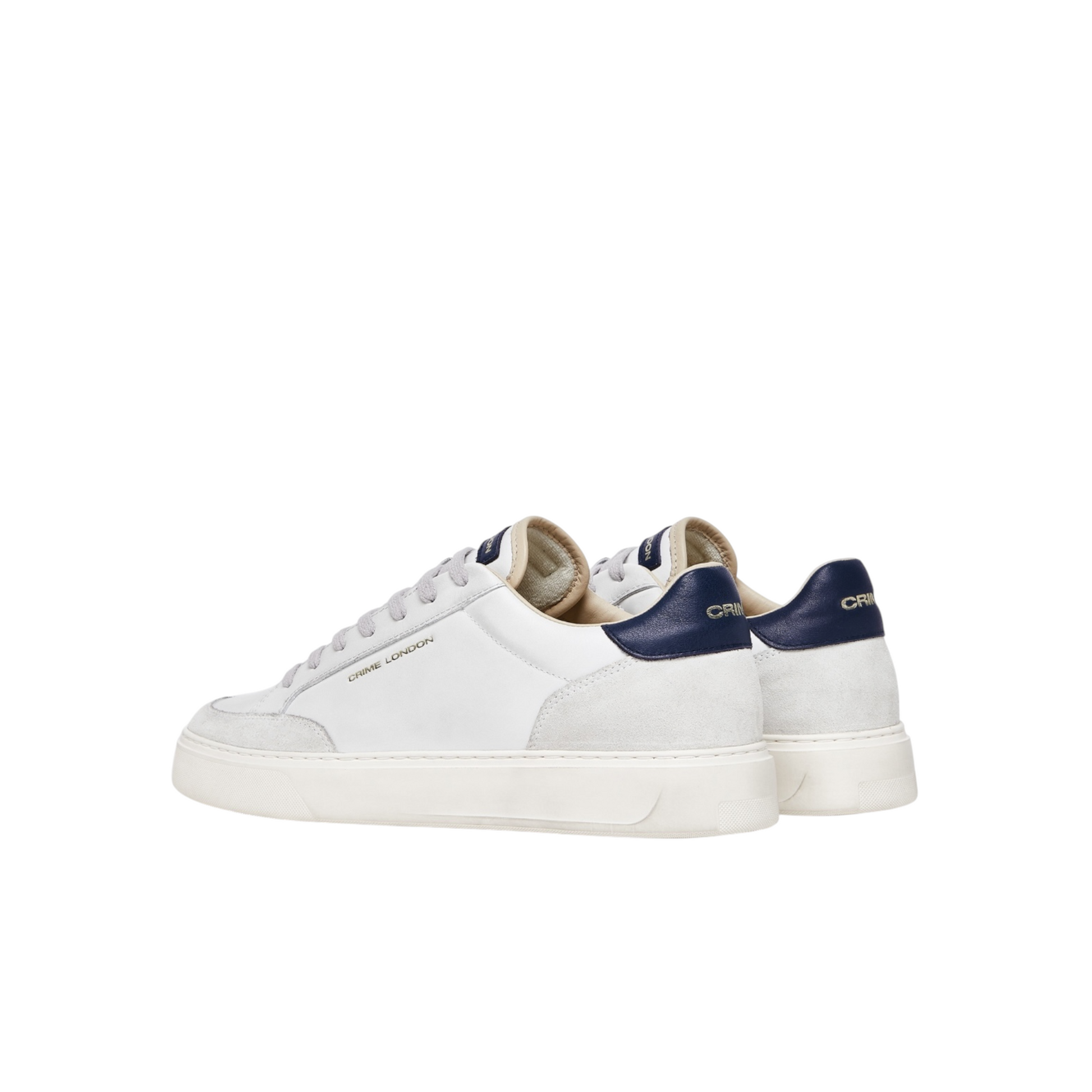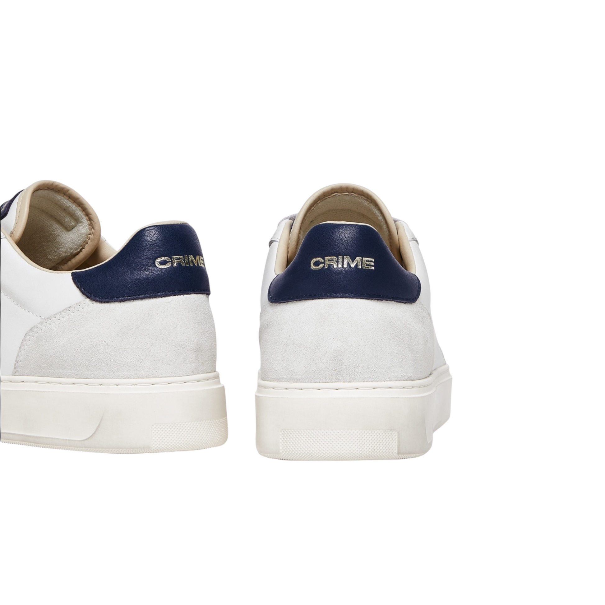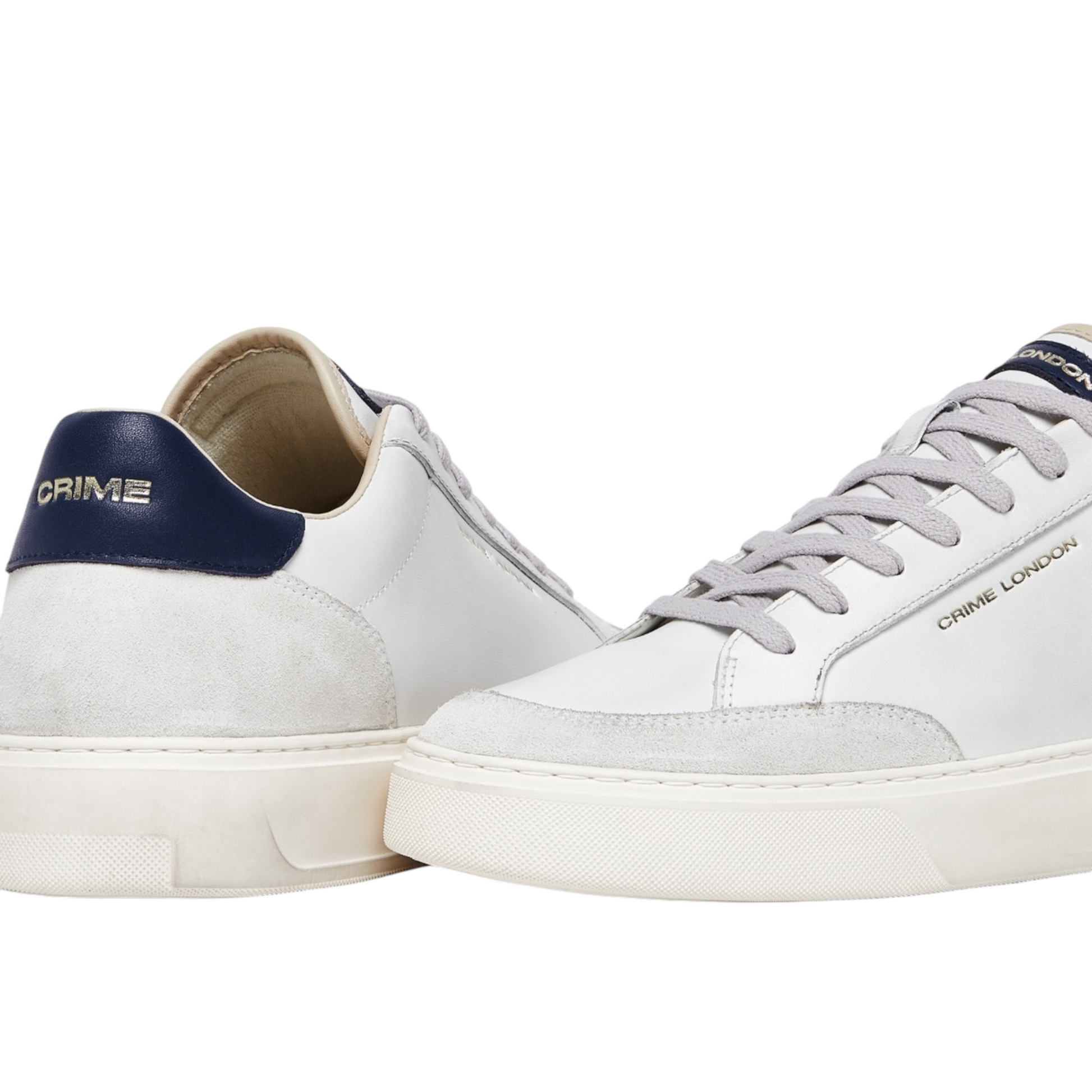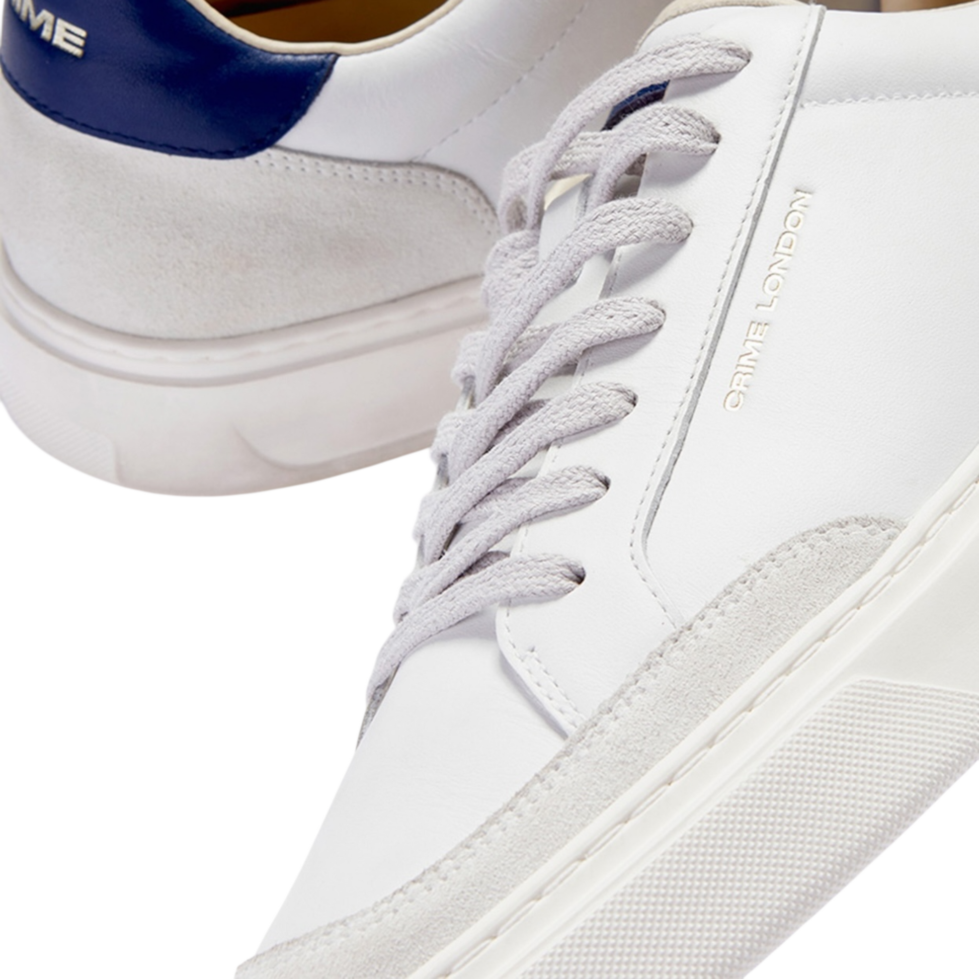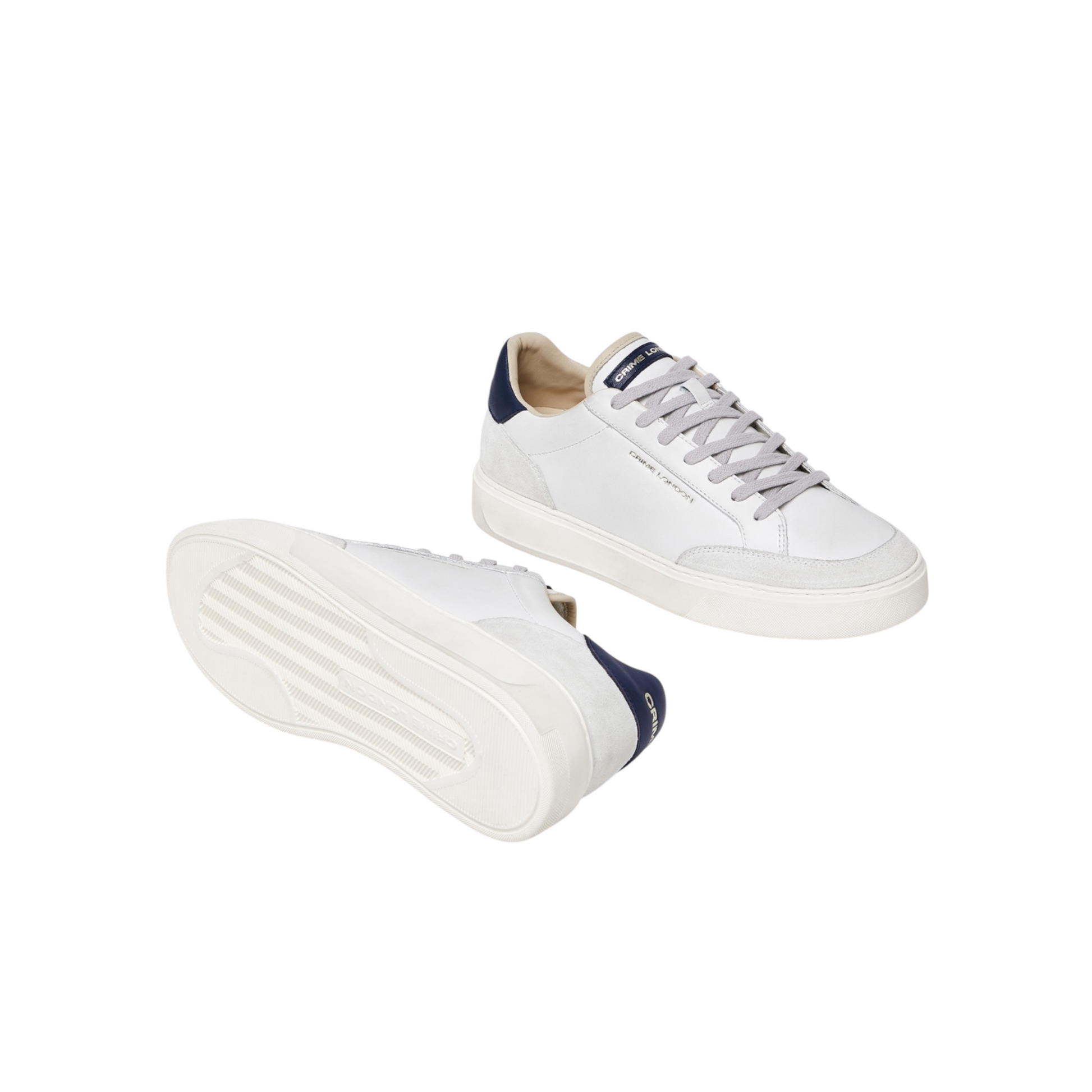 - Tomaia in pelle bianca con tallone in nappa blue e dettagli in suede bianco
