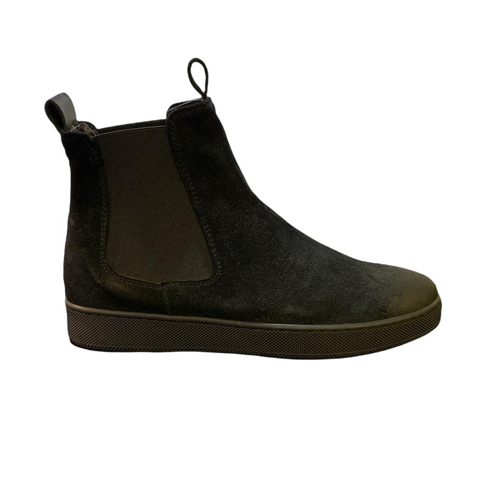 Stivaletto in pelle scamosciata con elastico. Suola in gomma.