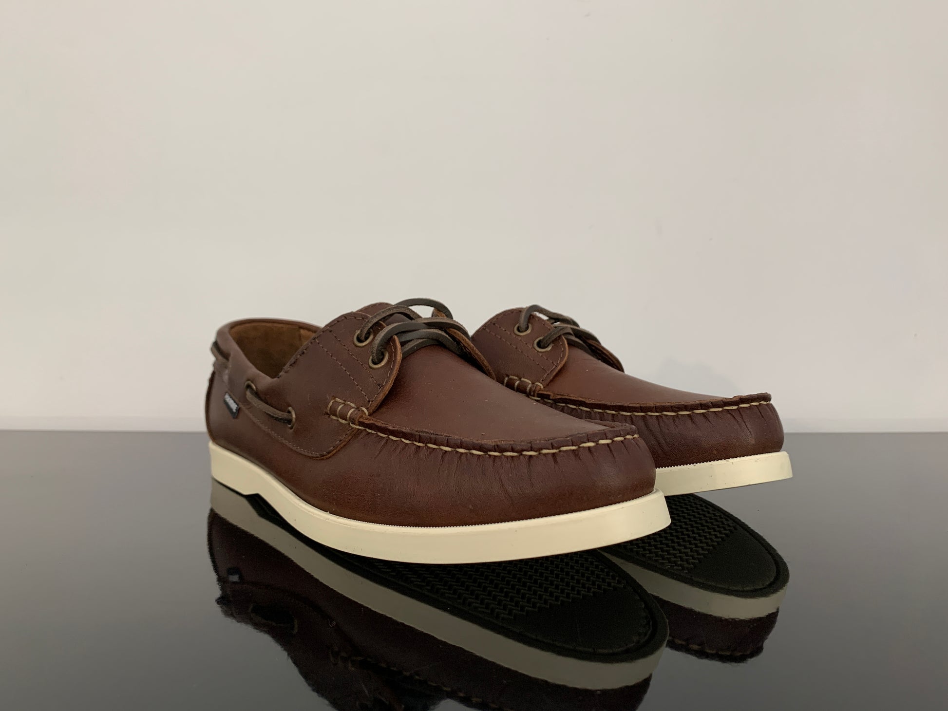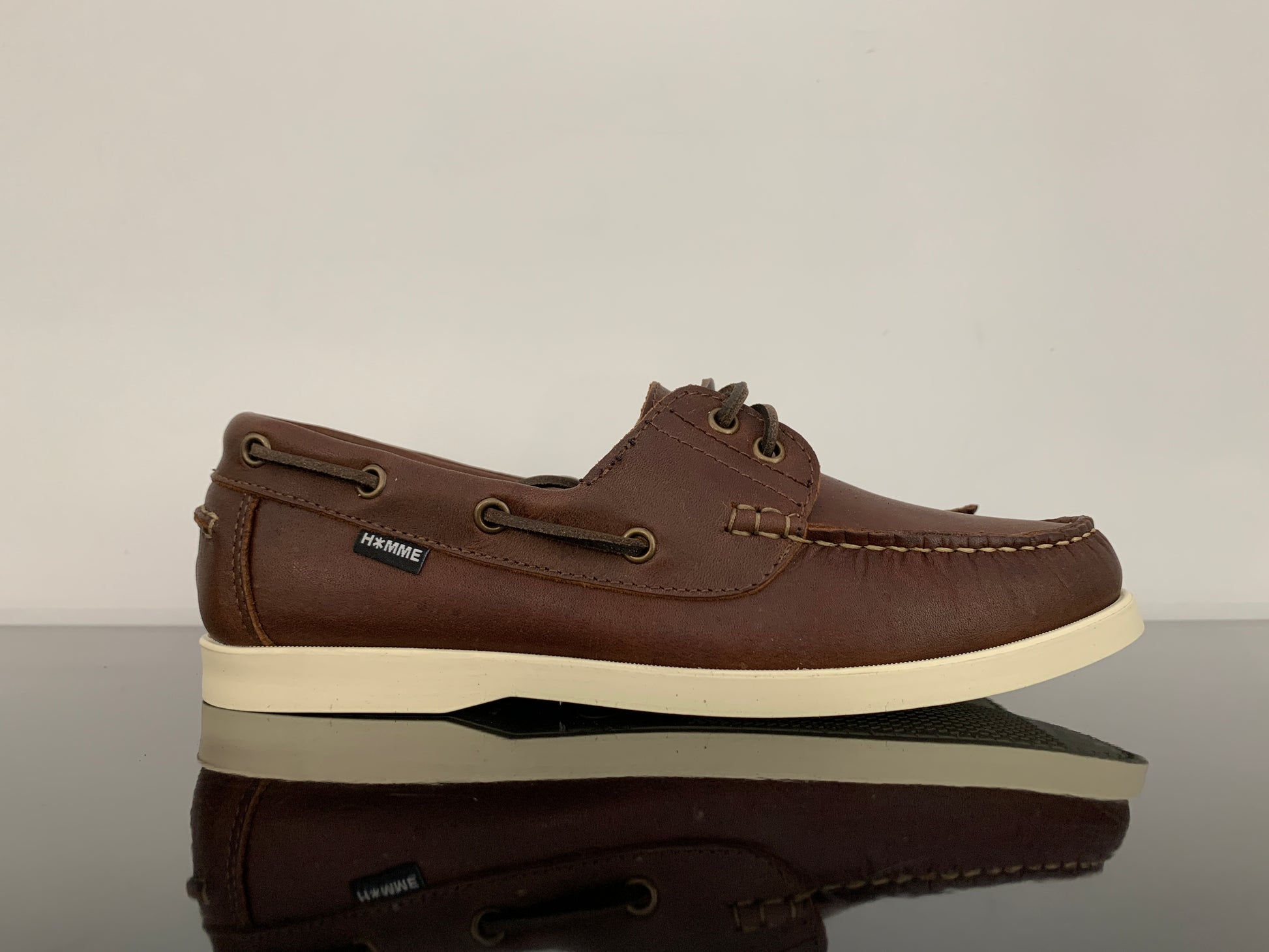Mocassino in pelle con suola in gomma, modello barca.