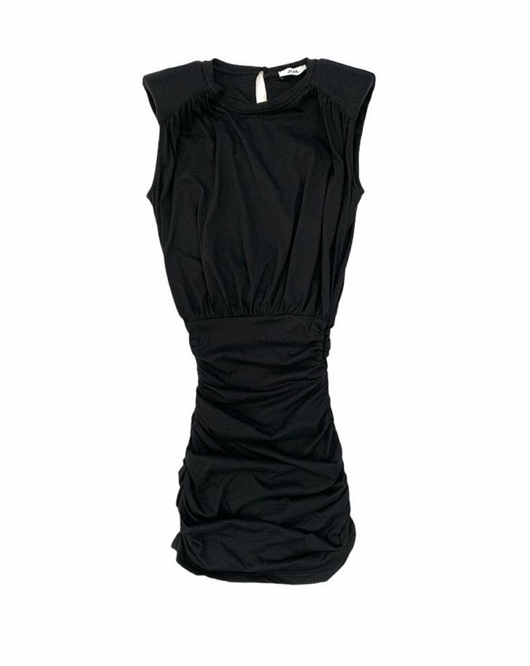 Abito in cotone, giromanica con spalline. Aderente su fianchi vita, sblusato sopra.