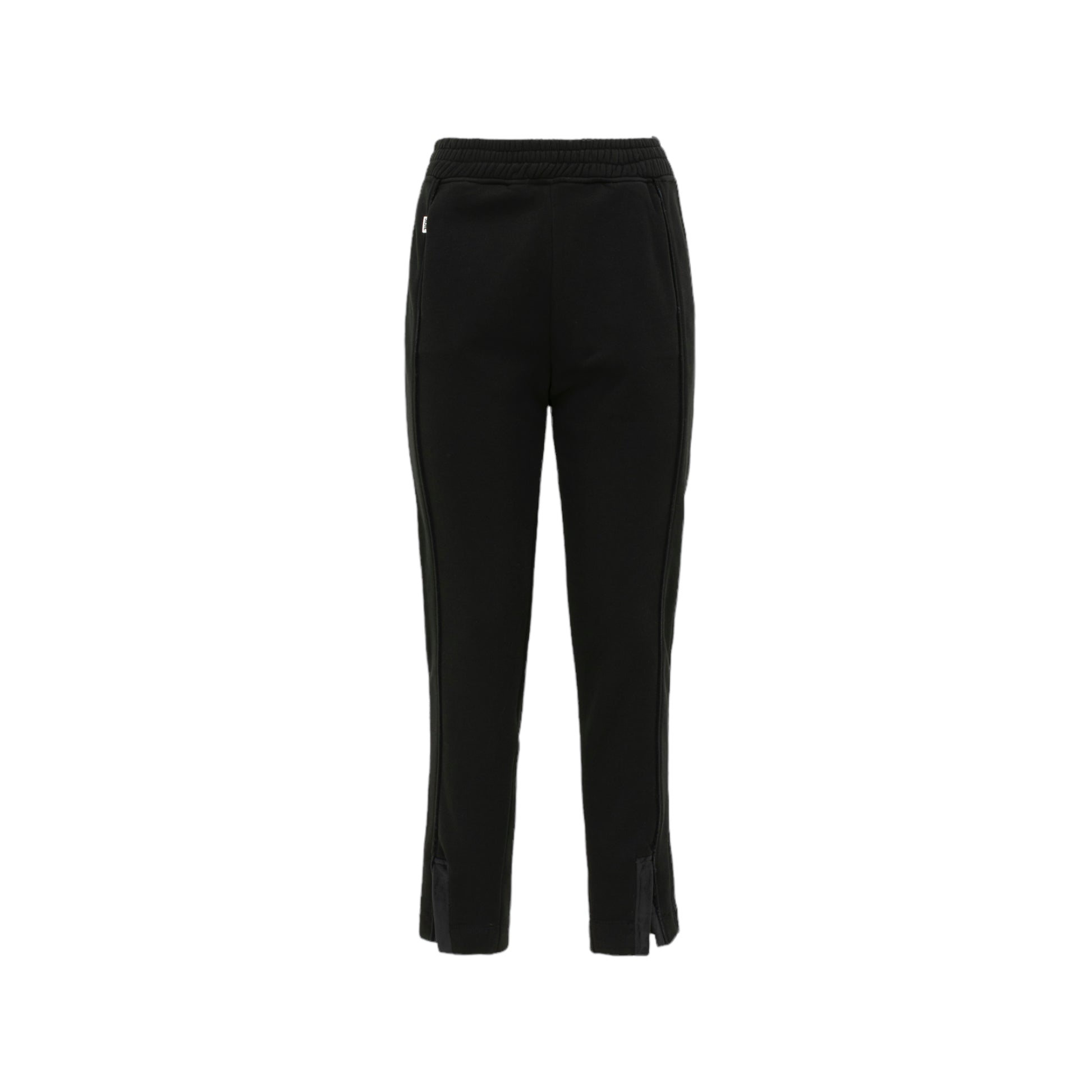 Pantalone con elastico in vita, inserti in ciniglia, tasche a filo anteriori e spacchetti sulla caviglia. Vestibilità slim