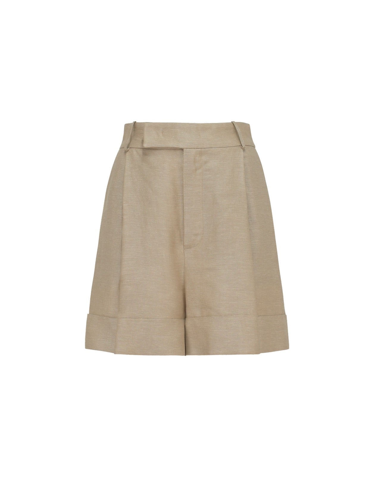 Shorts vita alta, ampio sul fondo in misto viscosa e lino.