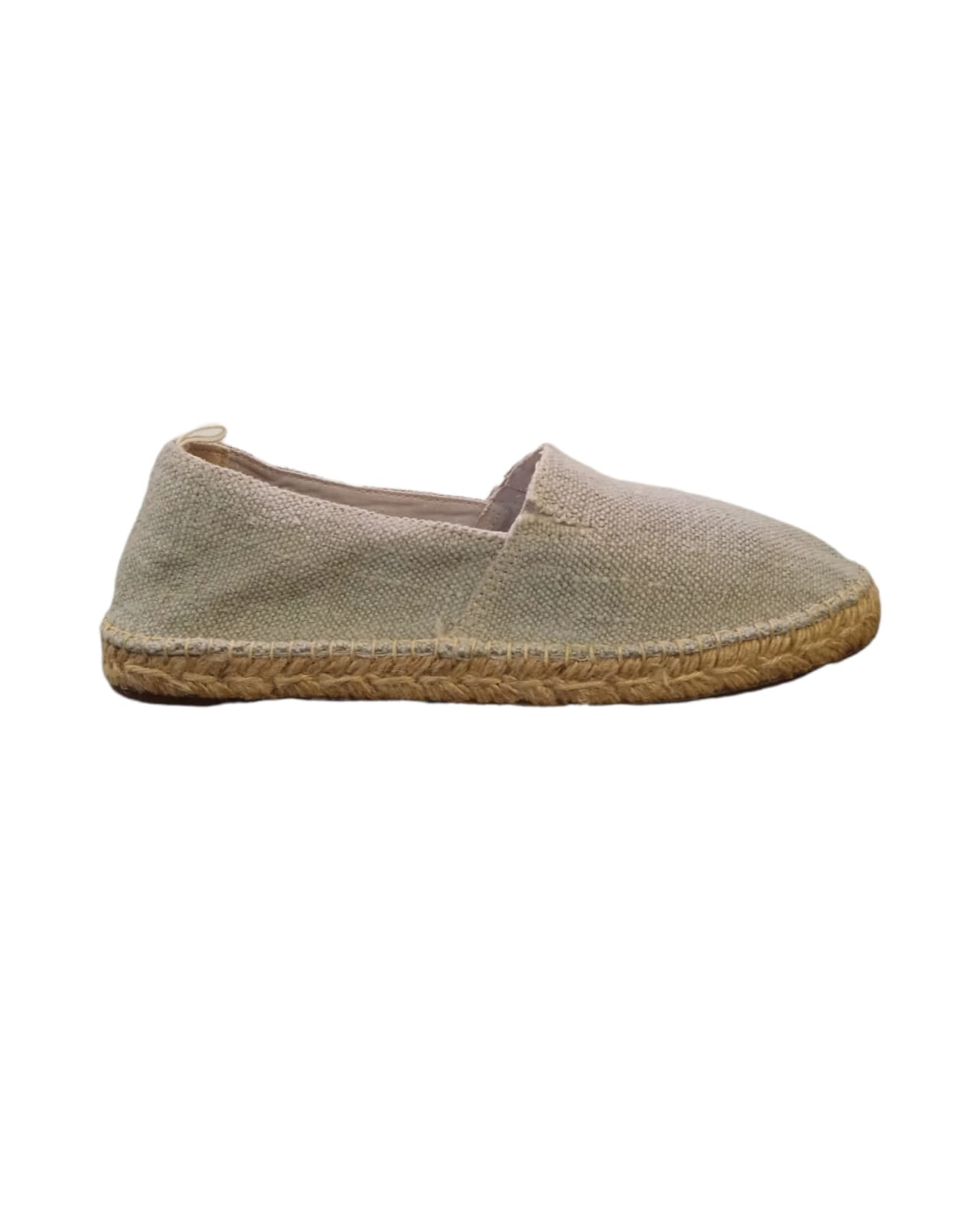 Espadrillas con fondo in corda iuta e suola in gomma, con plantare morbido, spacchi laterali e impunture.