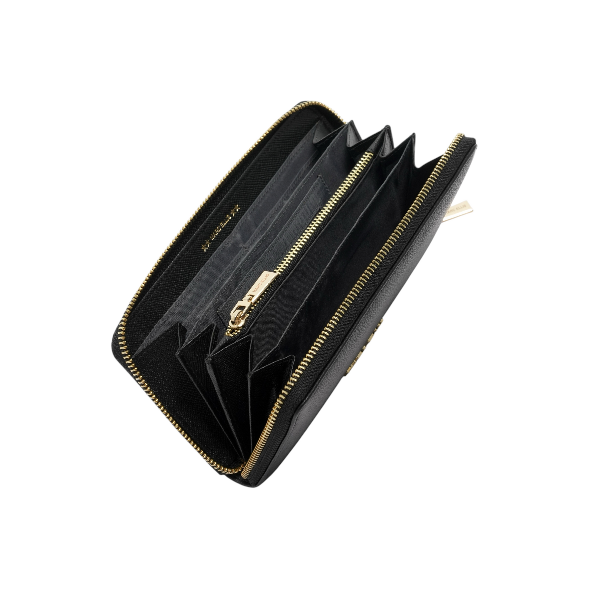 Il borsellino zip around in pelle martellata Marc Ellis è un must-have. La sua finitura martellata e il lettering in metallo conferiscono un tocco di classe, mentre i numerosi scomparti e taschini offrono praticità e organizzazione per carte, banconote e monete. Prodotto in Italia per garantire qualità e stile senza pari.