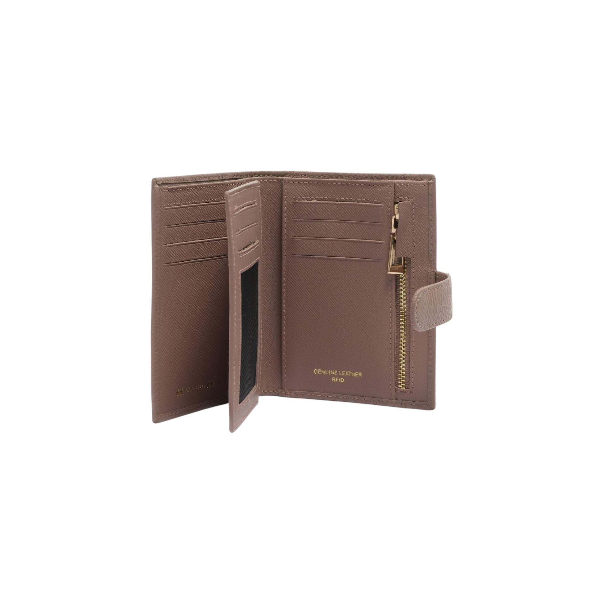 Il borsellino in pelle martellata di Marc Ellis Marja Do è perfetto per chi cerca un accessorio elegante e funzionale. Grazie alle sue dimensioni contenute, è adatto anche alle borse più piccole. Realizzato in Italia, dispone di un'ampia tasca per le carte, con scomparti per le banconote e una pratica tasca con bottone per le monete. La chiusura con bottone a clip e il lettering in metallo conferiscono un tocco di stile unico.
