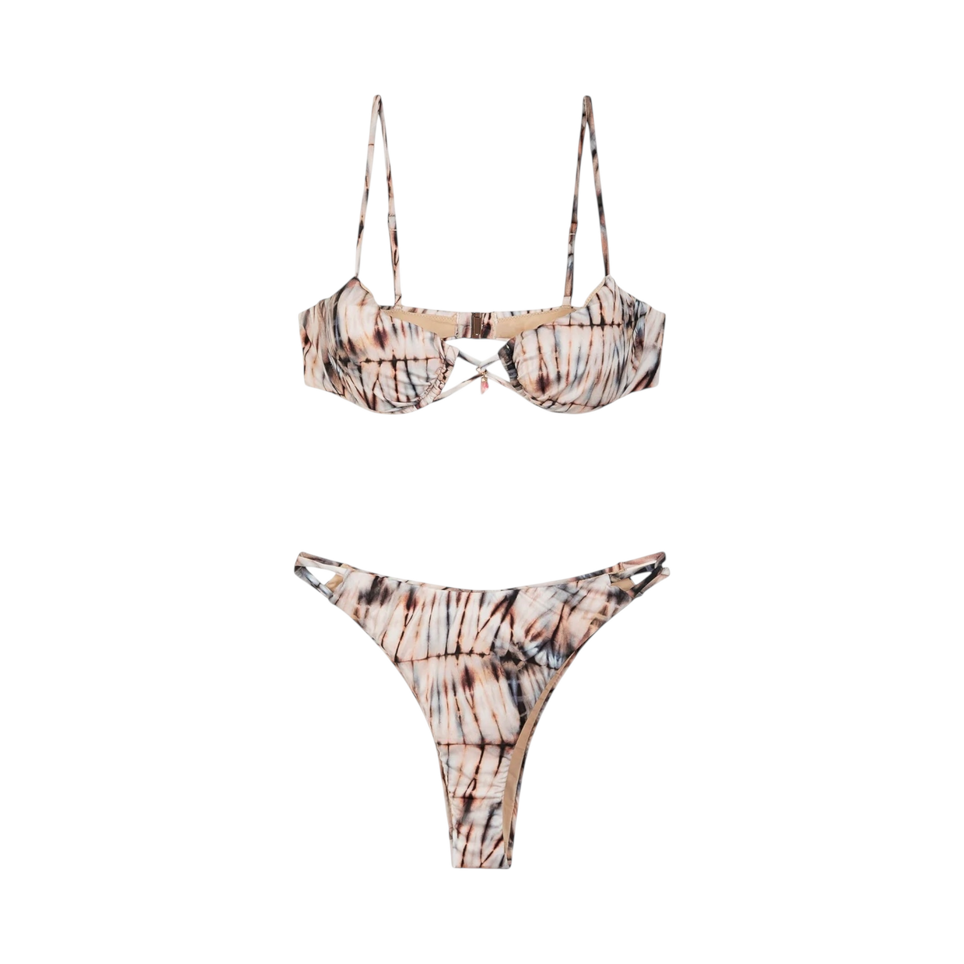 Esalta la tua bellezza con il bikini Me Fui, caratterizzato da fantastici toni del marrone e con un'incantevole fantasia animalier. Il reggiseno con ferretto è dotato di imbottitura interna removibile e chiusura con gancio, per un supporto ottimale. Completa il tuo outfit con il vestito coordinato per un look davvero selvaggio.