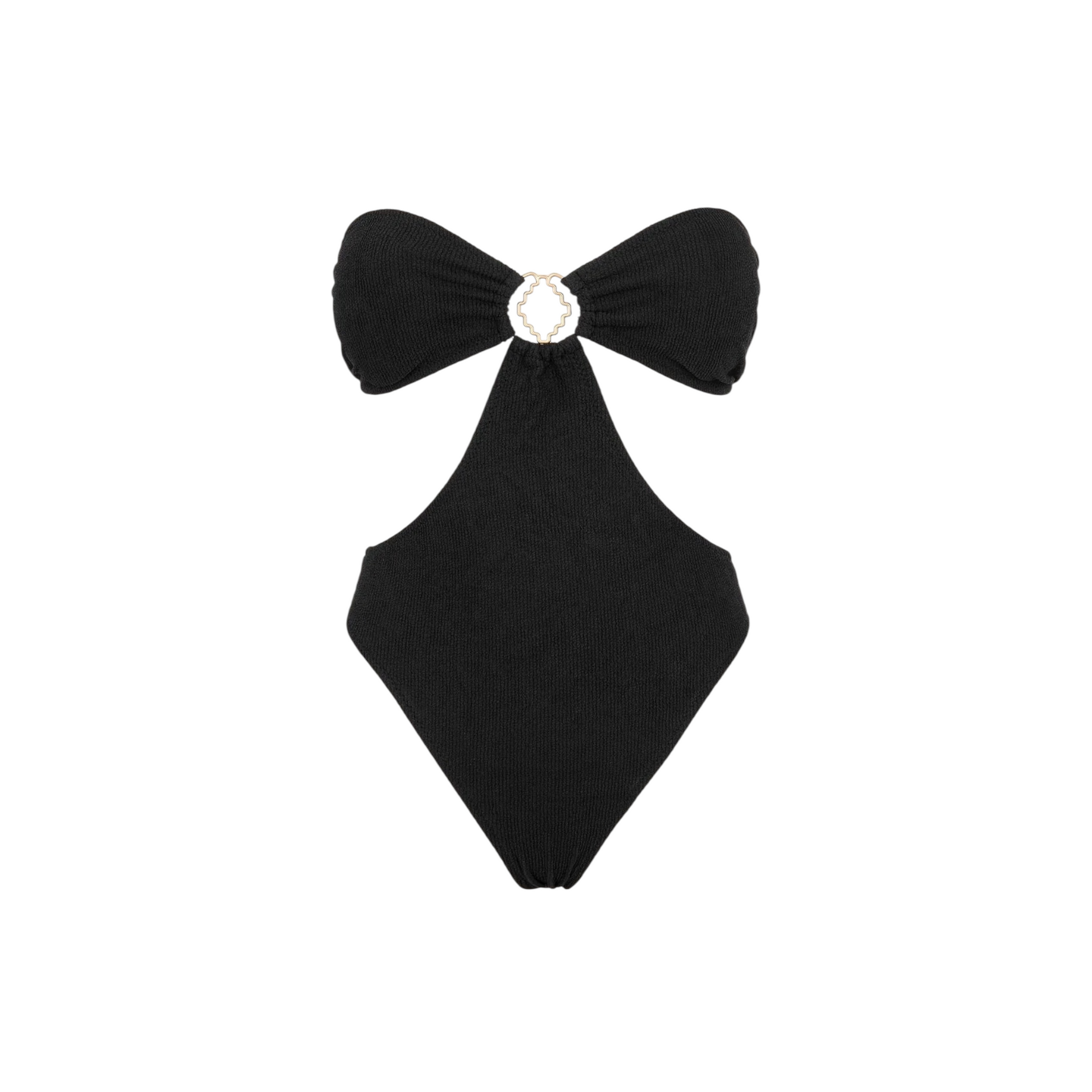 Il trikini Me Fui in lycra goffrata si distingue per il design sofisticato con anello centrale sul seno, che valorizza la silhouette. Dotato di imbottitura interna estraibile, garantisce comfort personalizzato, mentre la chiusura con gancio assicura una vestibilità sicura. Questo capo unisce stile e funzionalità, ideale per chi cerca un costume innovativo e raffinato per la stagione balneare.