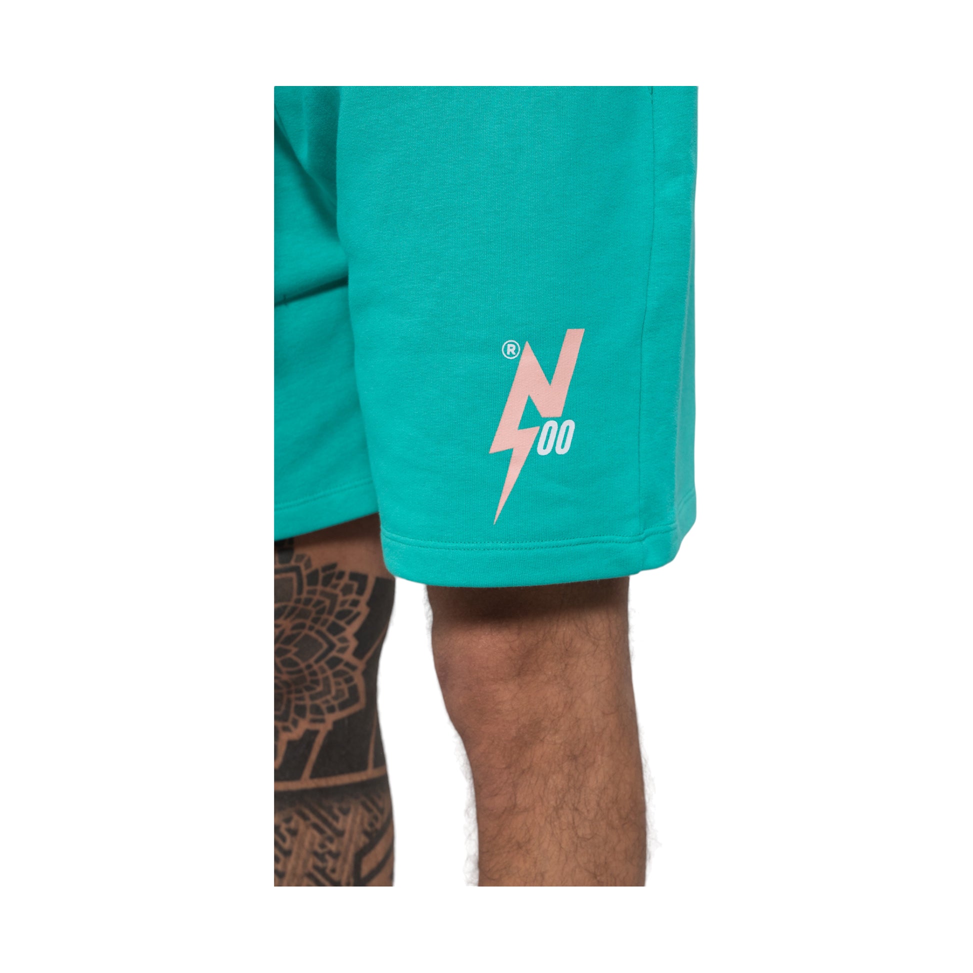 Shorts con vita elasticizzata, regolabile con laccio. Tasche frontali a filo e tasca a toppa posteriore. Stampa frontale con logo a contrasto