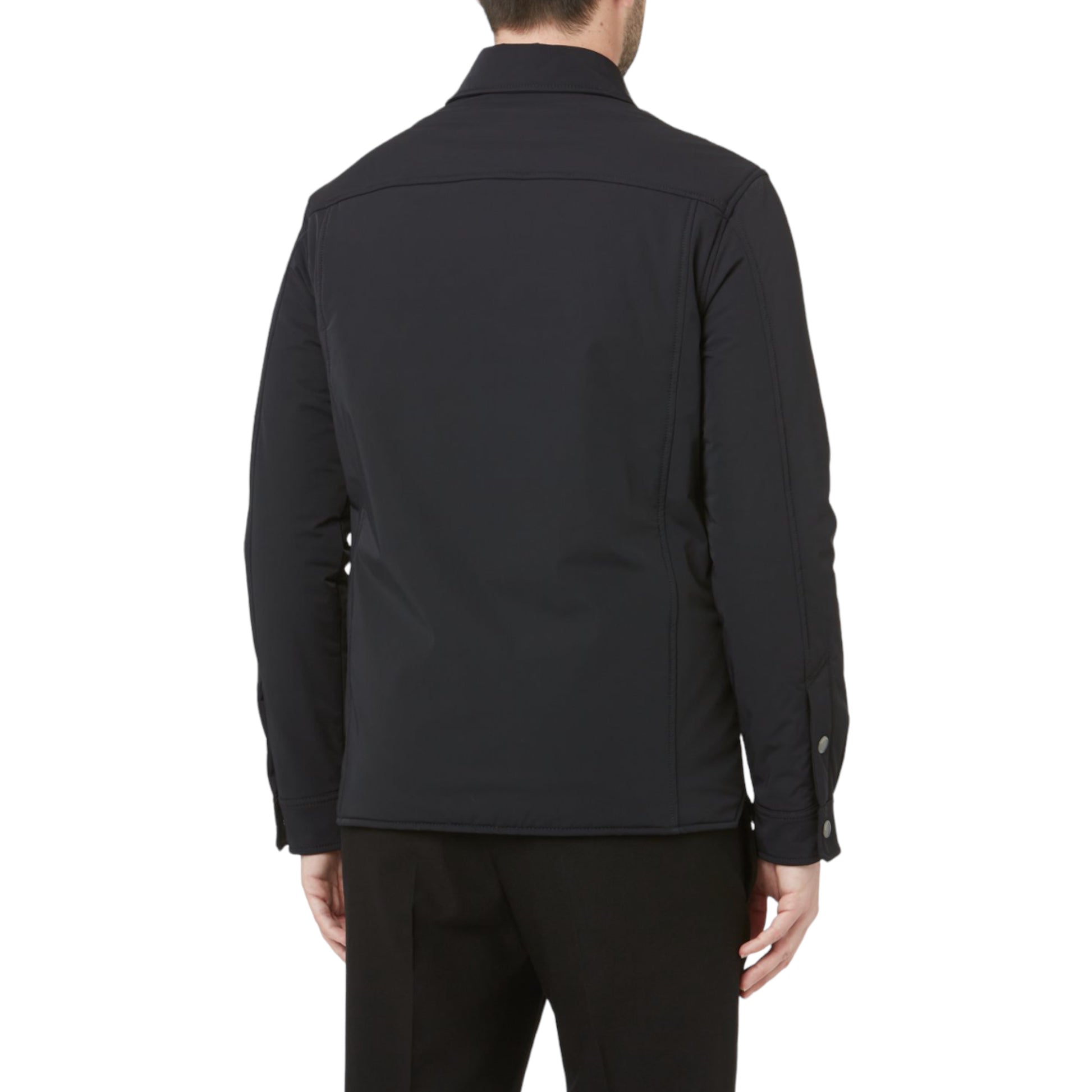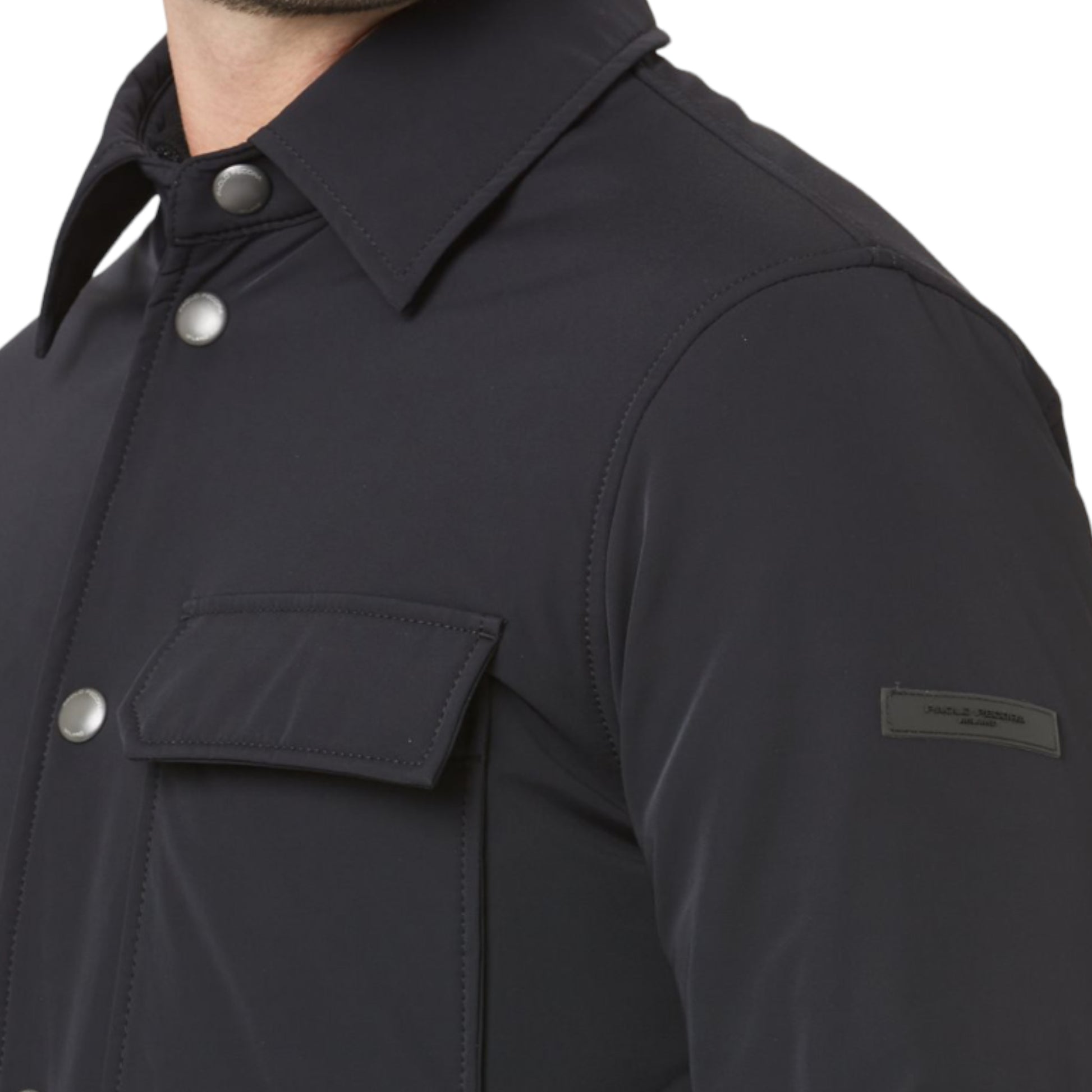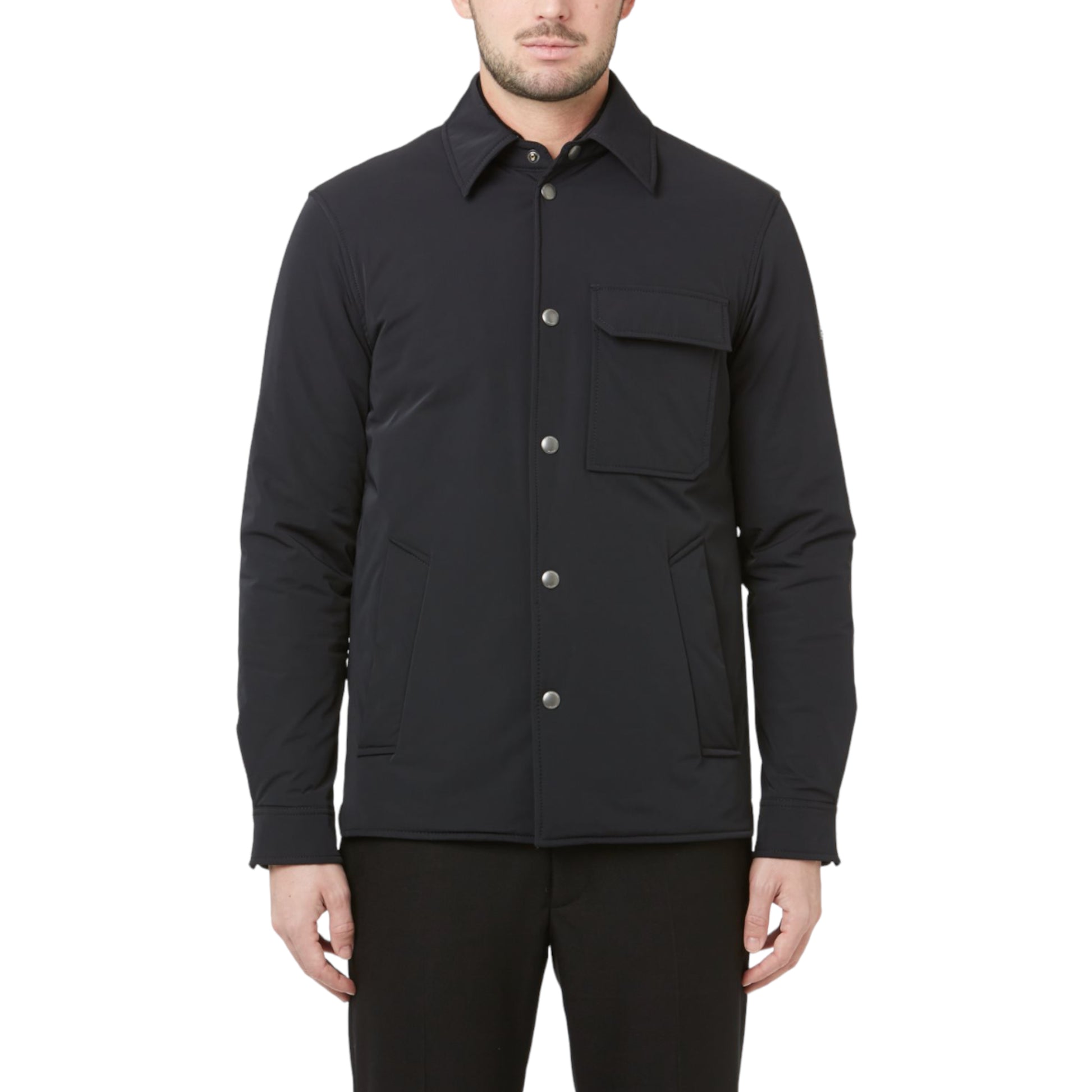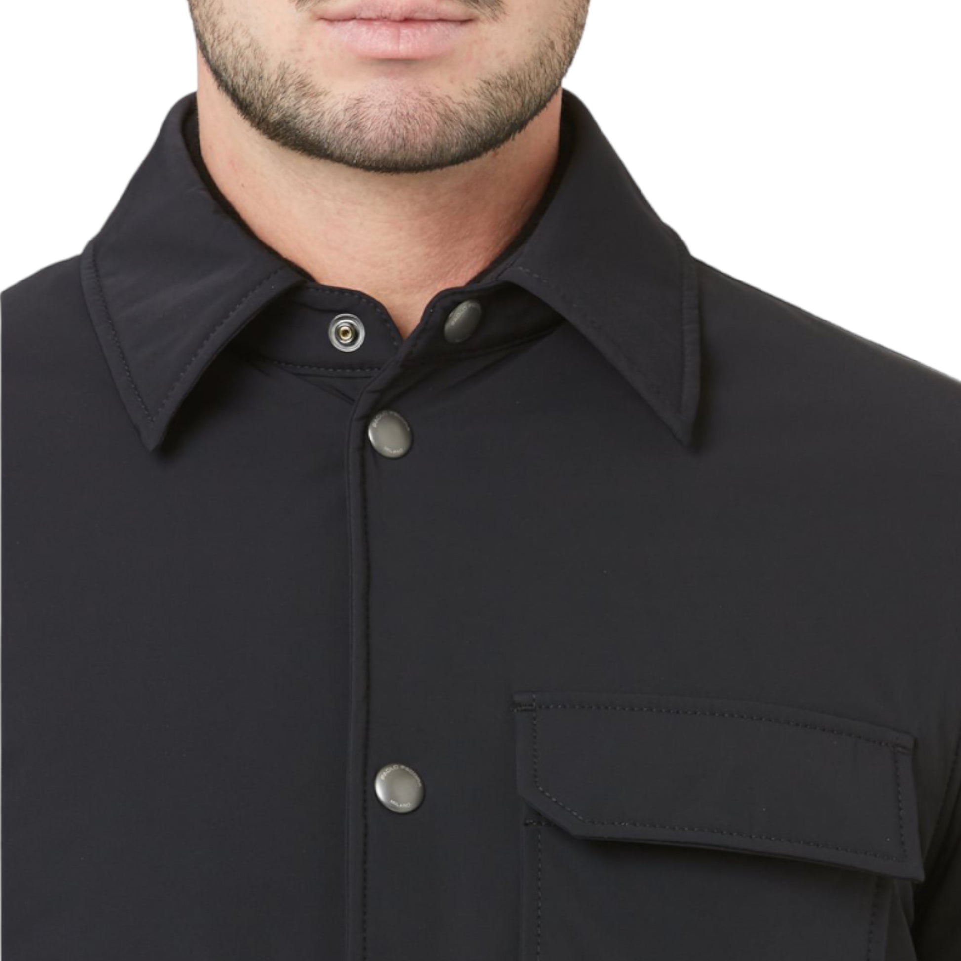 Giubbino modello camicia, in tessuto tecnico. Chiusura frontale con bottoni.