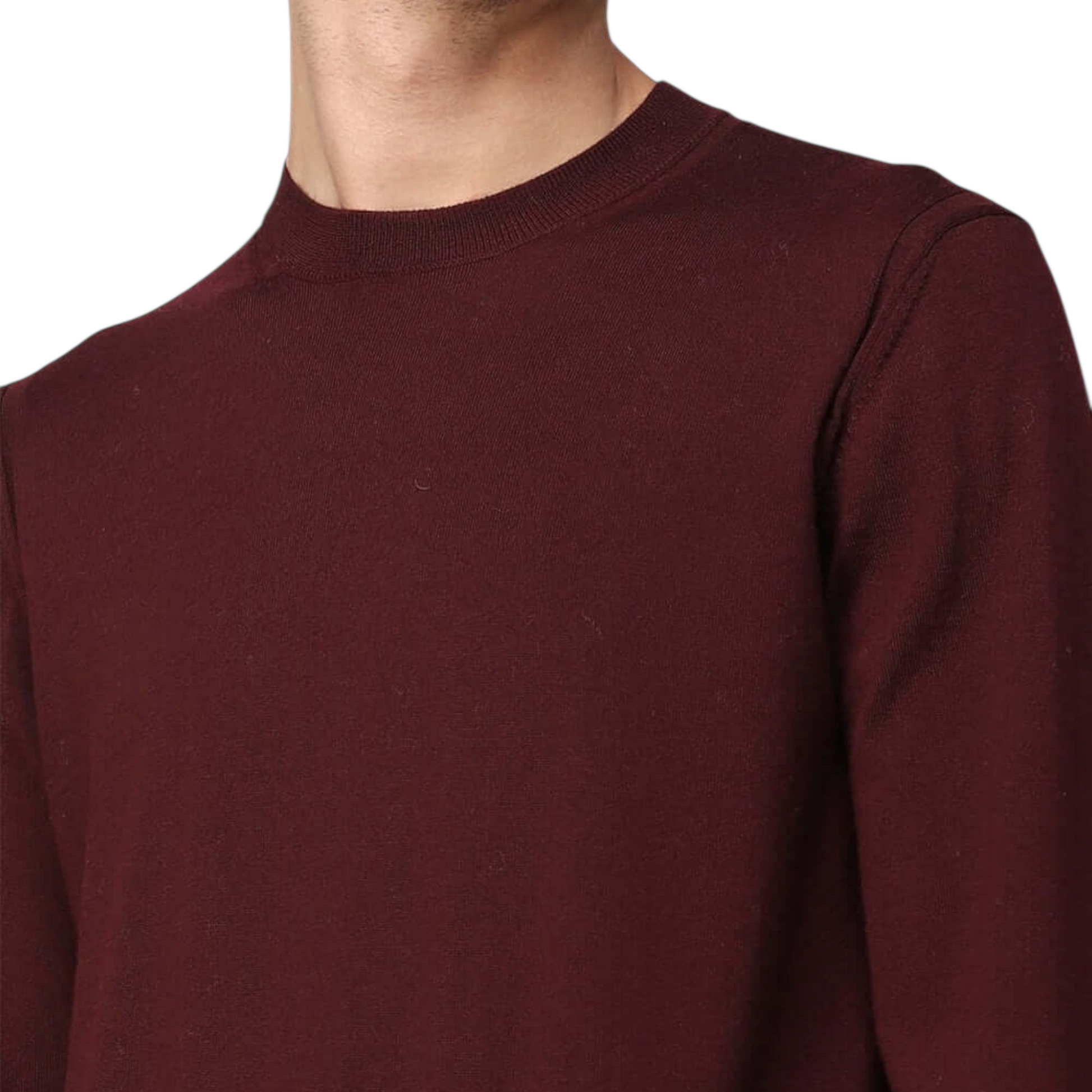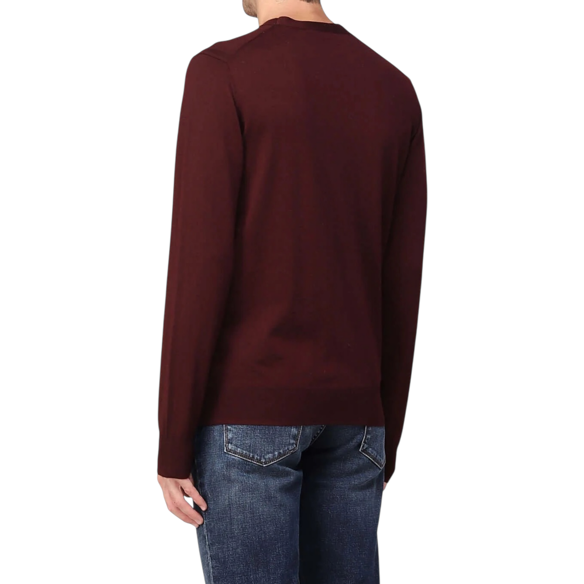 Maglia girocollo con maniche lunghe realizzata in pura lana vergine. Fondo e polsini a costine.