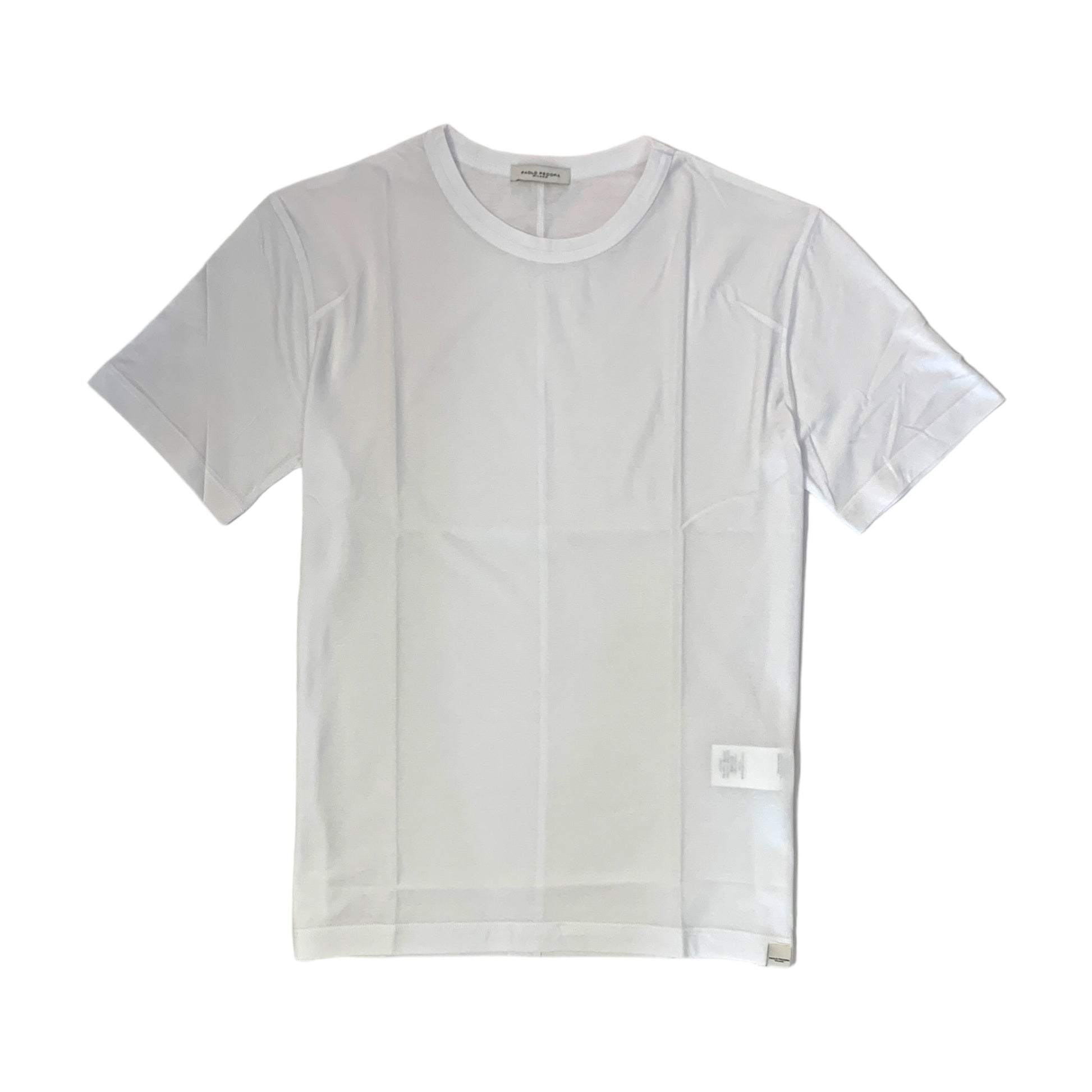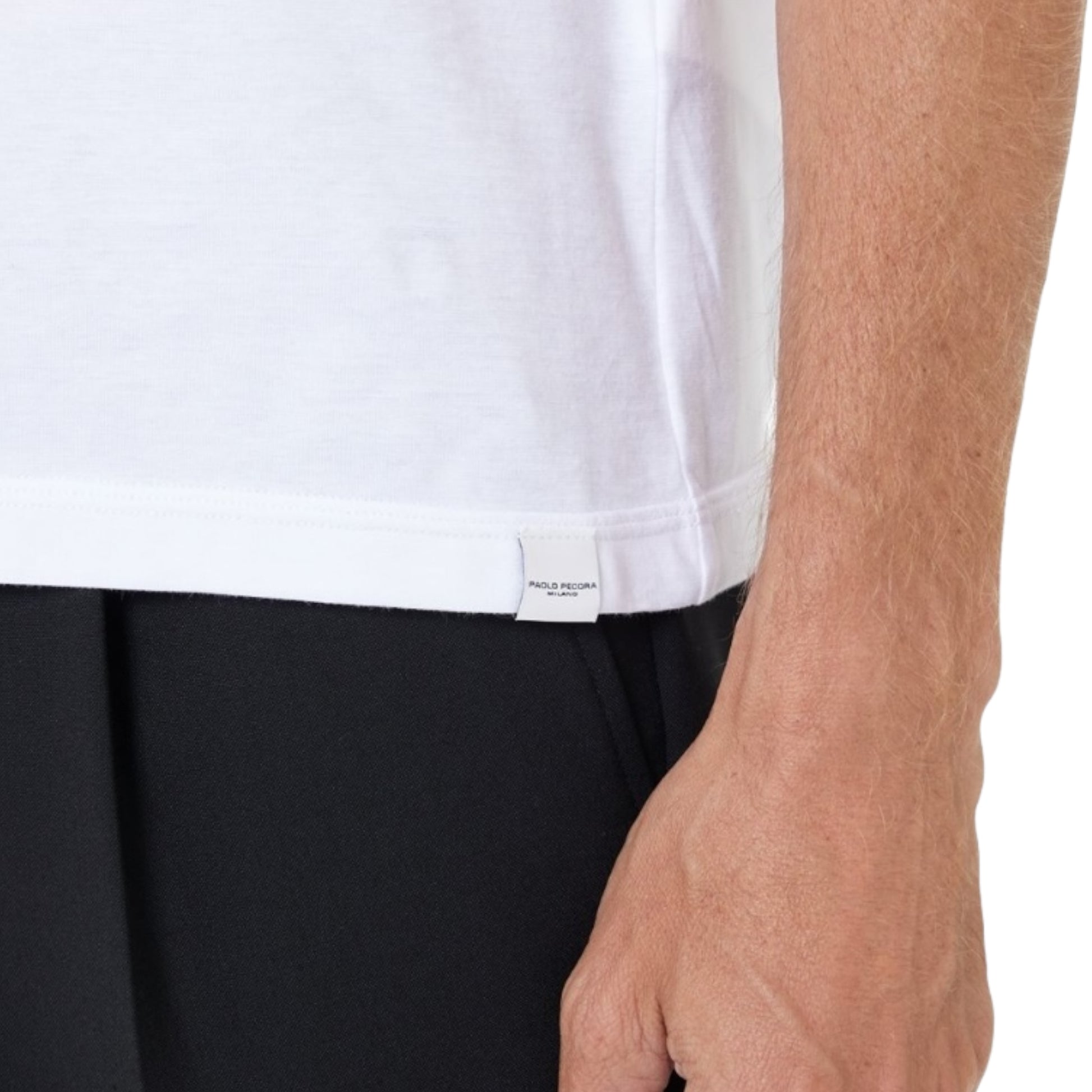 T-shirt basica in jersey light con pinces su petto e taglio verticale al centro dietro. Etichetta con logo cucita su fondo davanti.