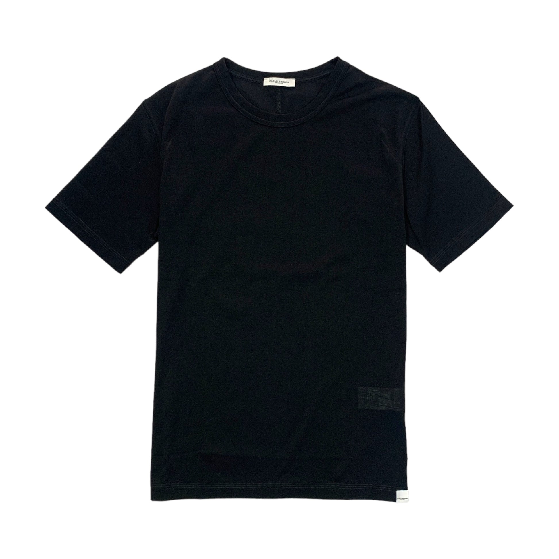 T-shirt basica realizzata in jersey lucido con pinces su petto e taglio verticale al centro dietro. Etichetta con il logo cucita sul fondo davanti.