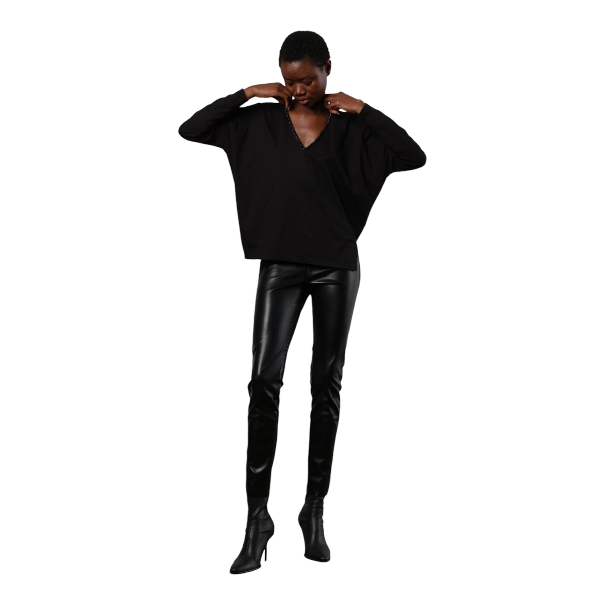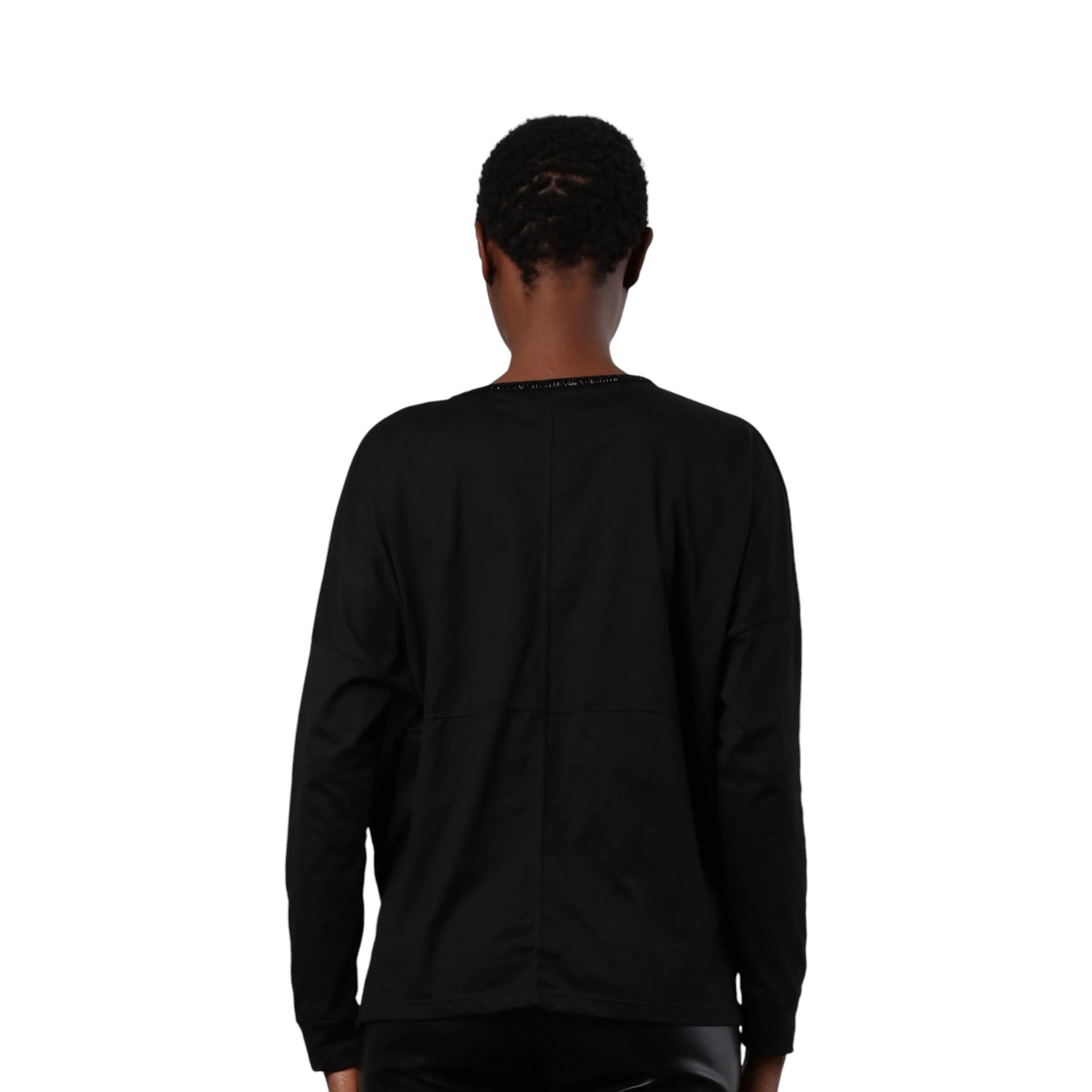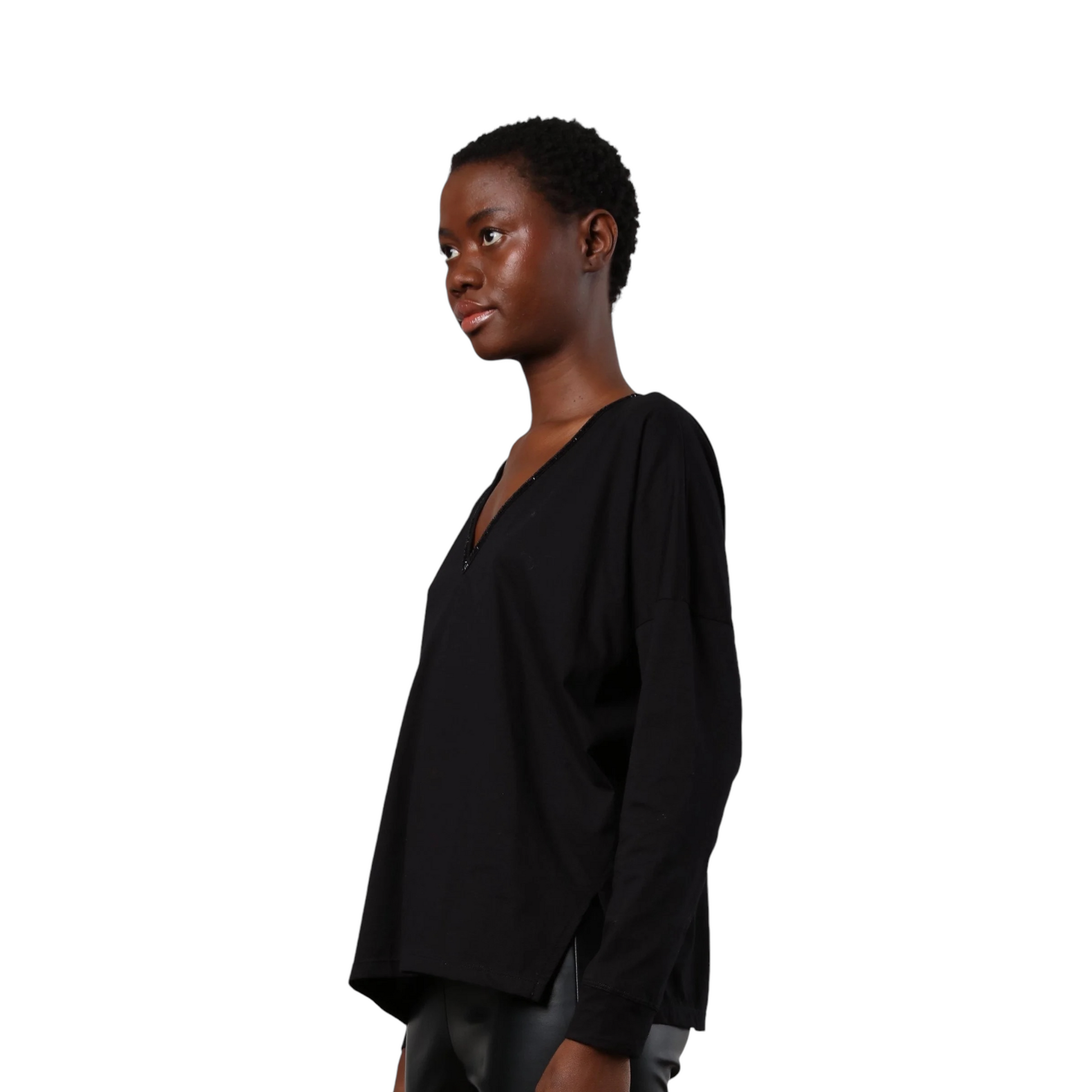 Questo modello è realizzato in morbido jersey di cotone con scollo a V con perline, maniche lunghe e vestibilità rilassata. Abbinatelo ai jeans o a una favolosa maxi gonna per un look divertente e alla moda. La modella indossa una taglia S. Lunghezza: 62 cm.