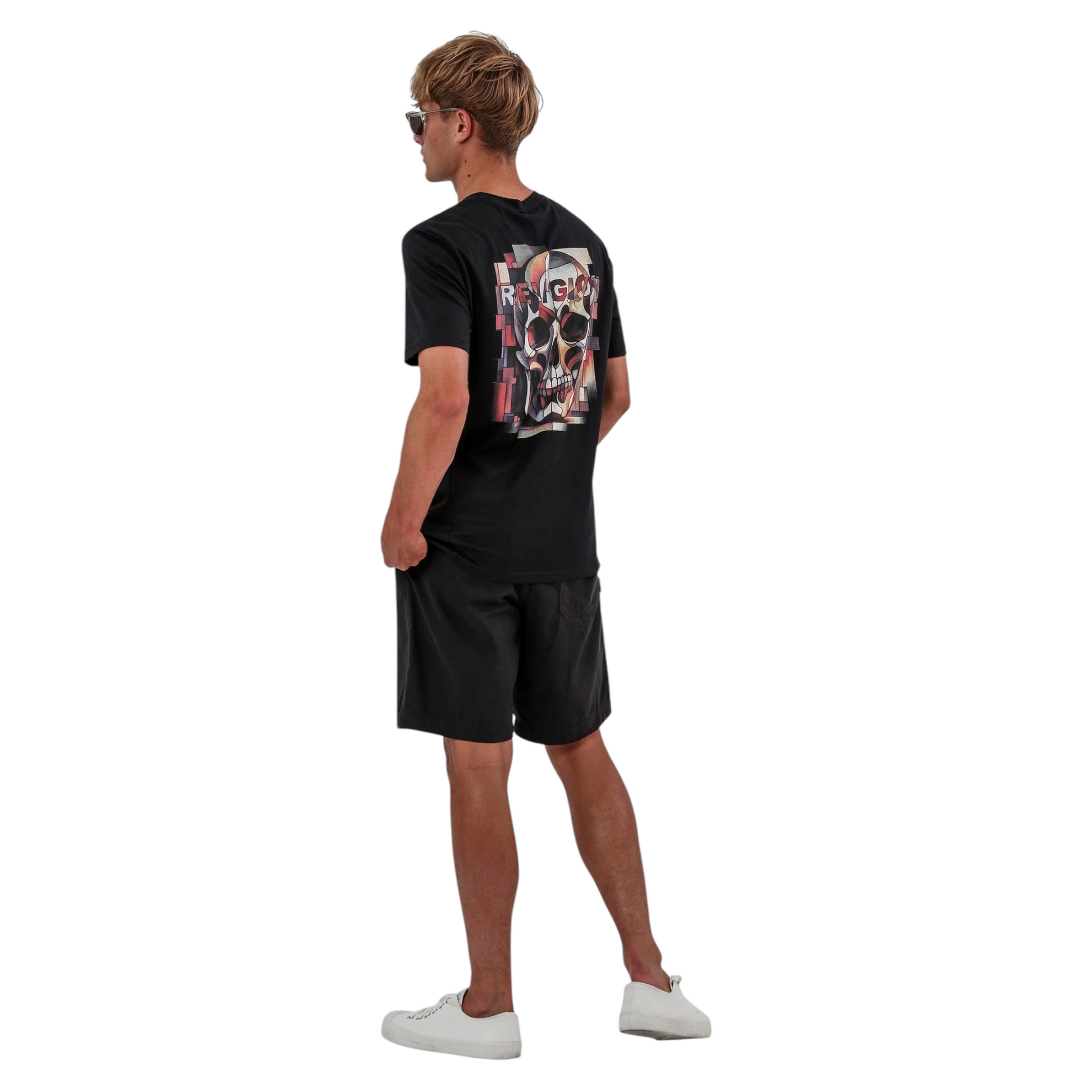 La T-shirt Abstract in nero ha una vestibilità comoda e regolare, con scollo a girocollo. Presenta un'audace grafica astratta sul retro e, sul davanti, lo scheletro in preghiera ricamato caratteristico del brand, che la rendono un pezzo forte del vostro guardaroba casual.