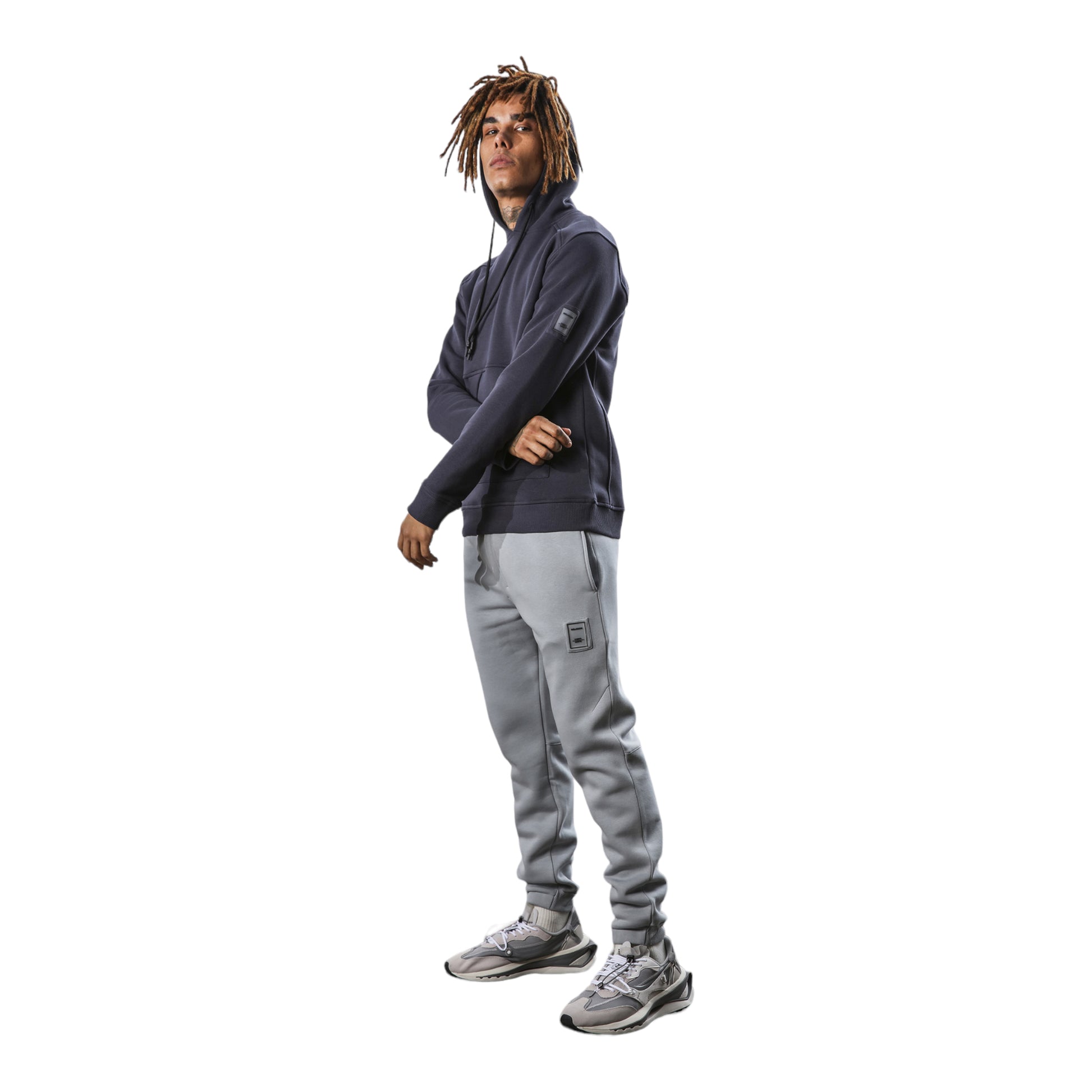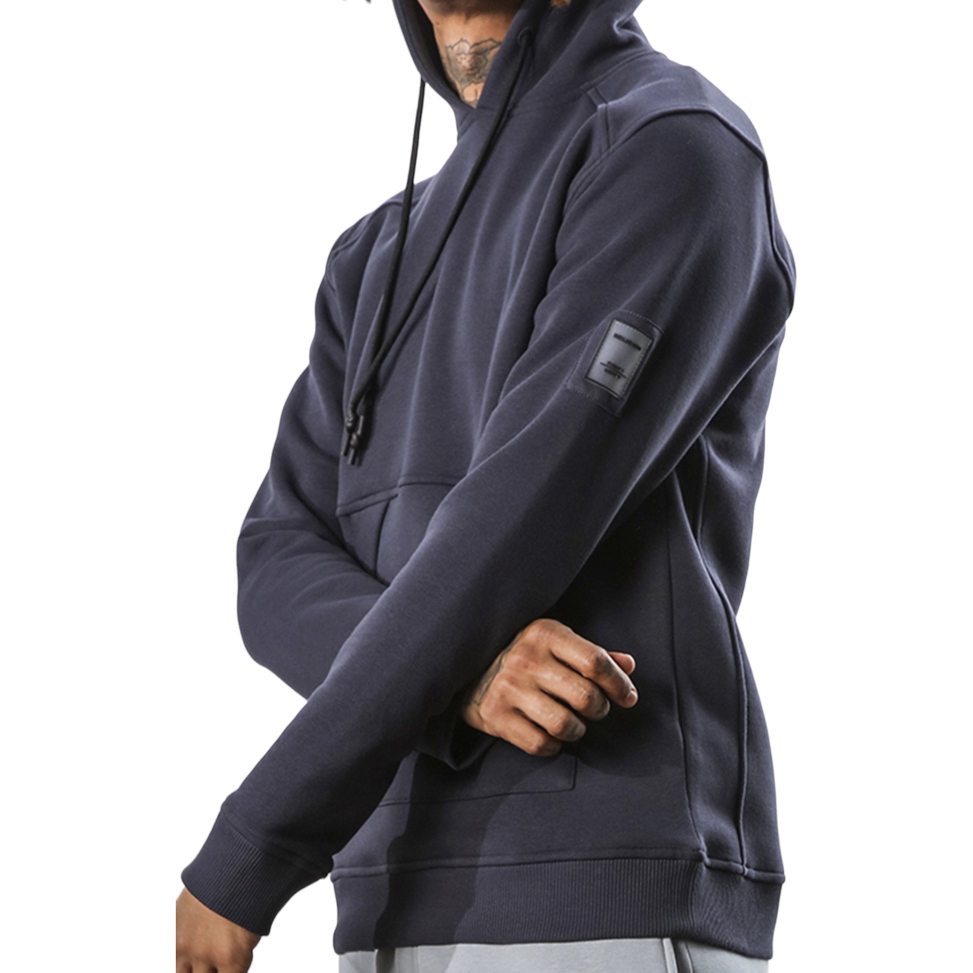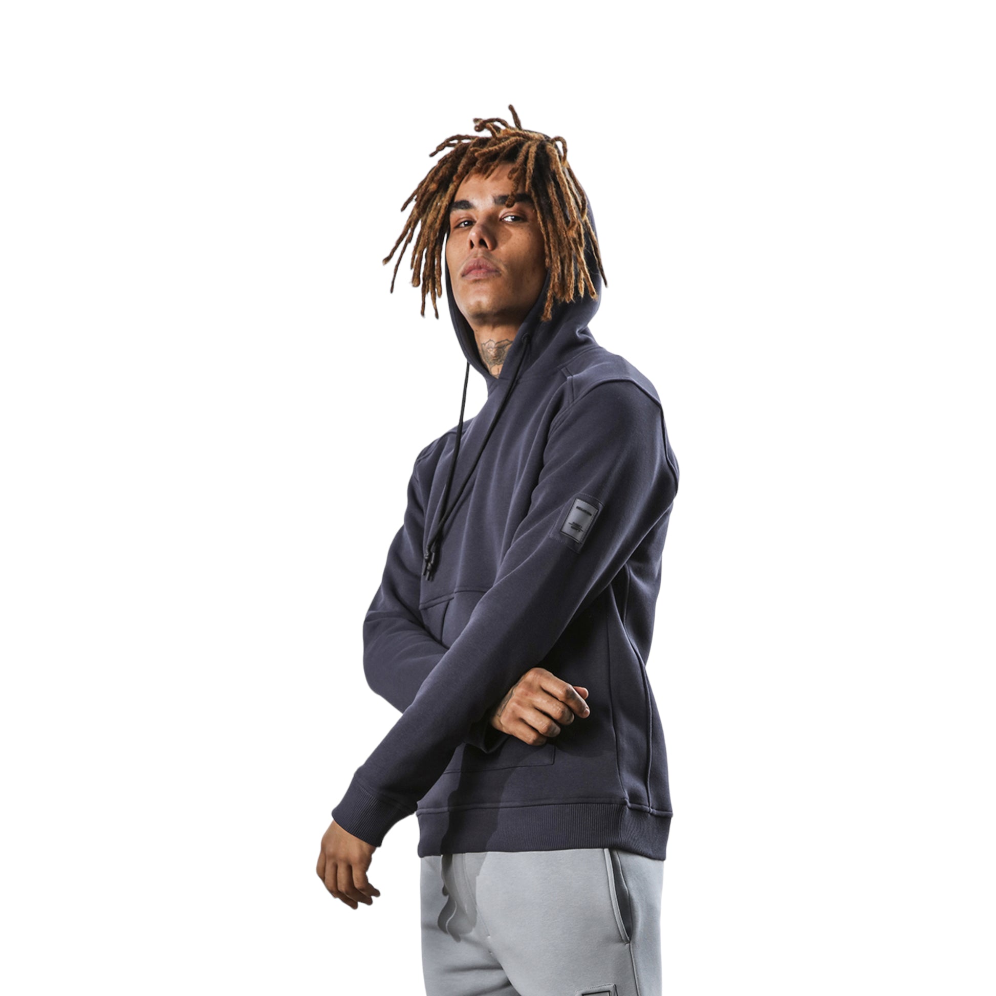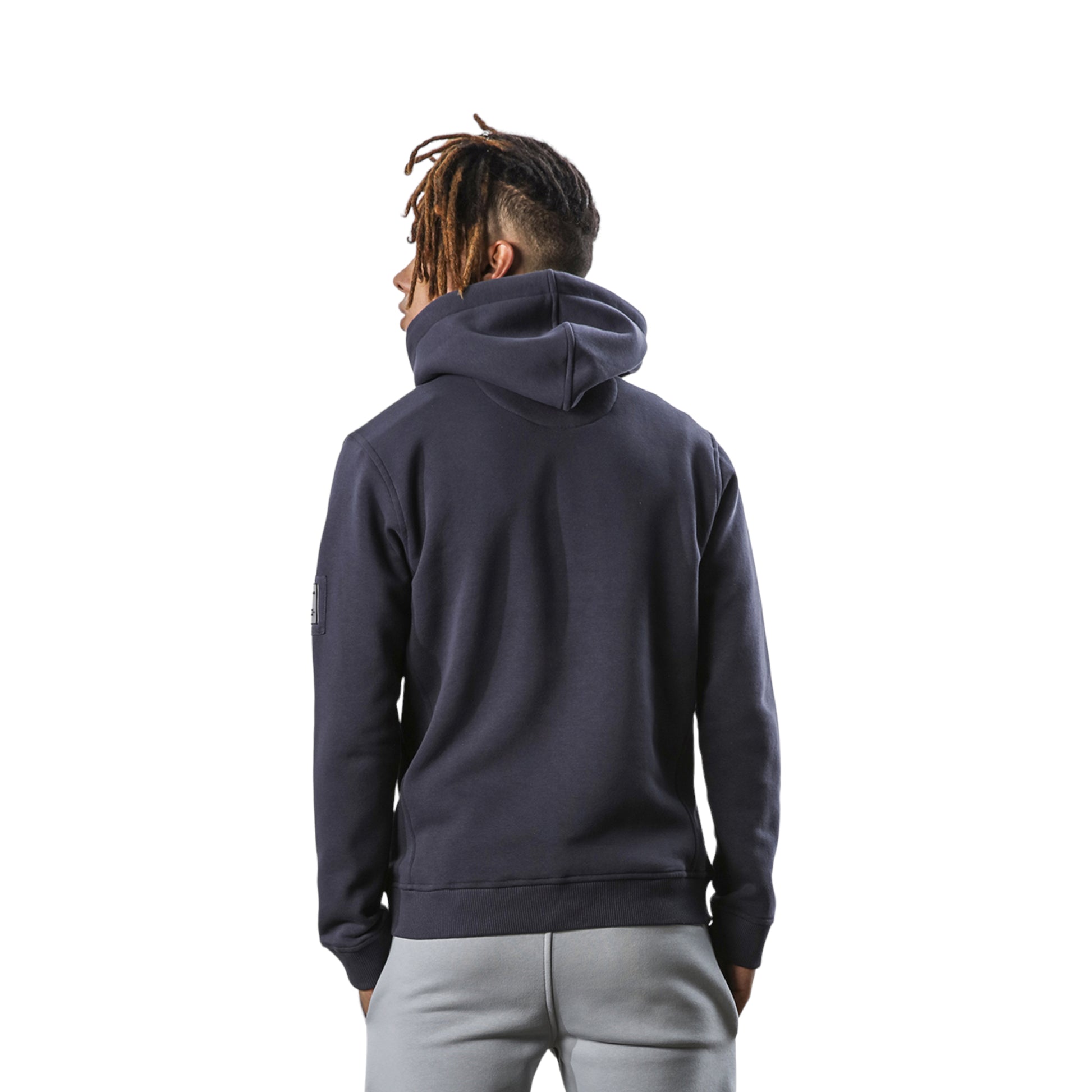 Felpa manica lunga con cappuccio e tasche laterali, logo sul braccio. Vestibilità regular.