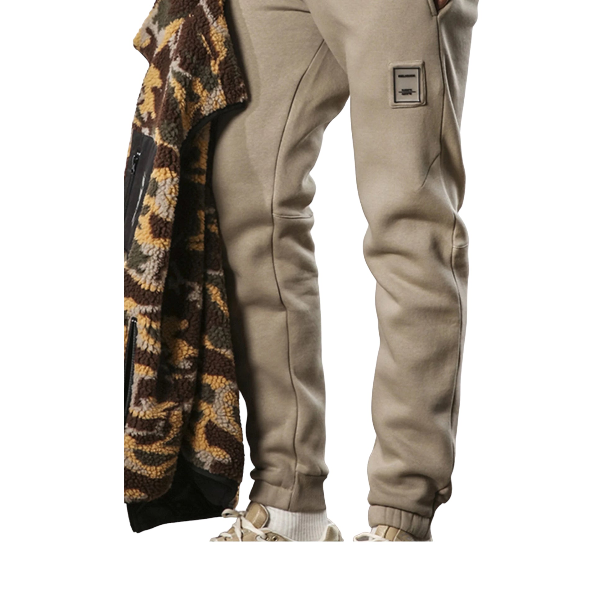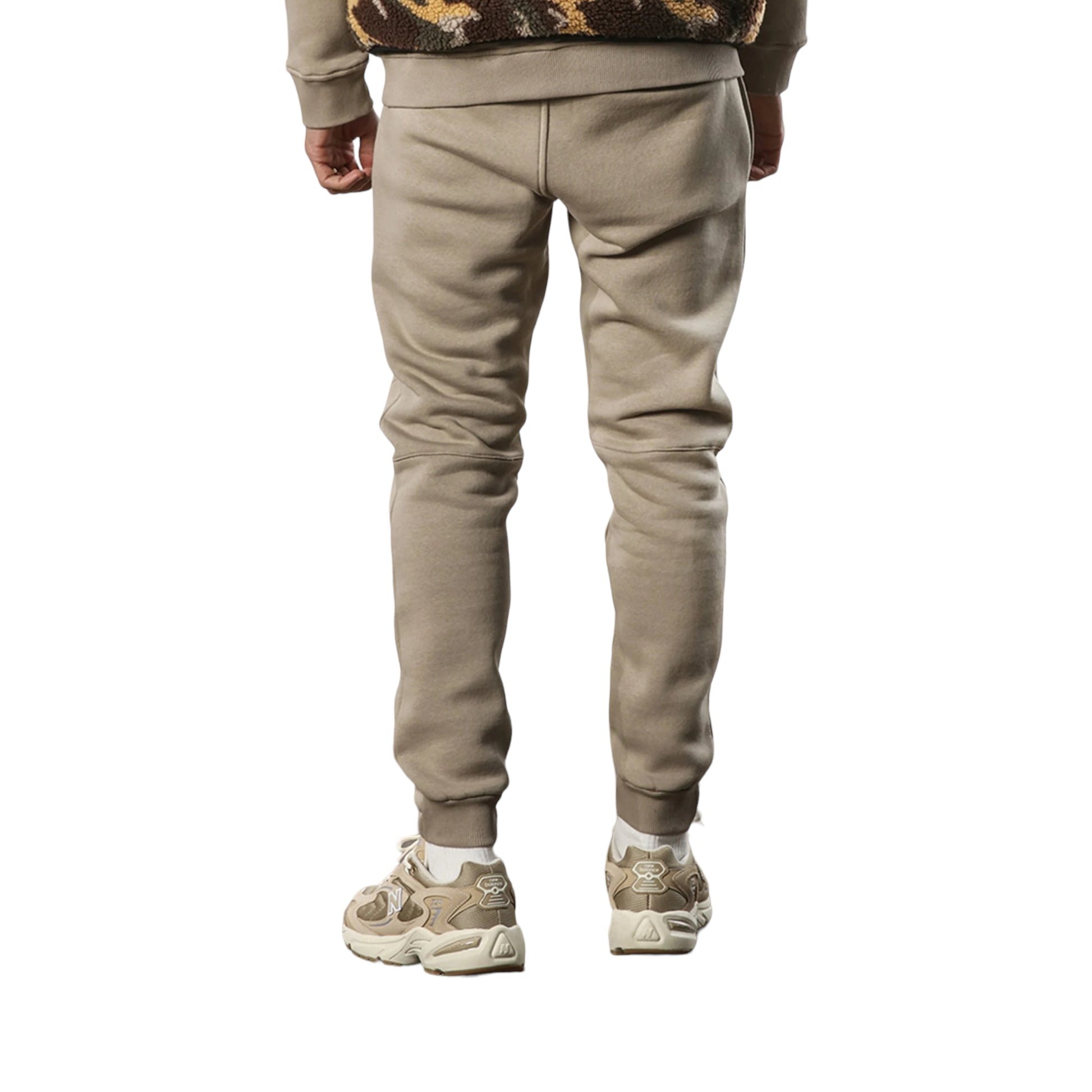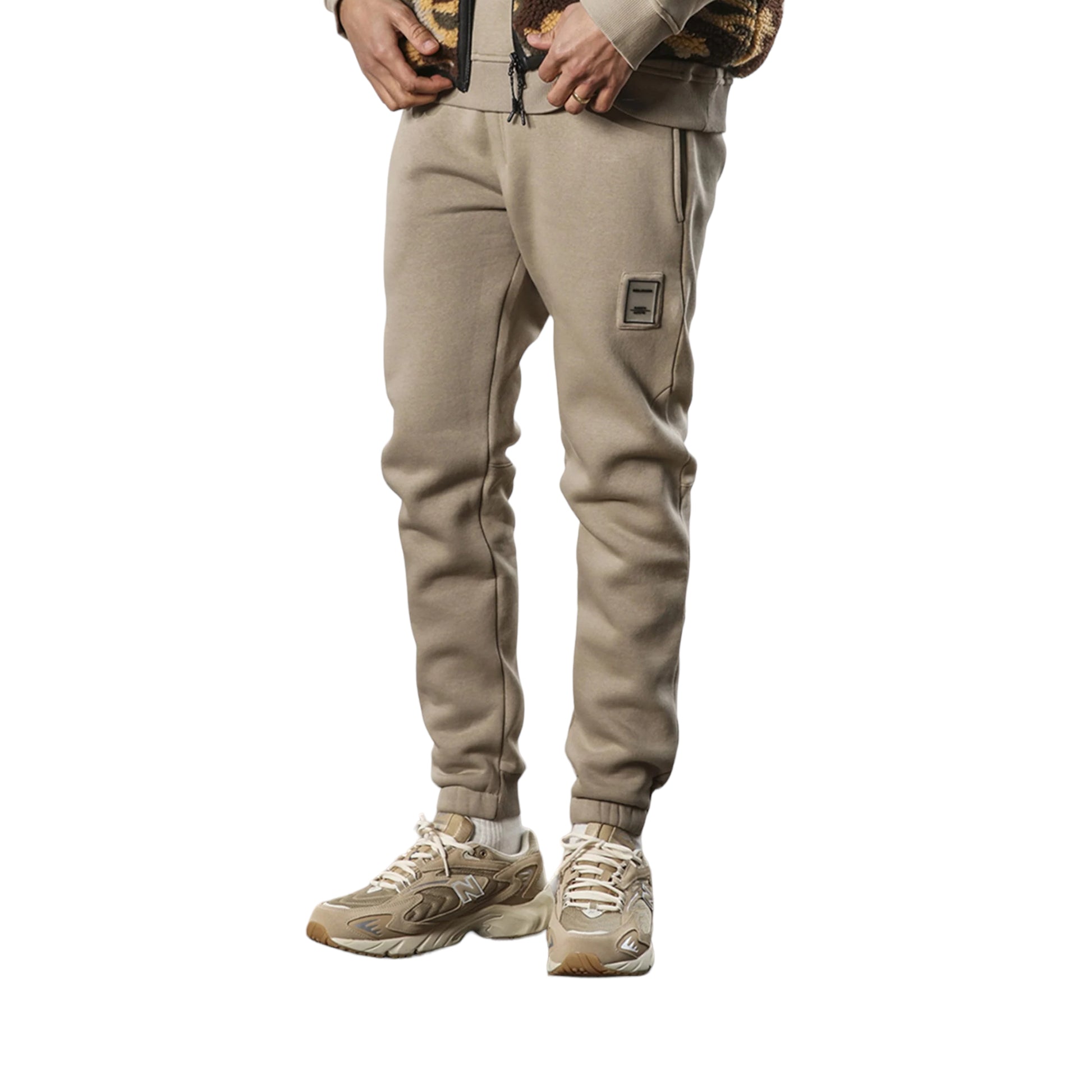 Pantalone jogger con vita elasticizzata regolabile con laccio, tasche a filo ed elastico alla caviglia. Vestibilità regular.